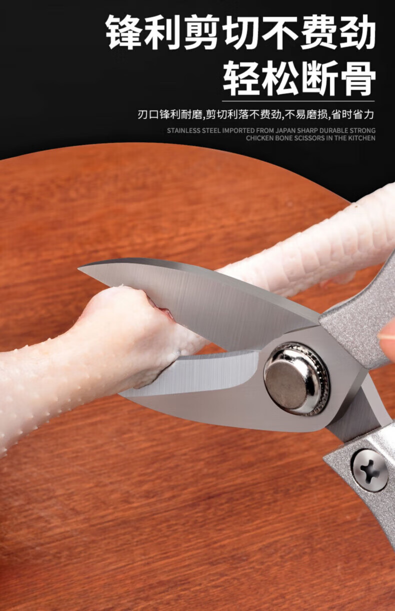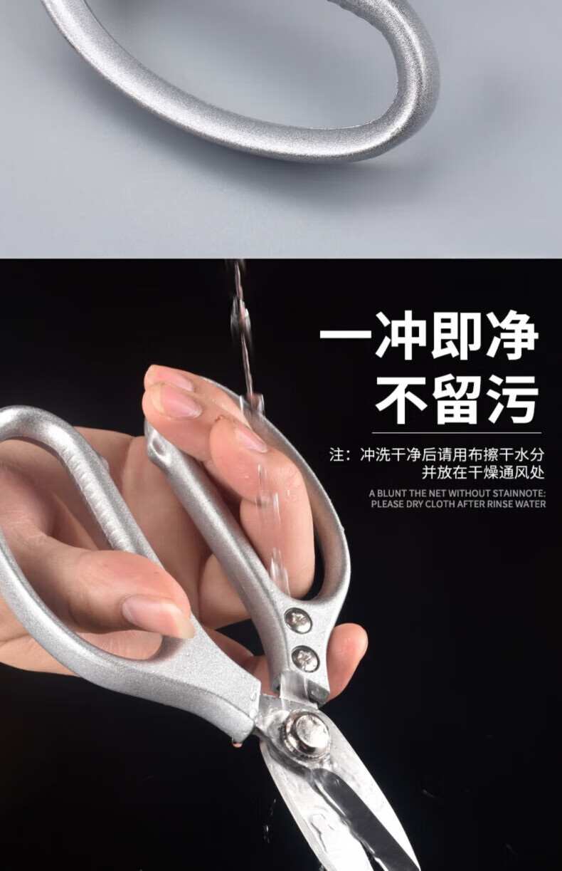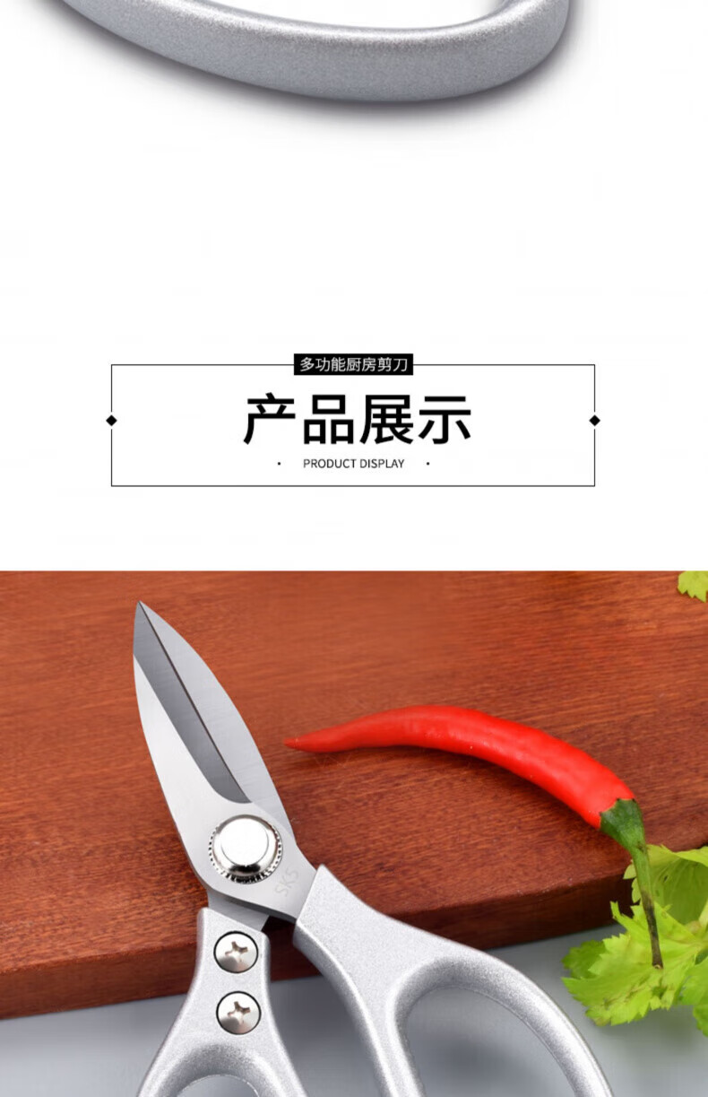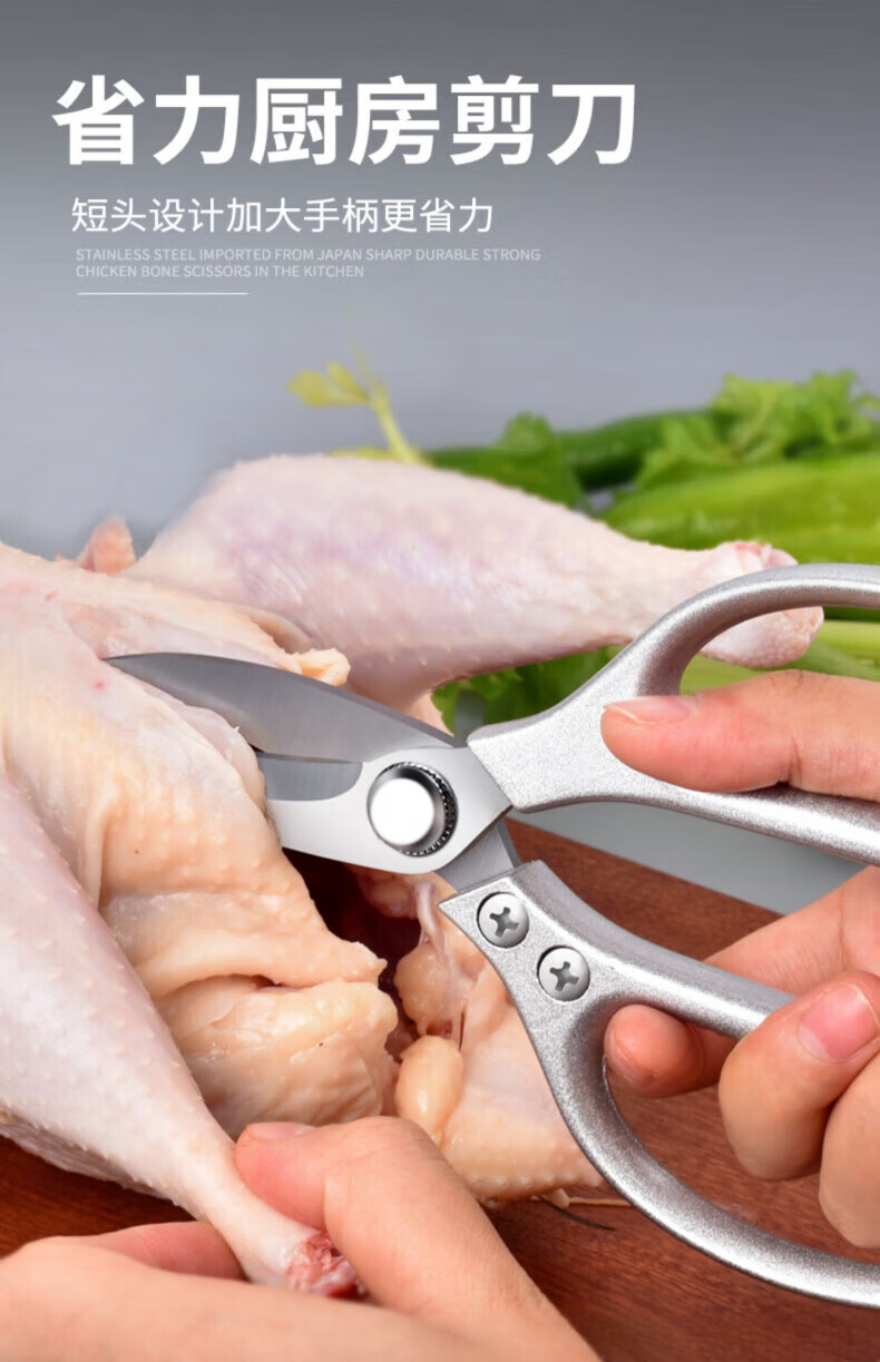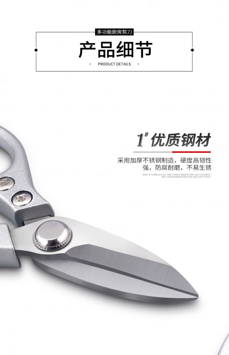 JCZS精工厨房专用剪刀强力鸡骨剪不锈钢家用多功能剪刀鱼甲鱼 一代银色薄款105g【盒装】