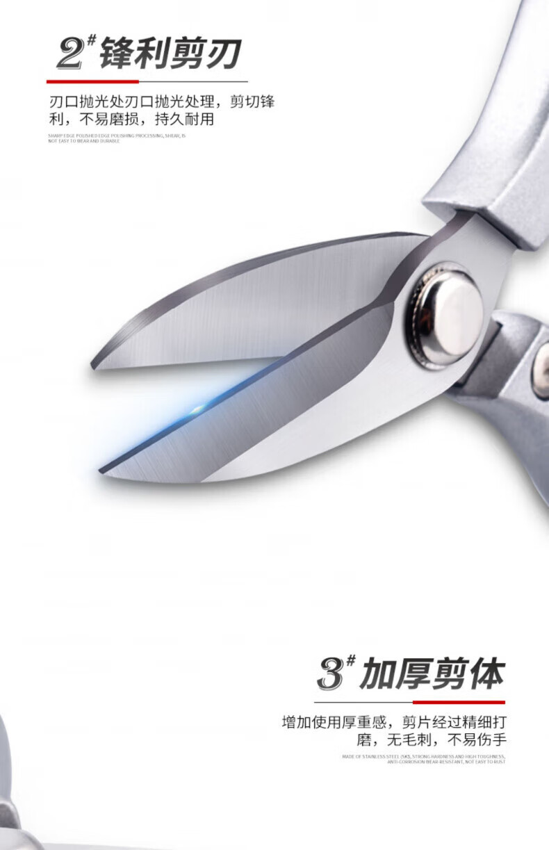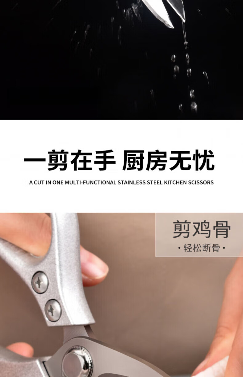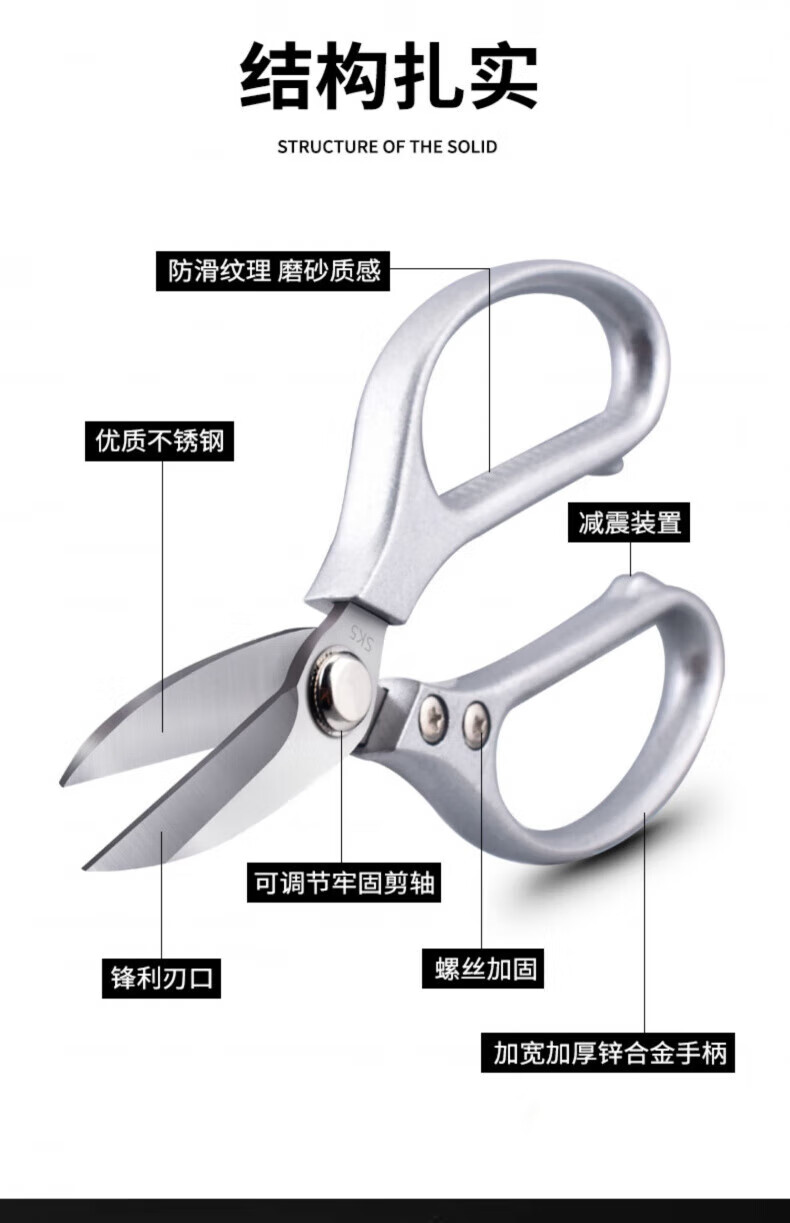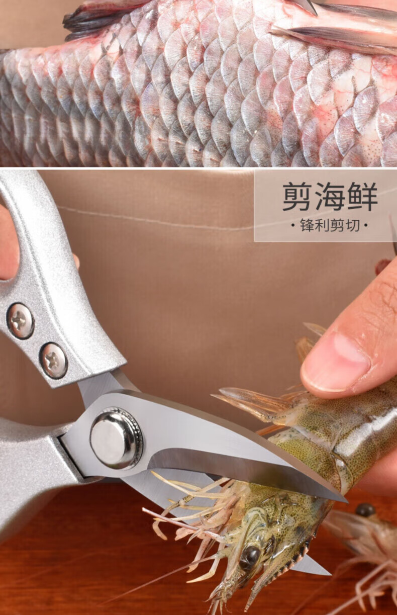 JCZS精工厨房专用剪刀强力鸡骨剪不锈钢家用多功能剪刀鱼甲鱼 一代银色薄款105g【盒装】