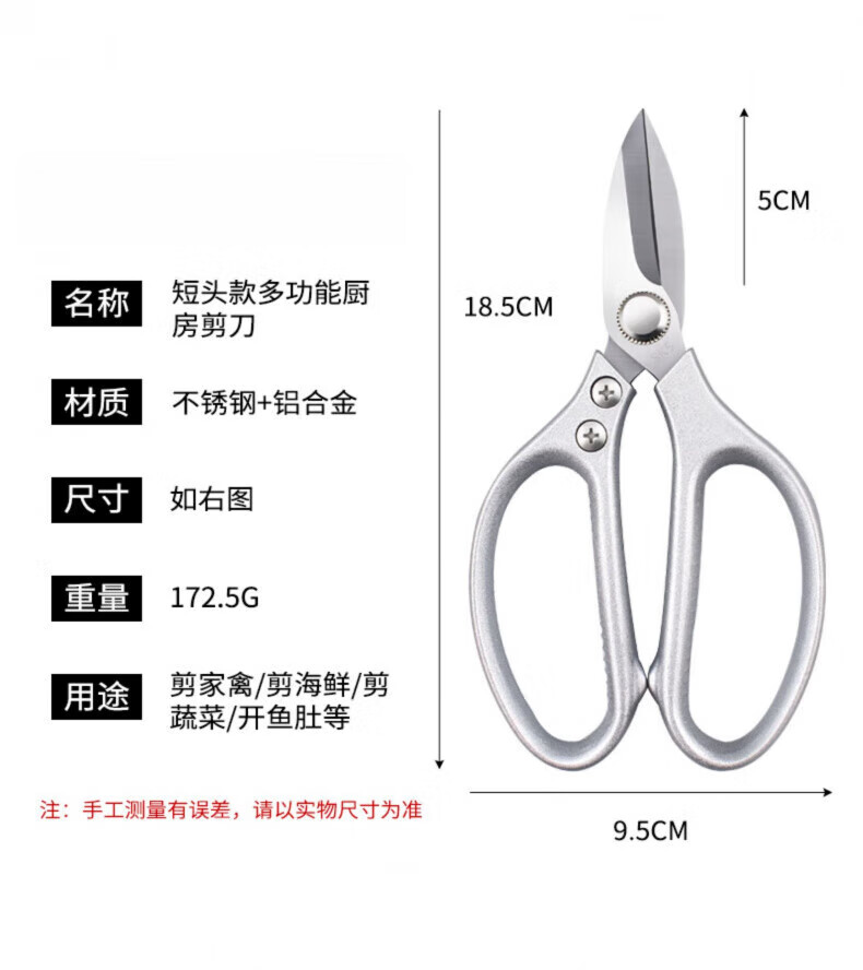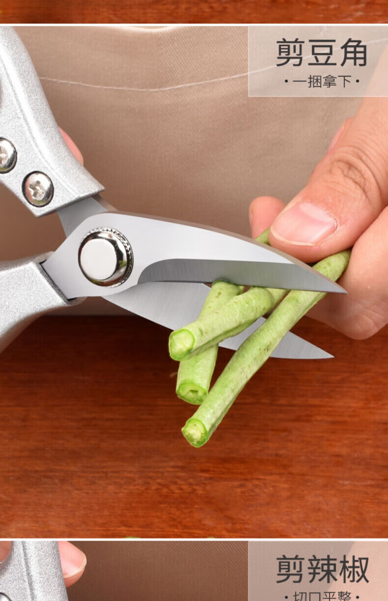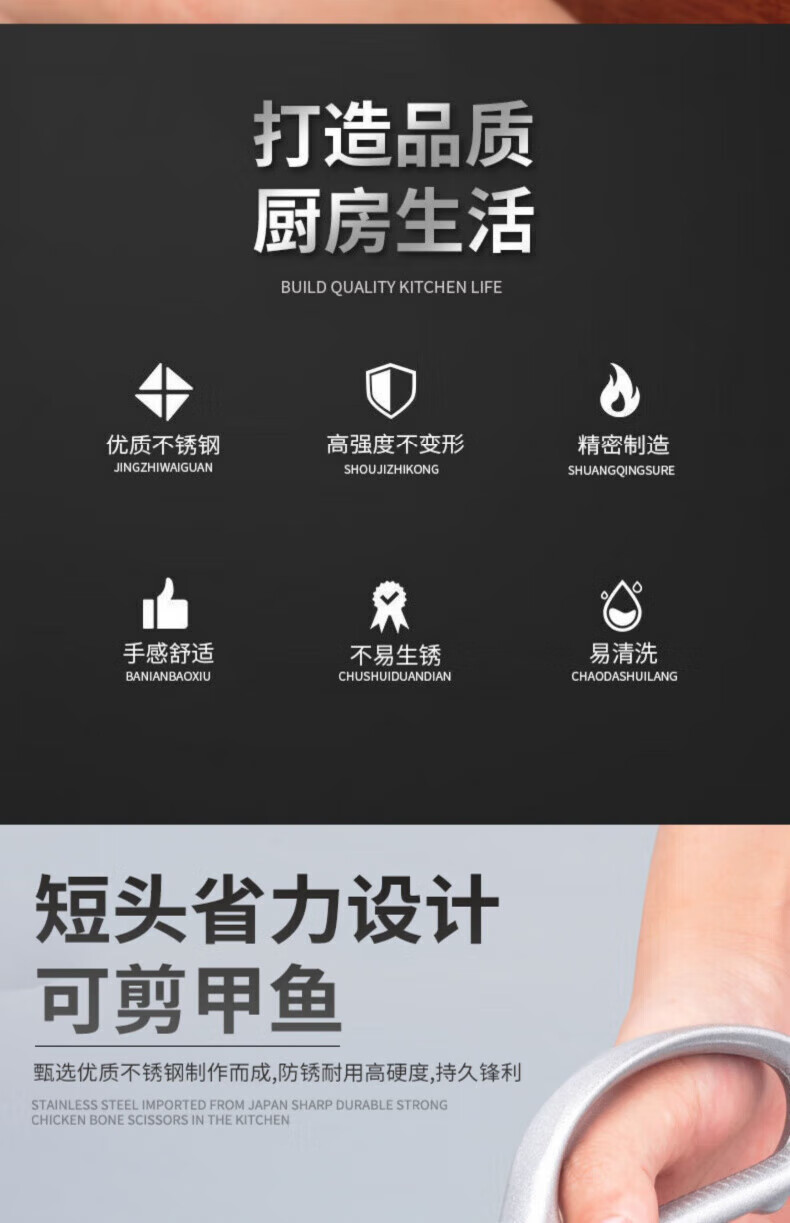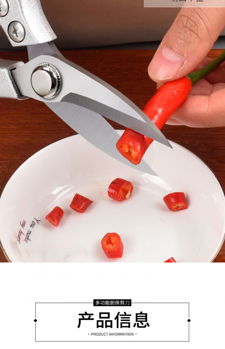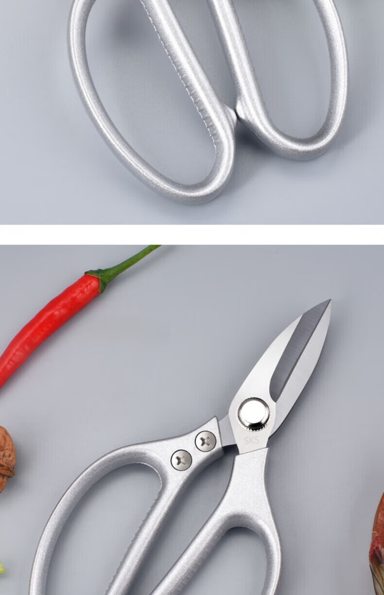 JCZS精工厨房专用剪刀强力鸡骨剪不锈钢家用多功能剪刀鱼甲鱼 一代银色薄款105g【盒装】