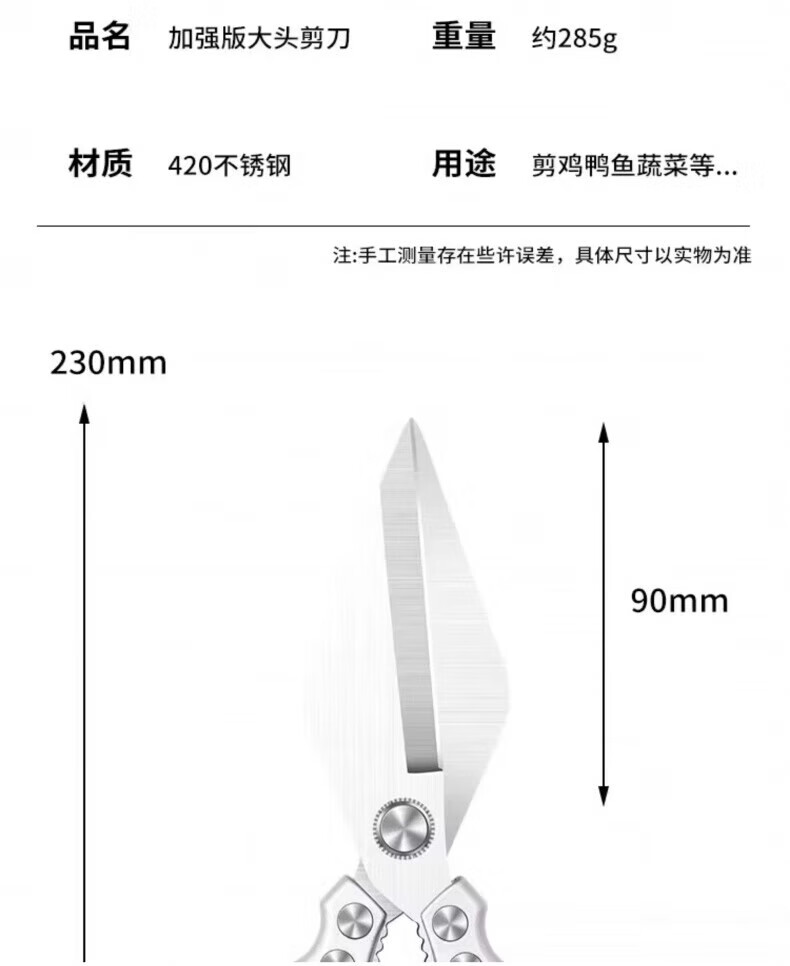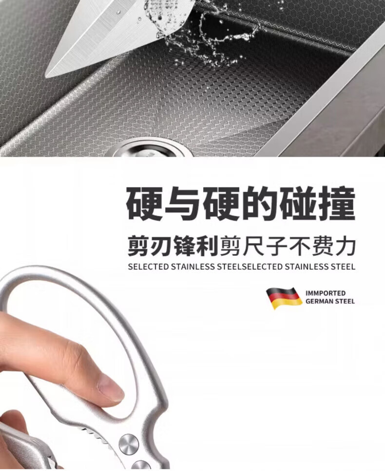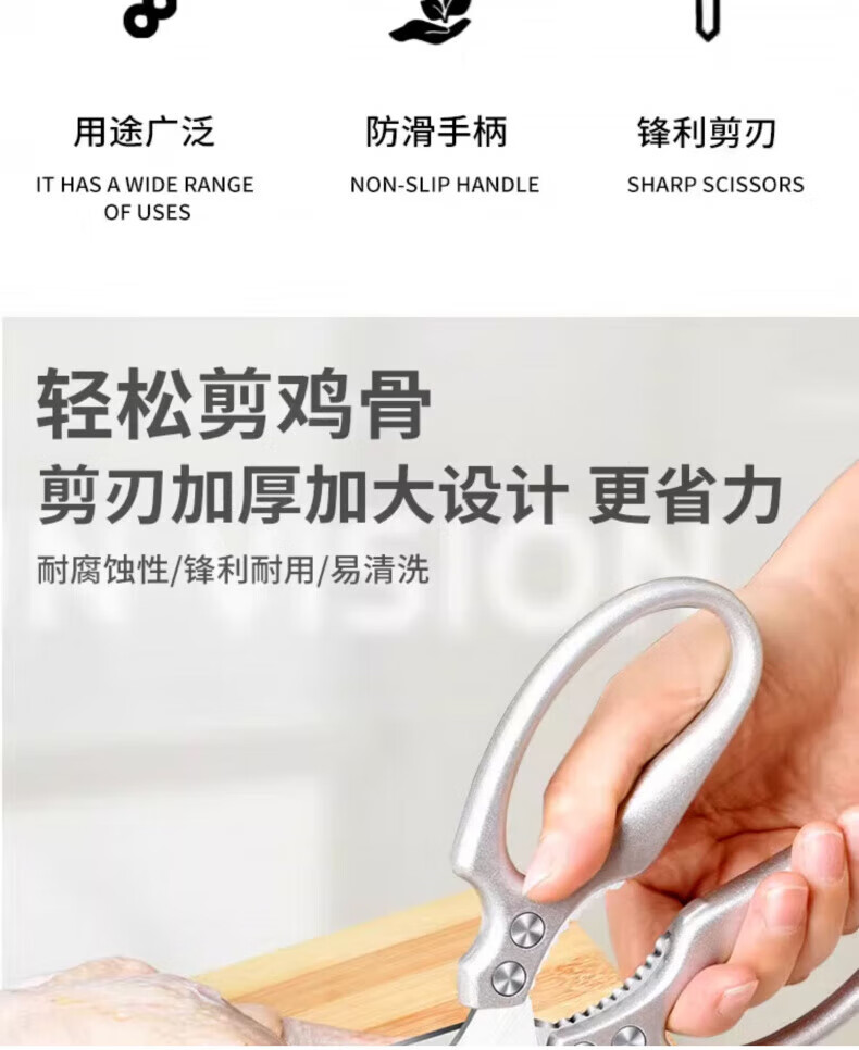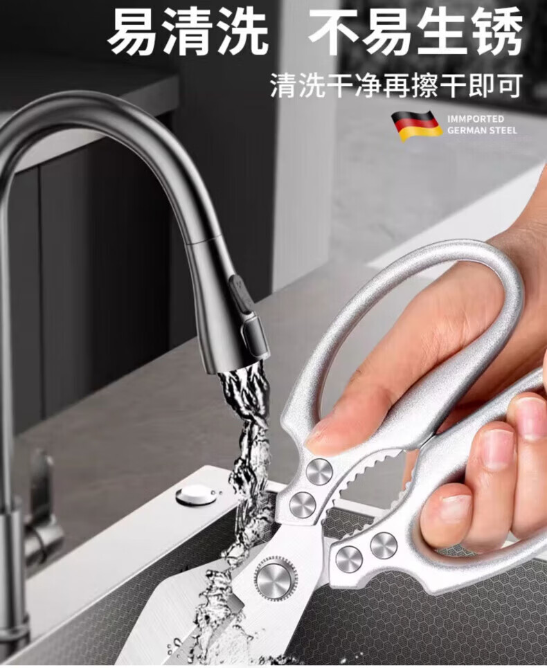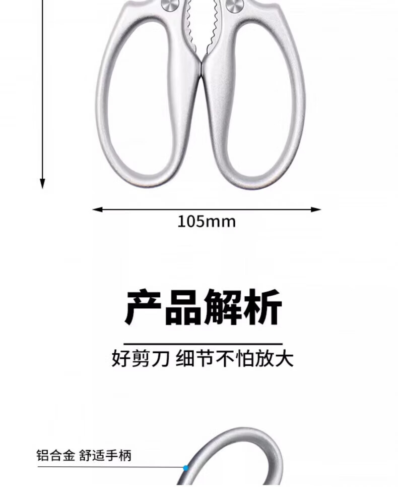 JCZS德国品牌精工剪刀厨房专用强力鸡骨剪食品级不锈钢高硬度锋利多功 银色 【M79   加厚 铝合金大头剪】