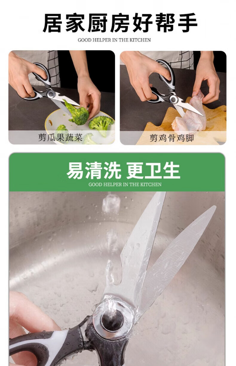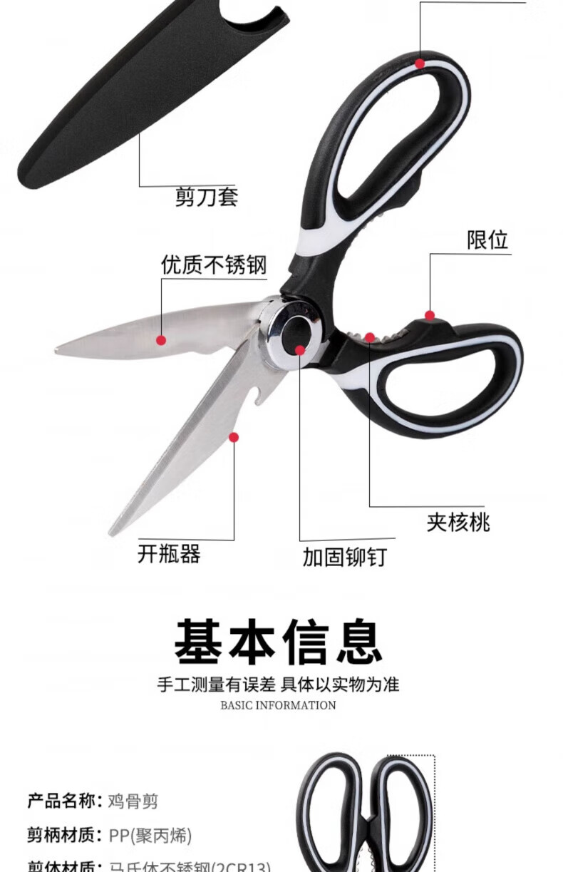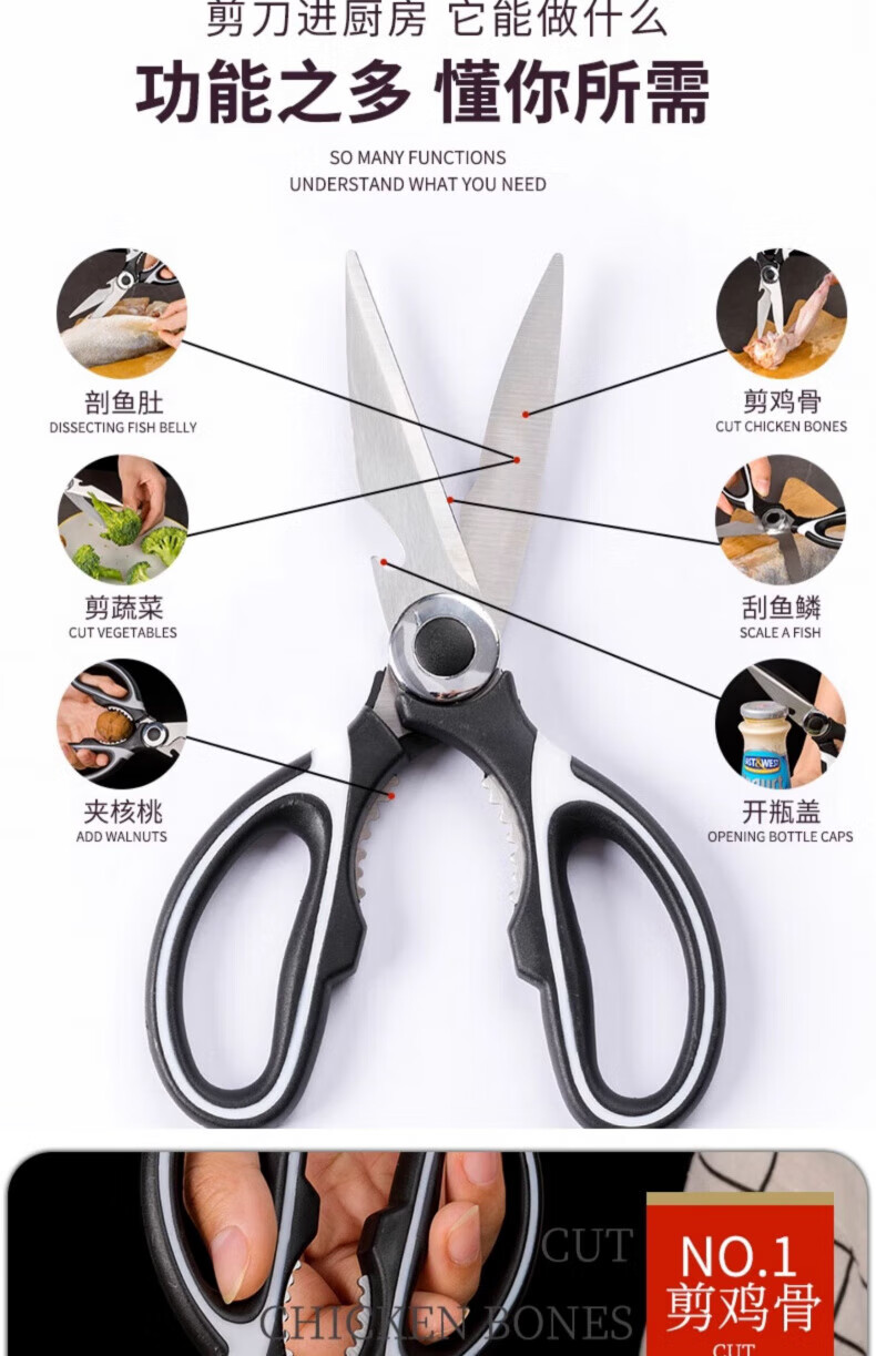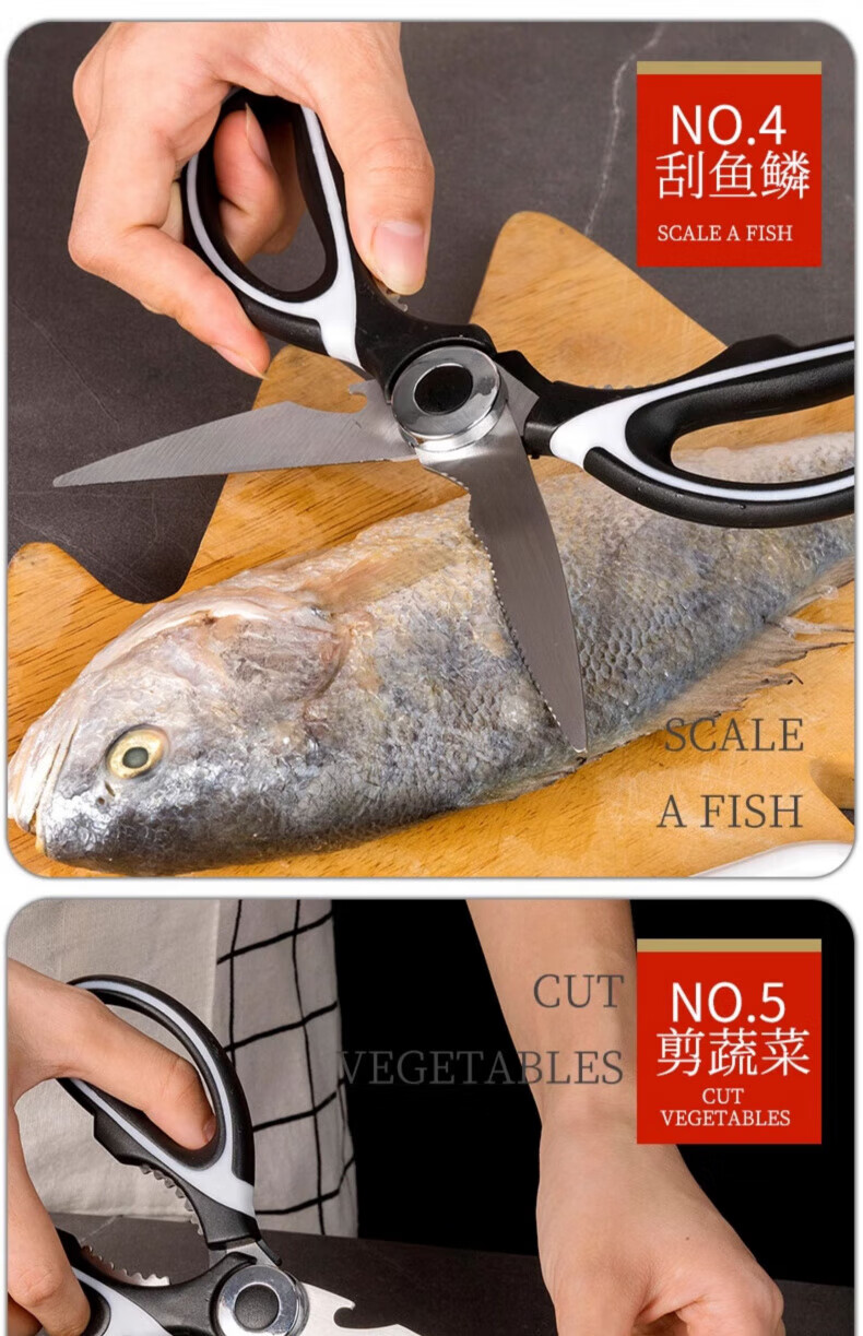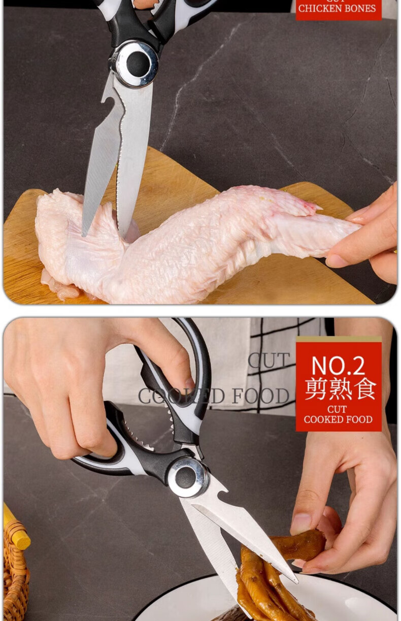 JCZS Deutsche Marke, multifunktionale Küchenschere, extra groß, Edelstahl, japanische starke Hühnerknochenschere zum Schneiden von Fleisch und Töten von Fischfutter, Hühnerknochenschere, schwarz, 1 Paar