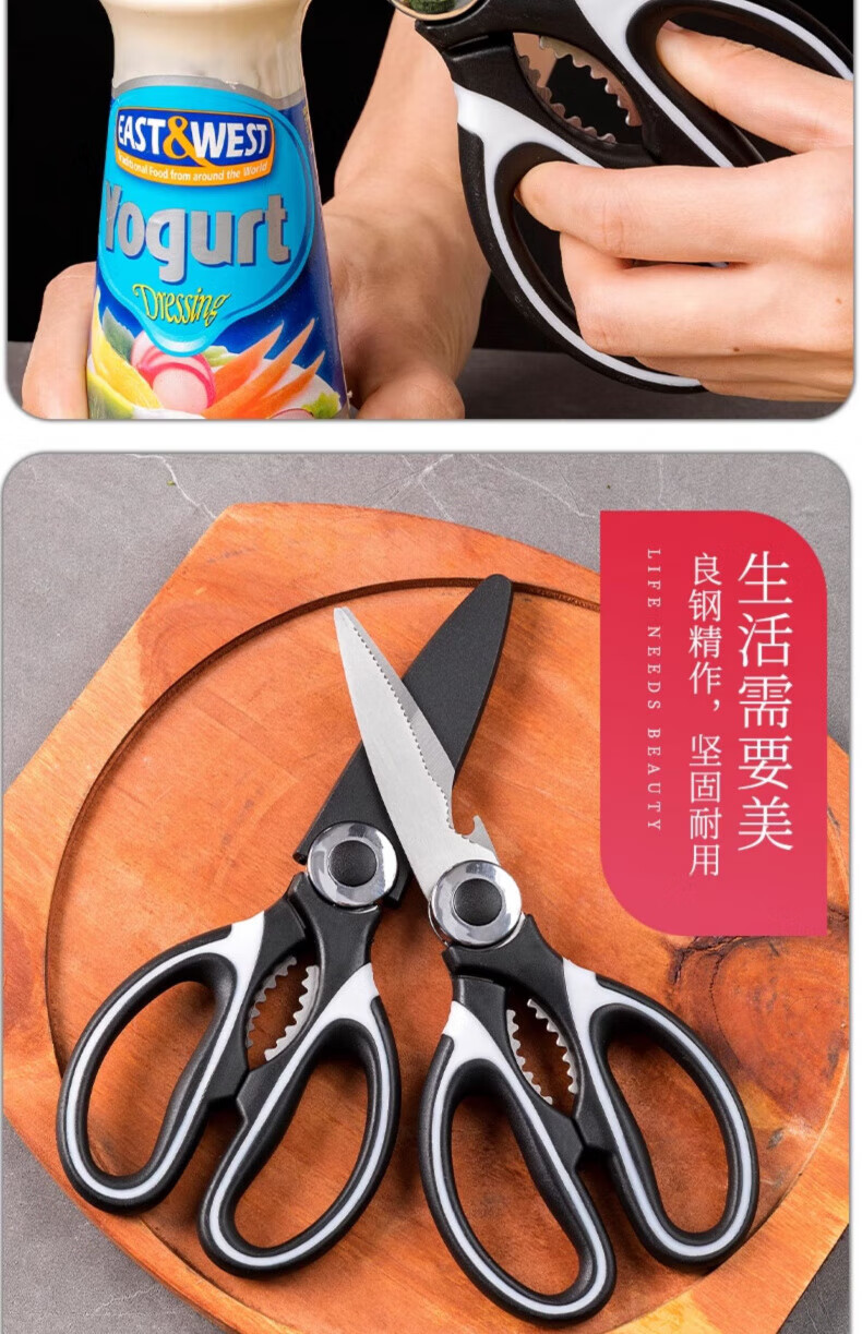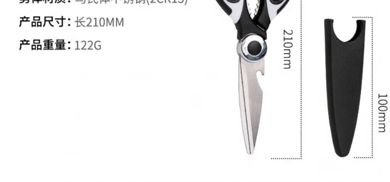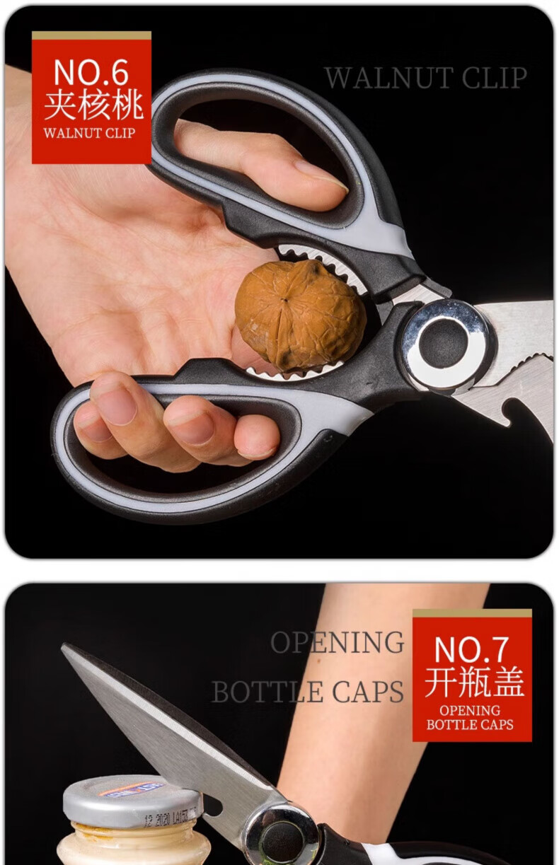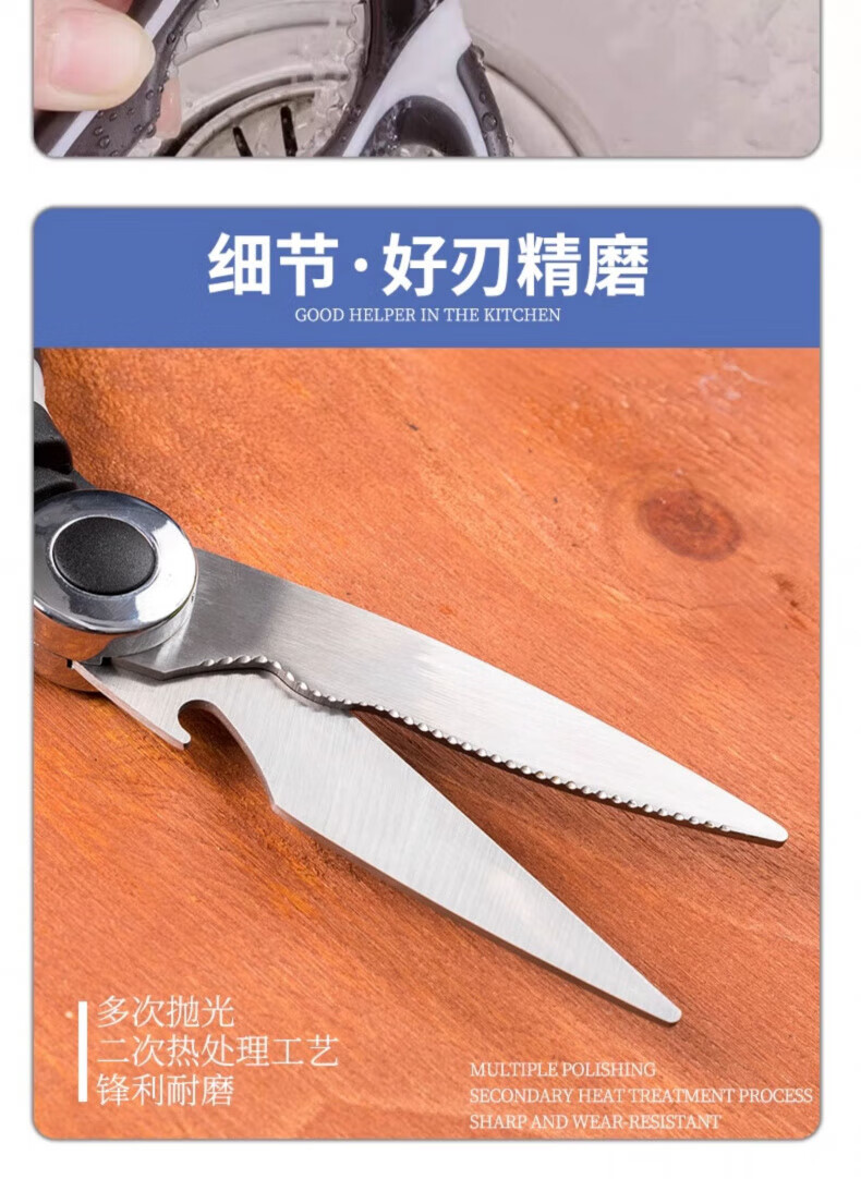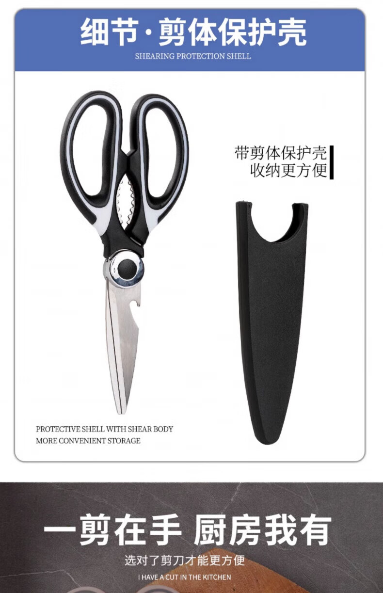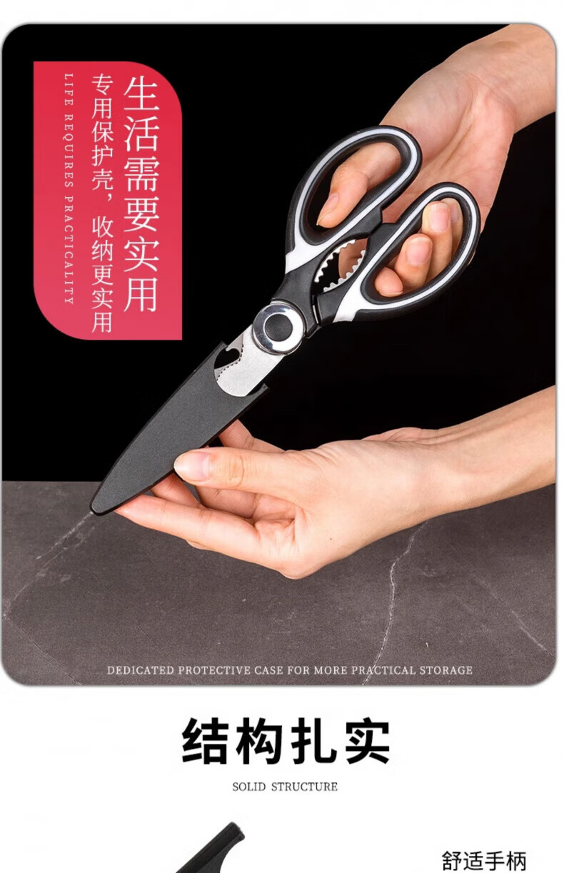 JCZS Deutsche Marke, multifunktionale Küchenschere, extra groß, Edelstahl, japanische starke Hühnerknochenschere zum Schneiden von Fleisch und Töten von Fischfutter, Hühnerknochenschere, schwarz, 1 Paar
