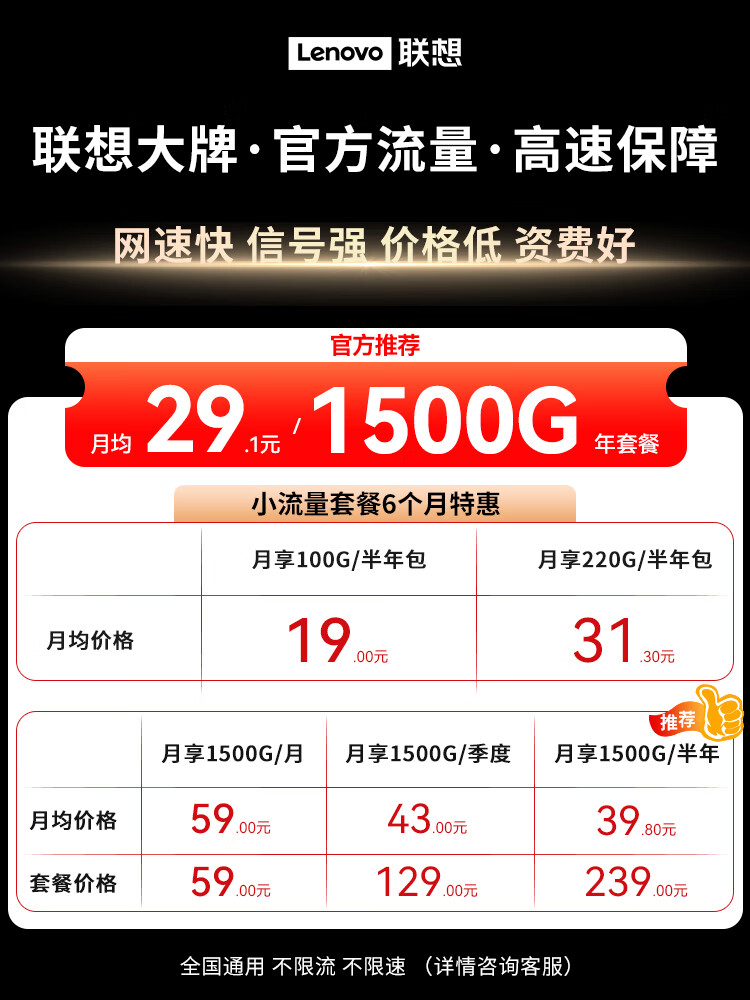 Lenovo card-free mobile router, official authentic 4G portable CPE, no-pull network cable with network port to Wifi6 wireless traffic, 2025 national universal TV, half-year package, fast WIFI6 + performance improvement + home office, 220G/month*1 month