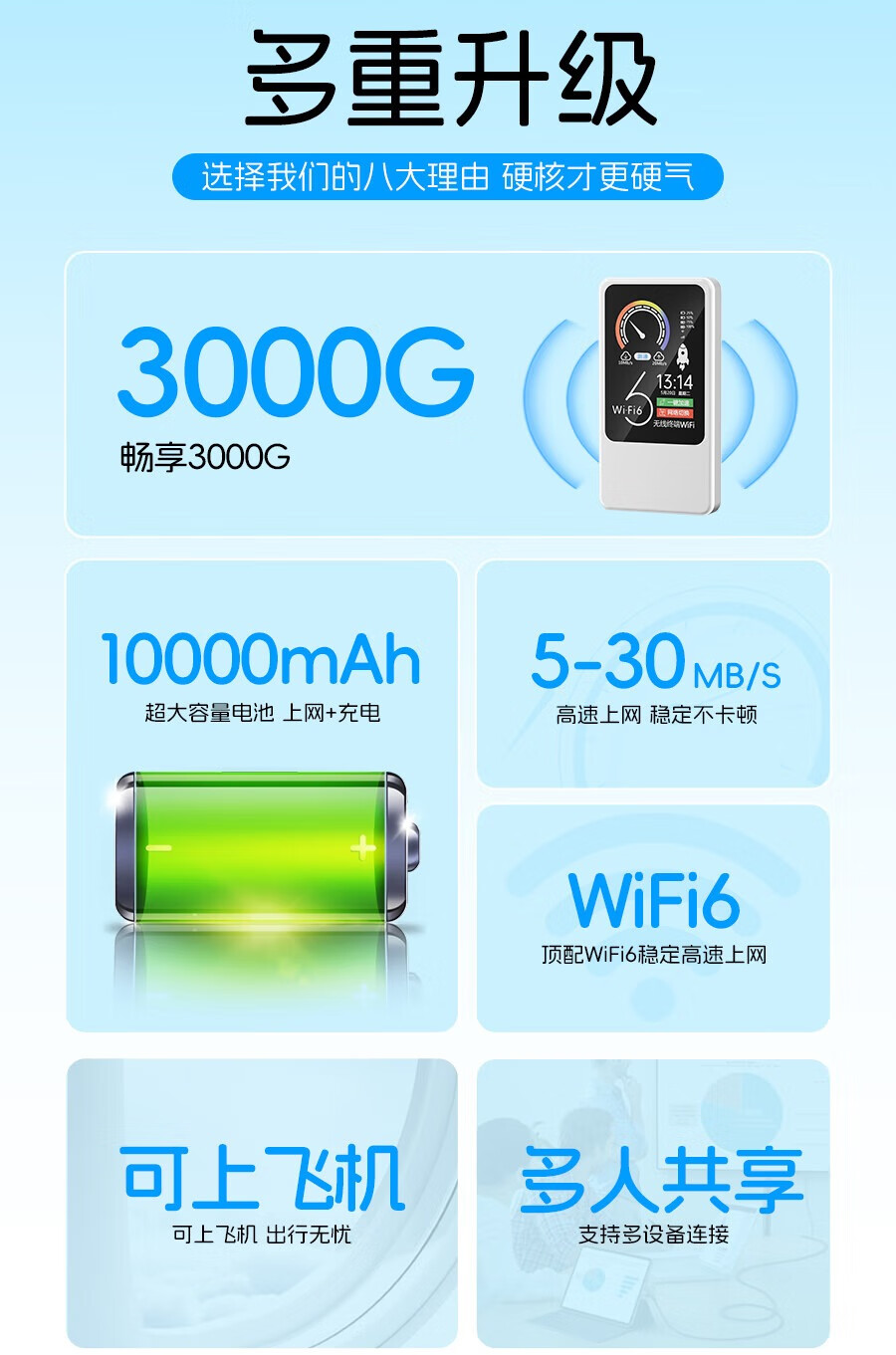 Deqian wifi portátil6 5Ghz de doble banda a nivel nacional 2025 nuevo banco de energía de 10000 mAh tráfico inalámbrico dos en uno telecomunicaciones móviles enrutador portátil doméstico Unicom versión de fibra óptica módulo de penetración de pared de ocho núcleos-red completa de 5Ghz 0 paquete de alquiler mensual una carga por mes sin rutina