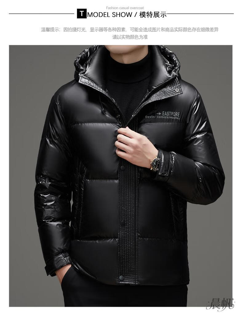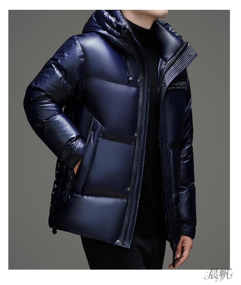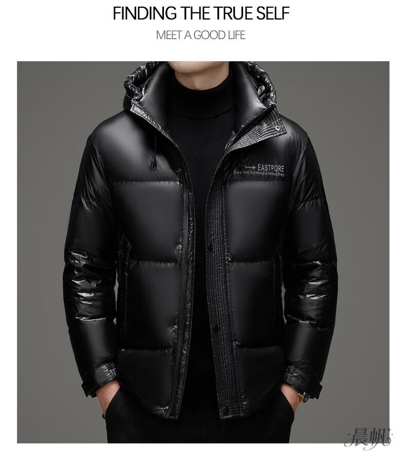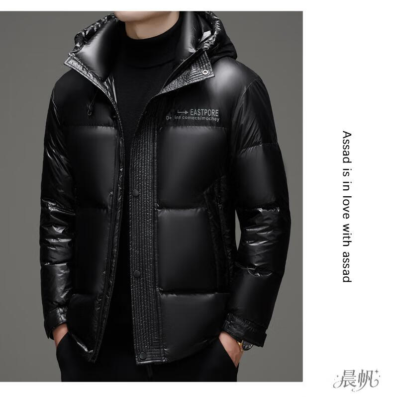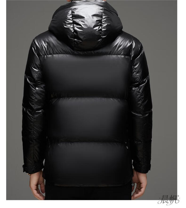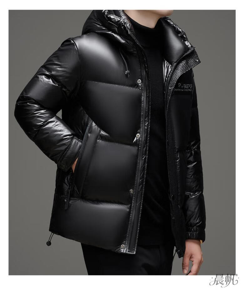 Playboy (PLAYBOY) Chaqueta de plumón para hombre, chaqueta cálida, corta, informal, de moda, con capucha brillante, resistente al viento e impermeable, color negro, M 170