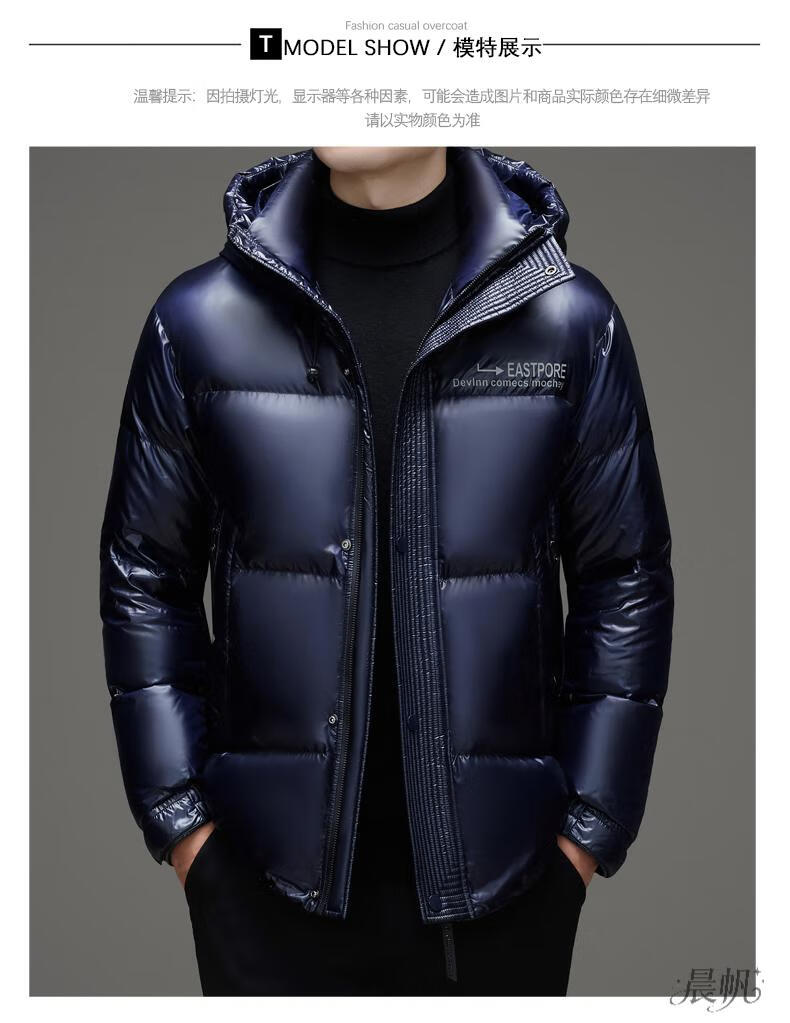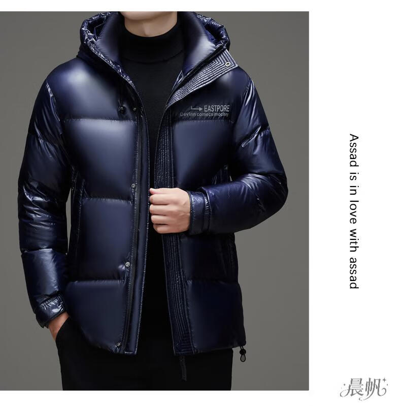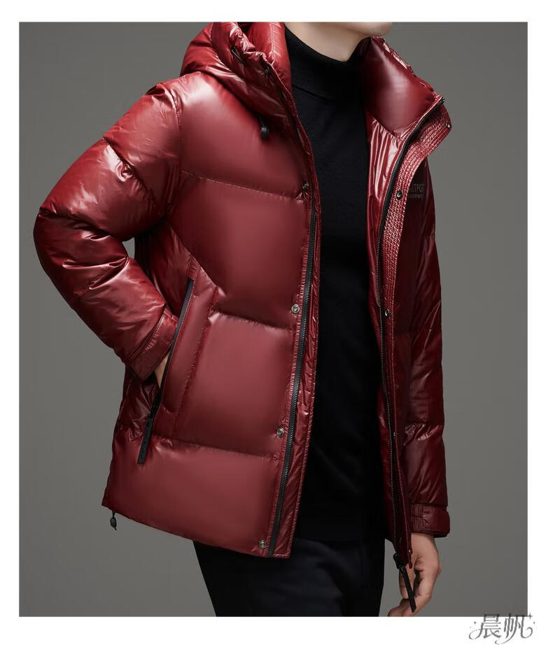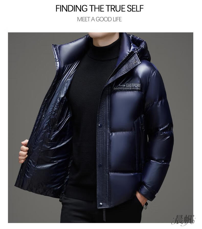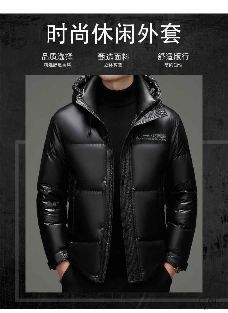 Playboy (PLAYBOY) Chaqueta de plumón para hombre, chaqueta cálida, corta, informal, de moda, con capucha brillante, resistente al viento e impermeable, color negro, M 170