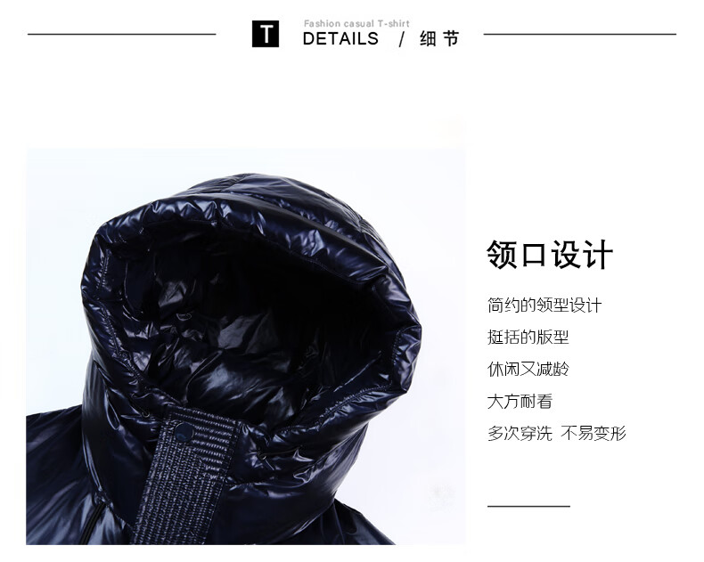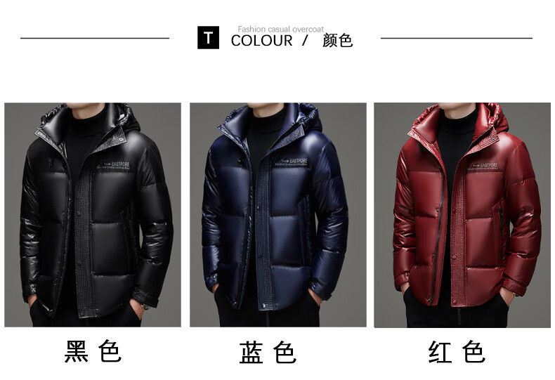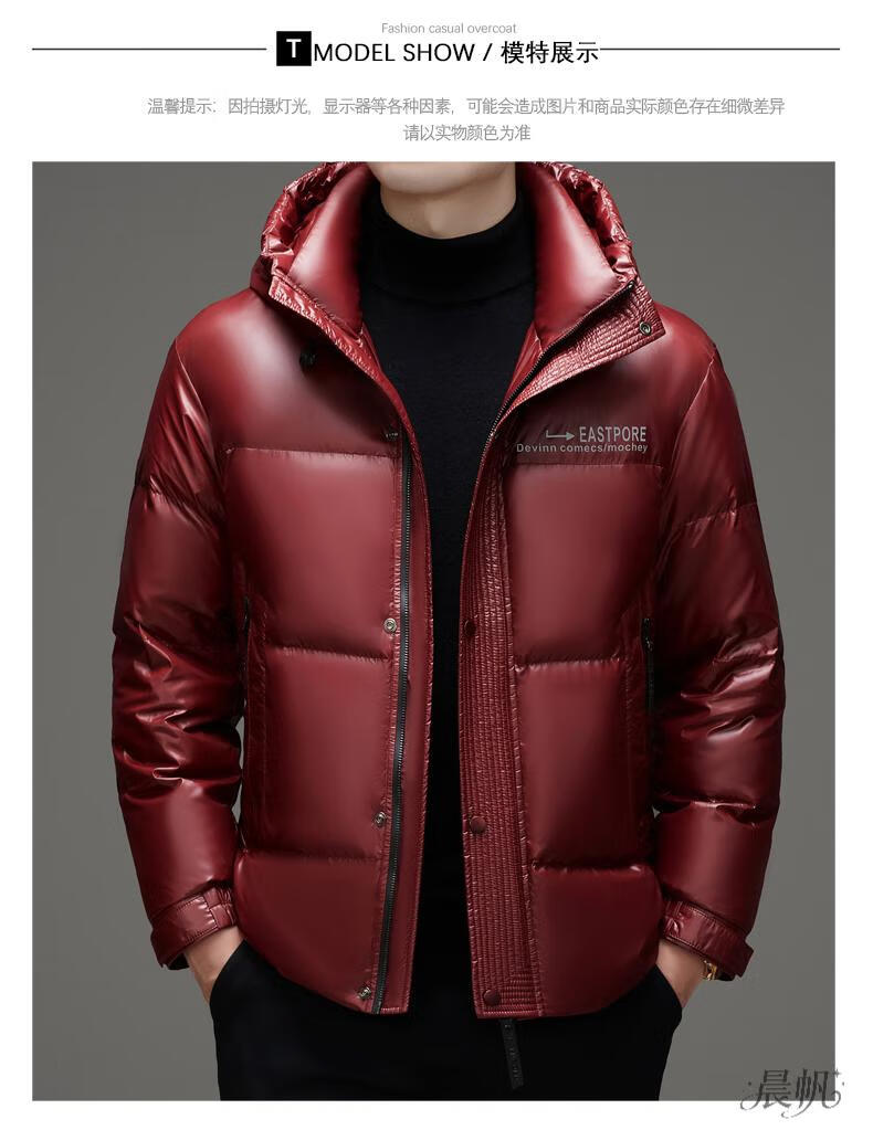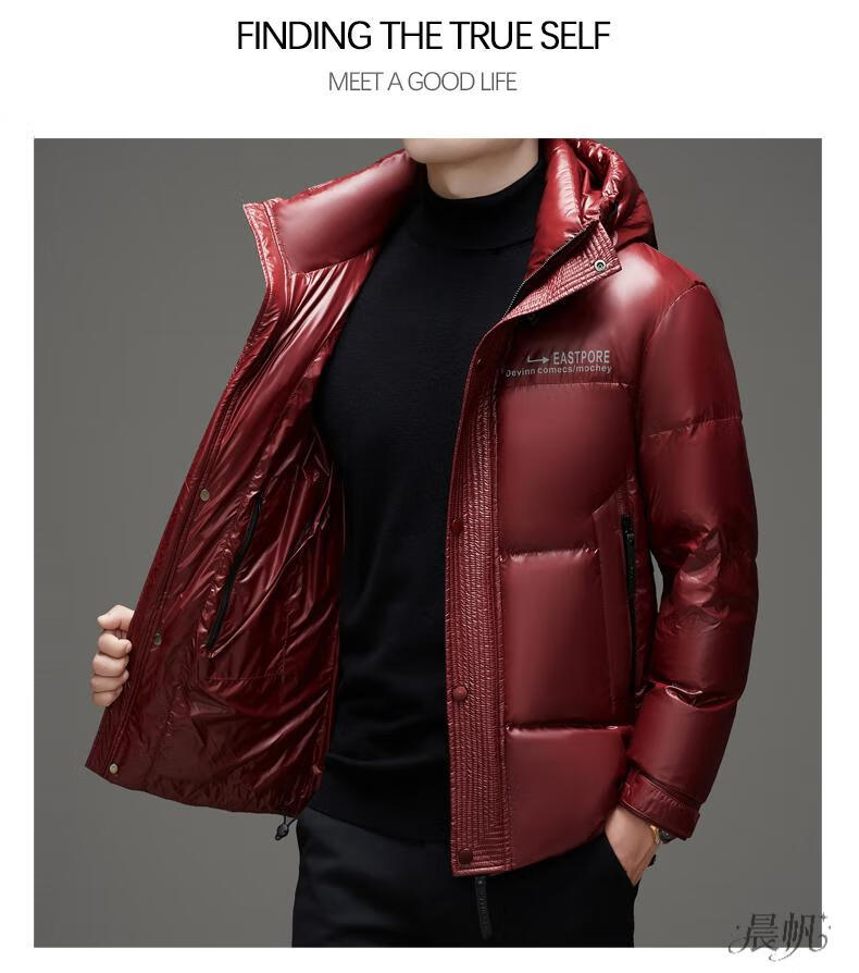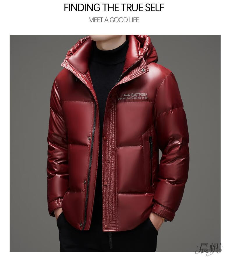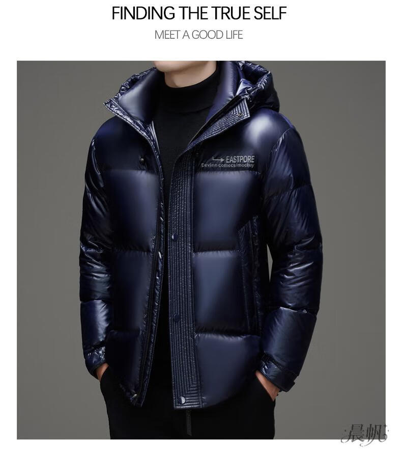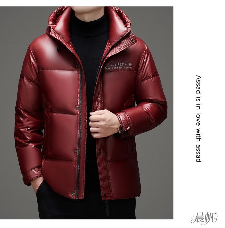 Playboy (PLAYBOY) Chaqueta de plumón para hombre, chaqueta cálida, corta, informal, de moda, con capucha brillante, resistente al viento e impermeable, color negro, M 170