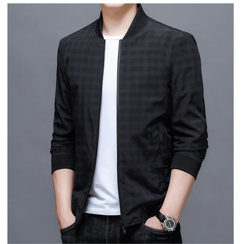 Lilang Herbst-Herrenjacke im koreanischen Stil, trendige Jacke, lässige Herren-Oberteile für junge und mittlere Männer, Schwarz, M (170)