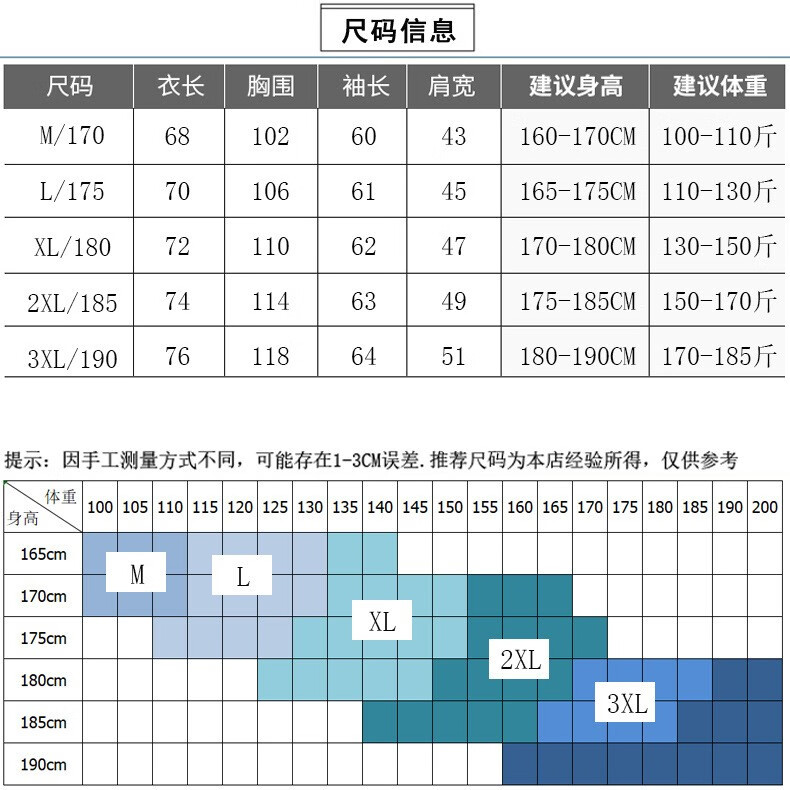 China (cm) 165 / 88-90 170 / 96-98 175 / 108-110 180 / 118-122 185 / 126-130