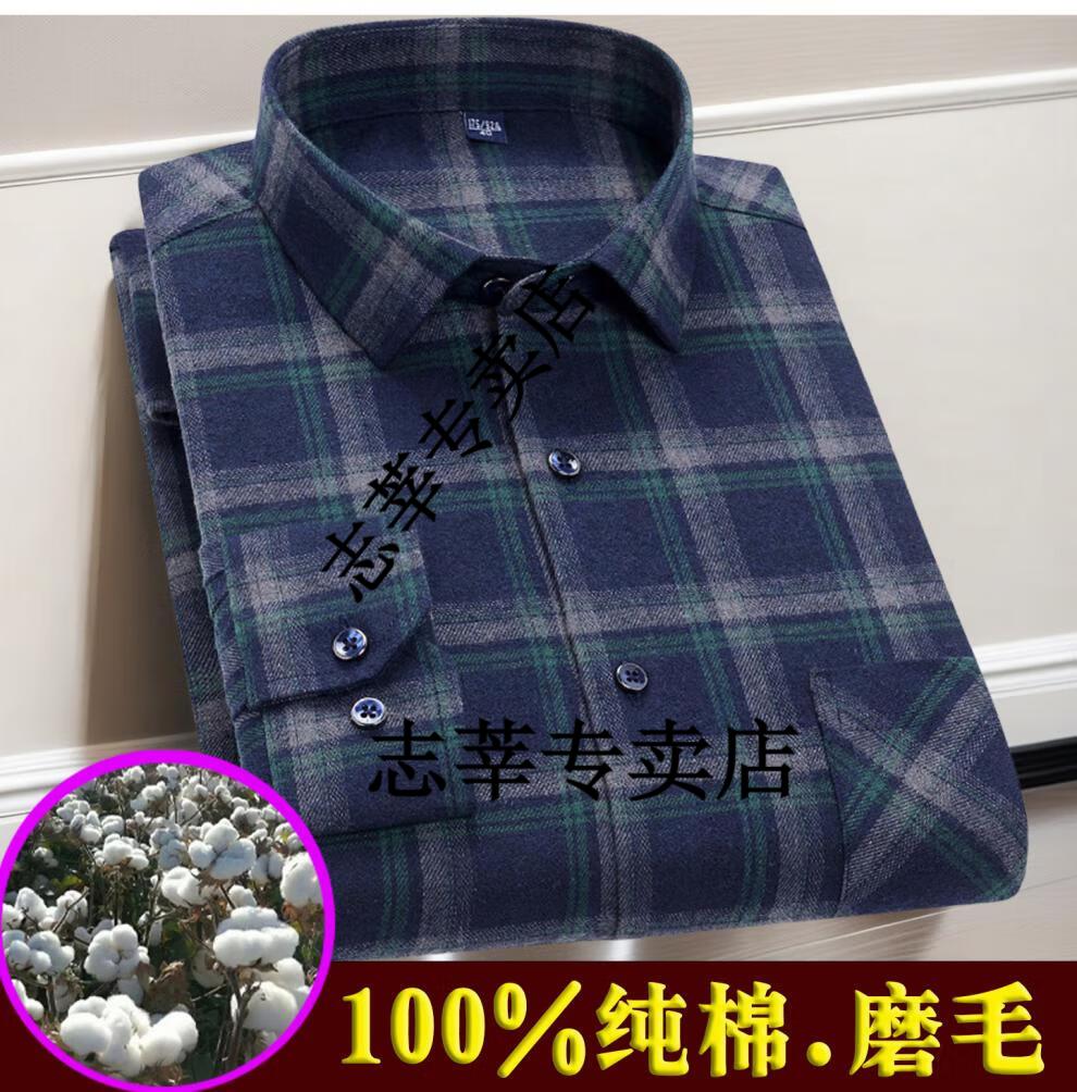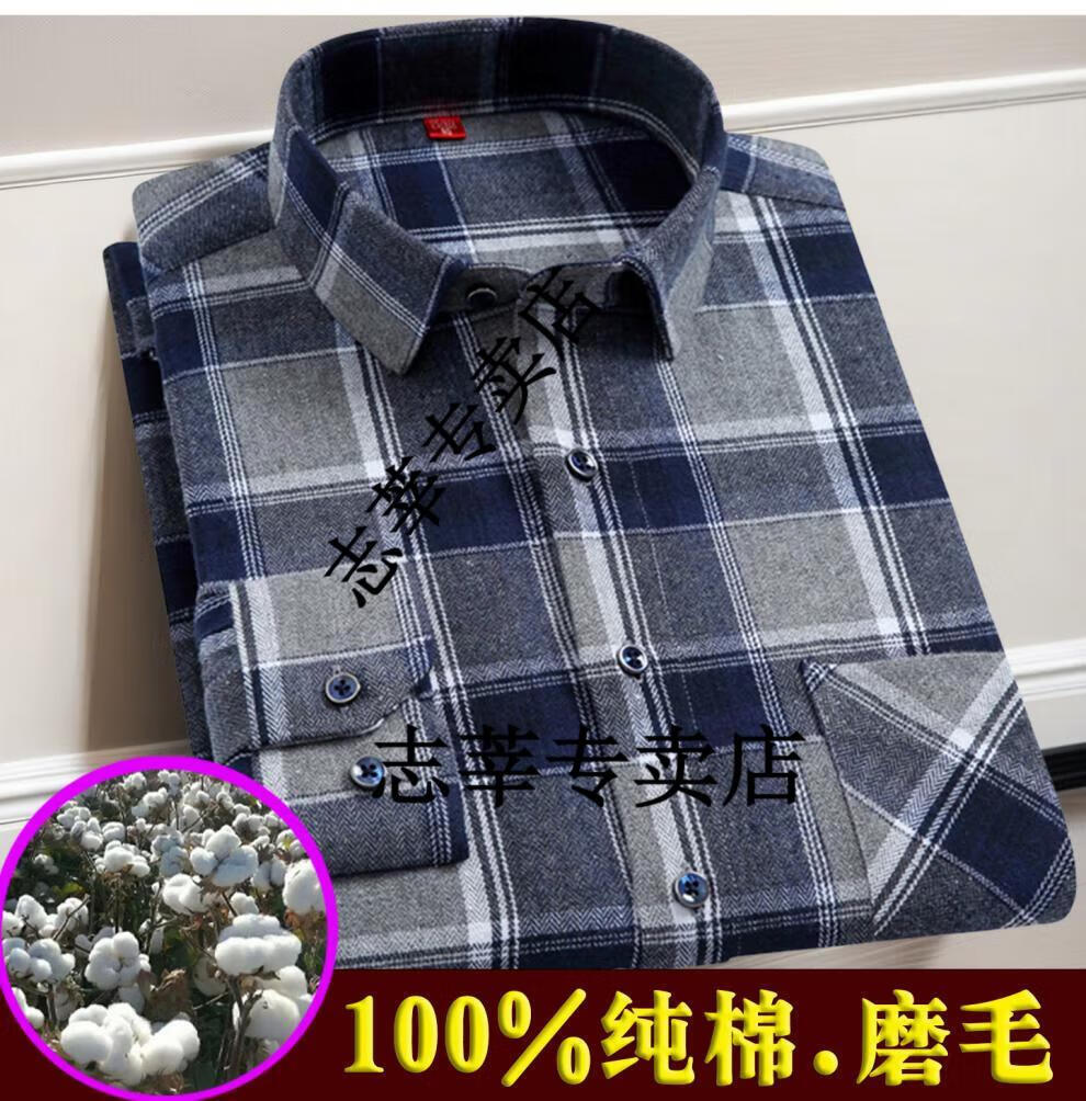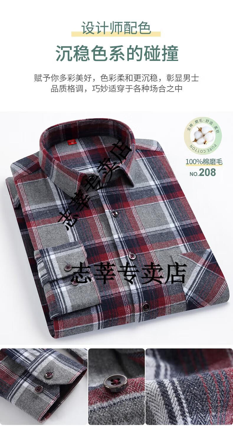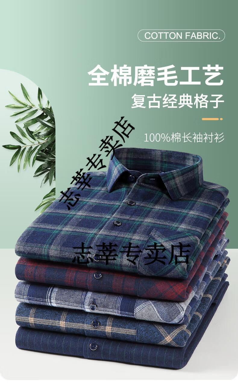 Lilang 100% algodón primavera, otoño e invierno camisa de manga larga a cuadros cepillada para hombres ropa casual engrosada para papá camisa de algodón suelta 202 Aileden 38 (95-115 Jin Jin equivale a 0,5 kg)