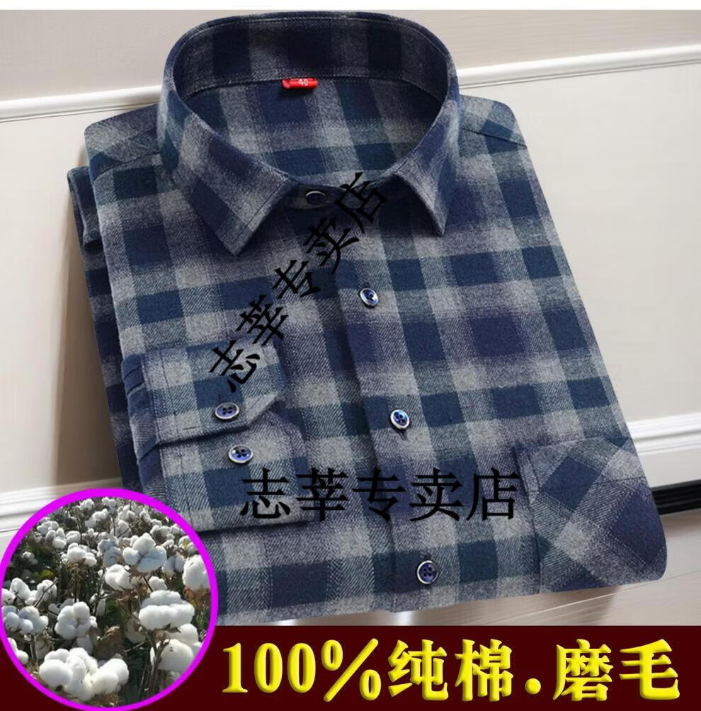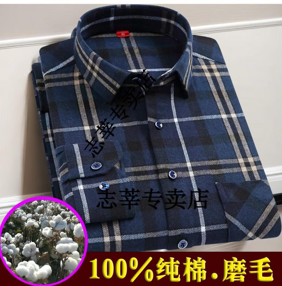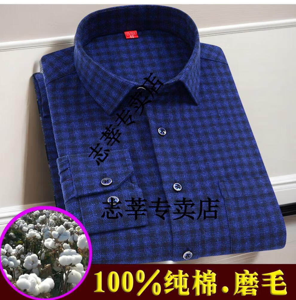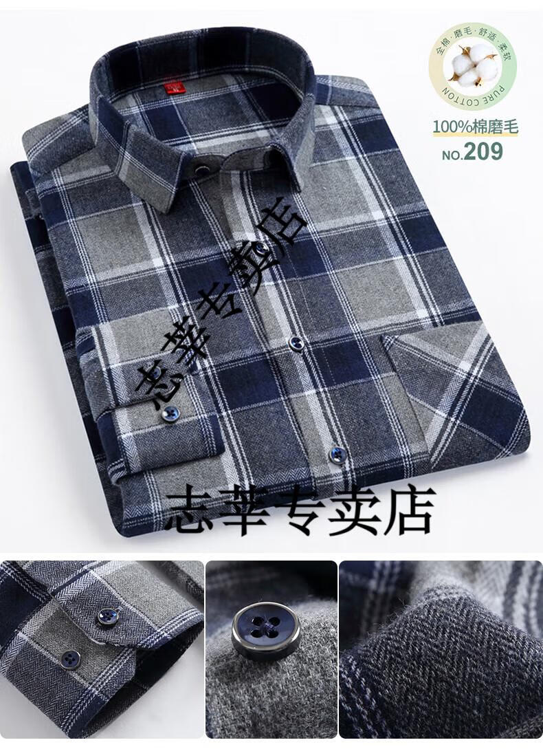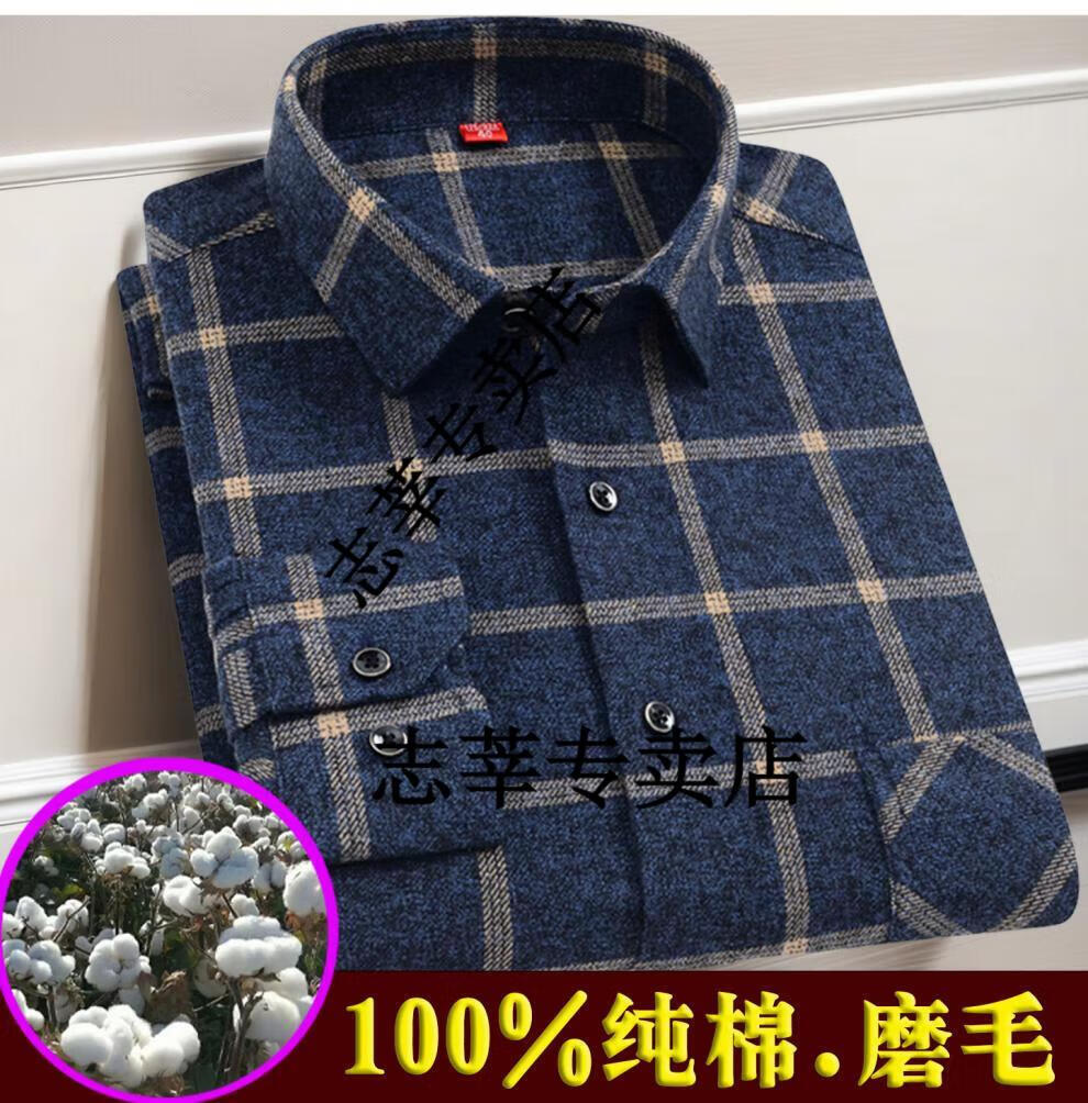 Lilang 100% algodón primavera, otoño e invierno camisa de manga larga a cuadros cepillada para hombres ropa casual engrosada para papá camisa de algodón suelta 202 Aileden 38 (95-115 Jin Jin equivale a 0,5 kg)