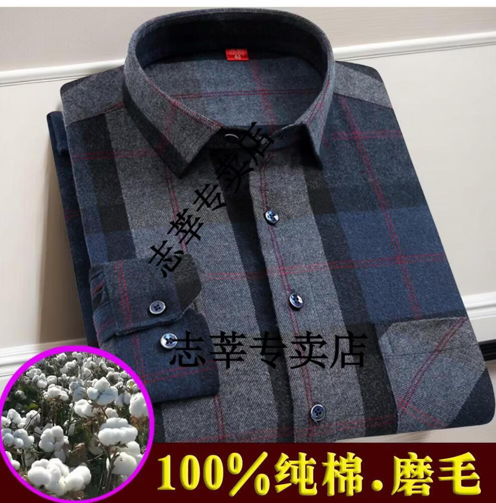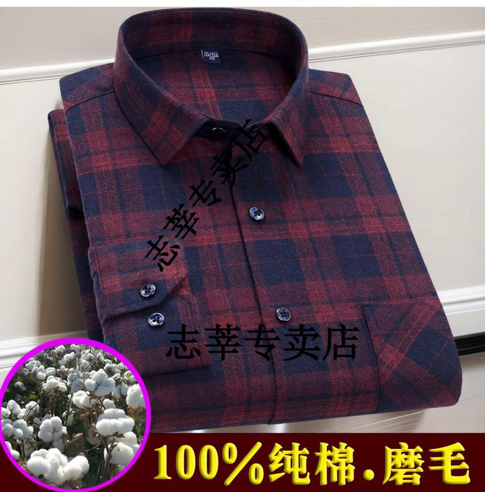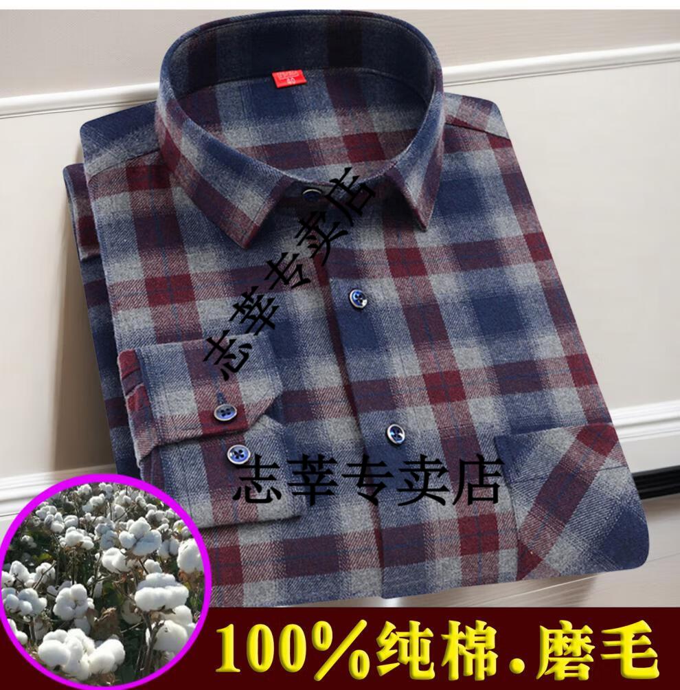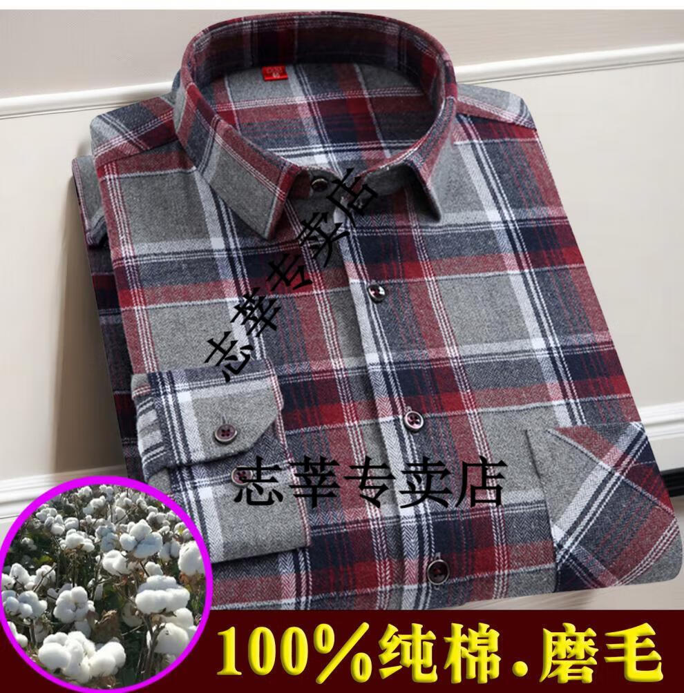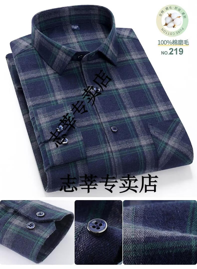 Lilang 100% algodón primavera, otoño e invierno camisa de manga larga a cuadros cepillada para hombres ropa casual engrosada para papá camisa de algodón suelta 202 Aileden 38 (95-115 Jin Jin equivale a 0,5 kg)