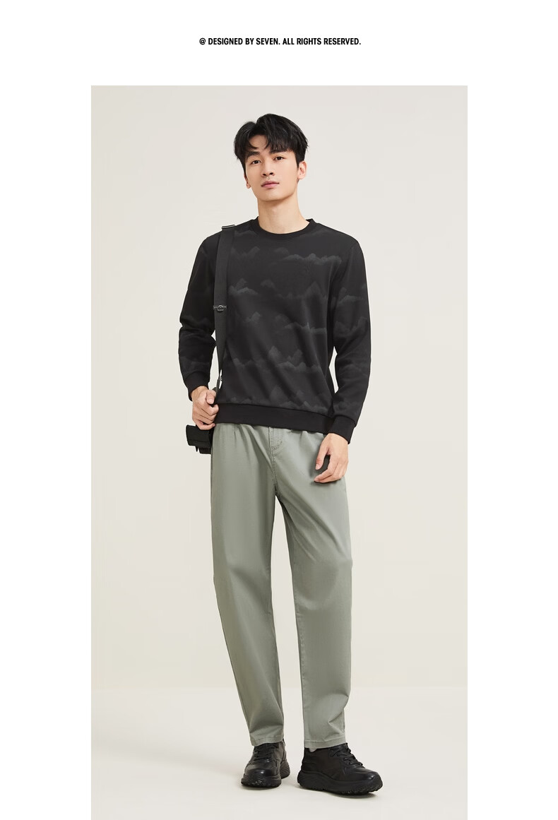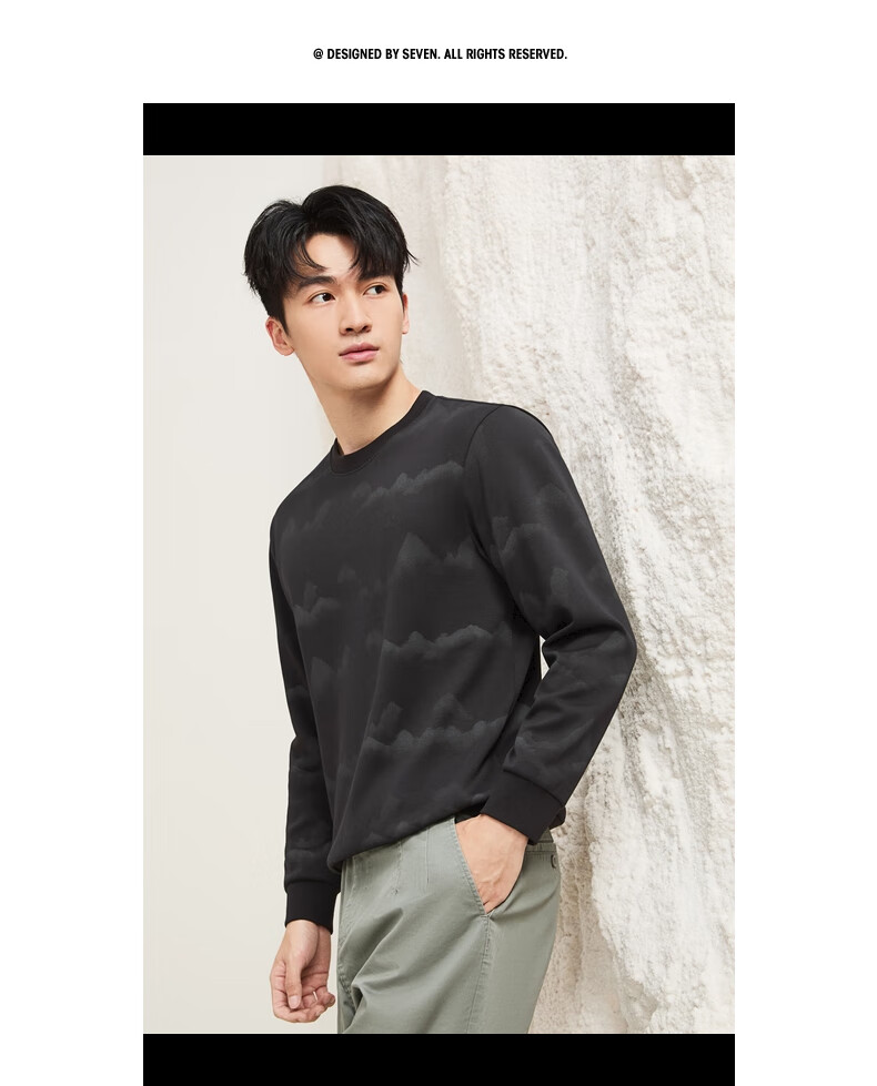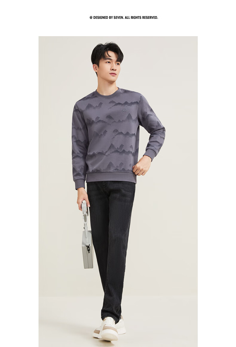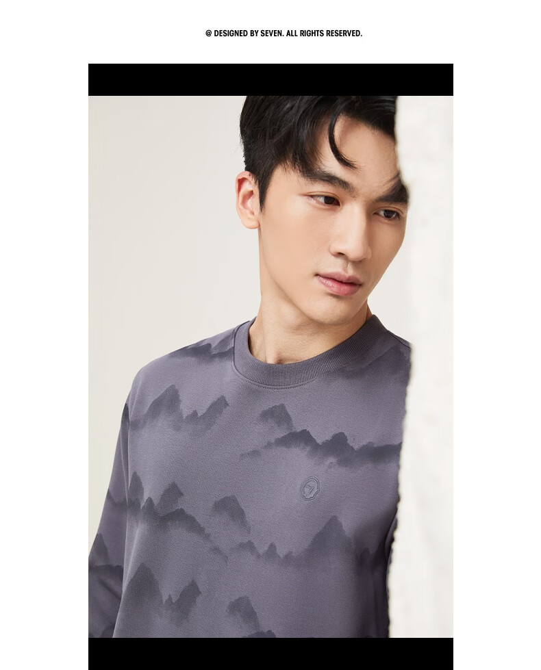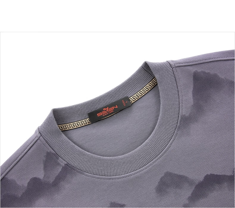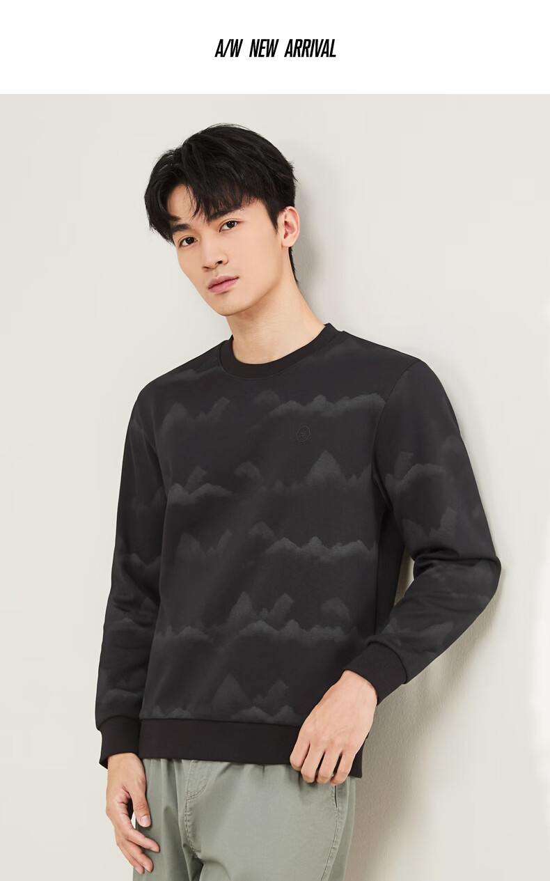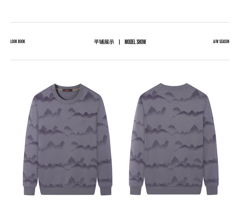 Qipai Xinjiang cotton/national style landscape print round neck sweatshirt for men 2025 autumn and winter new casual versatile top trend dark gray S (165)