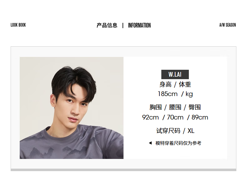 China (cm) 165 / 88-90 170 / 96-98 175 / 108-110 180 / 118-122 185 / 126-130