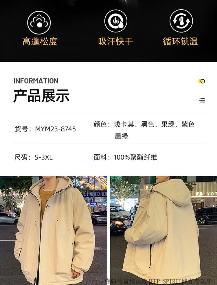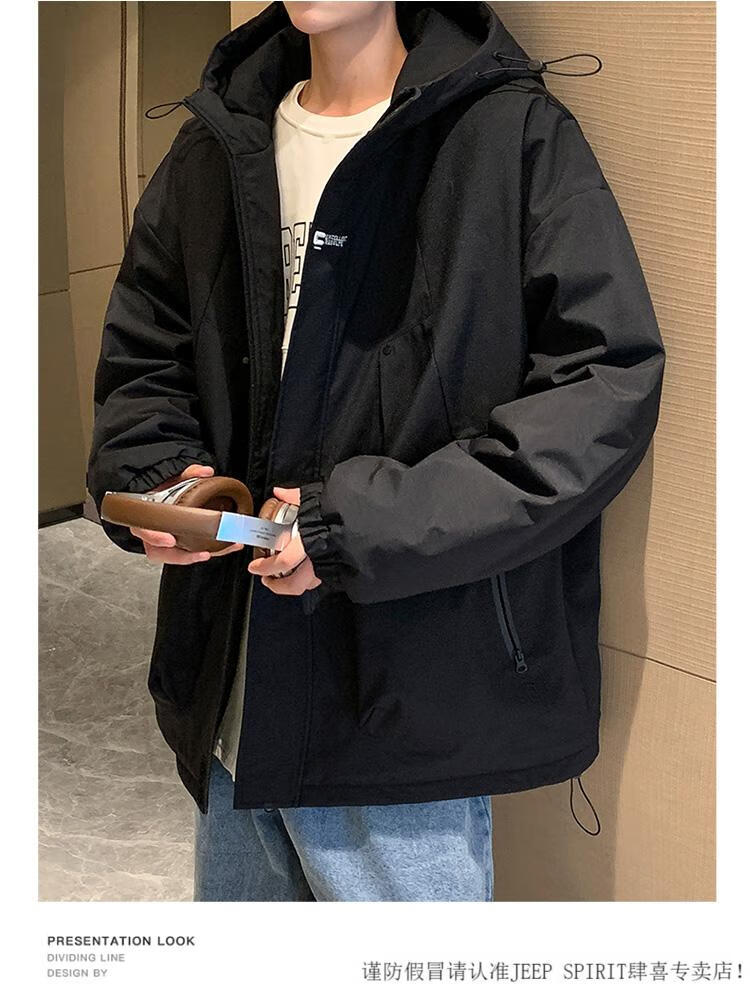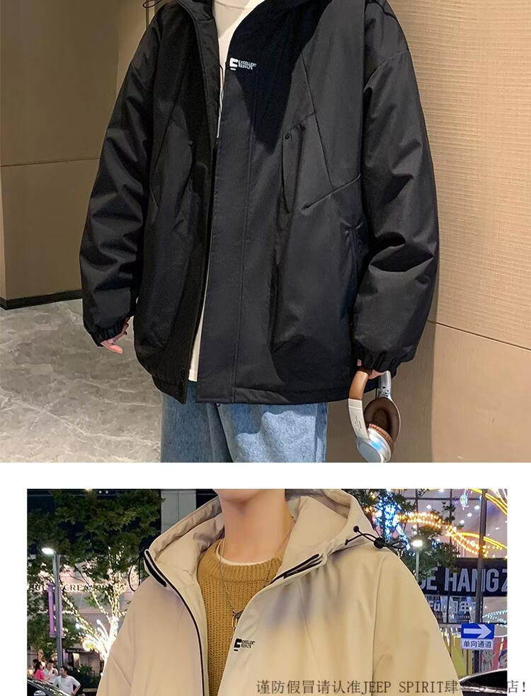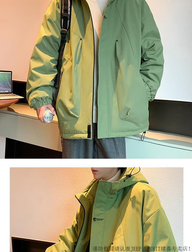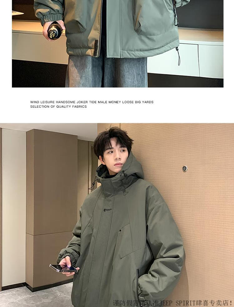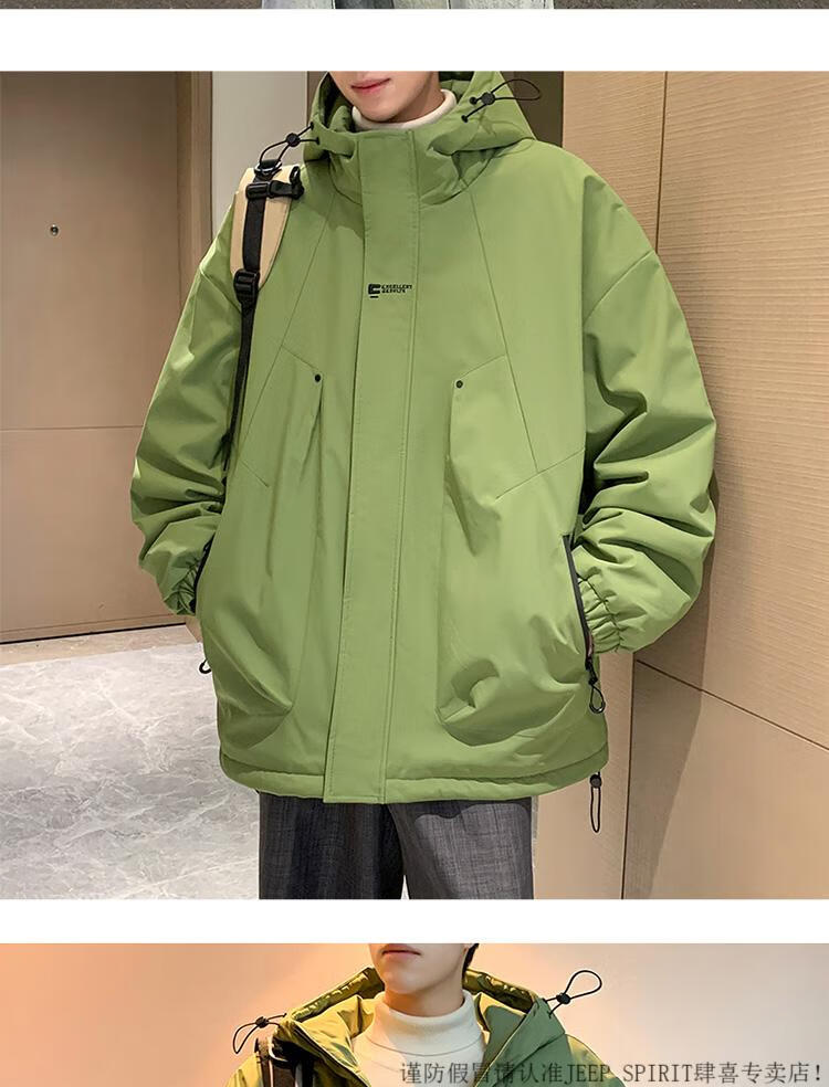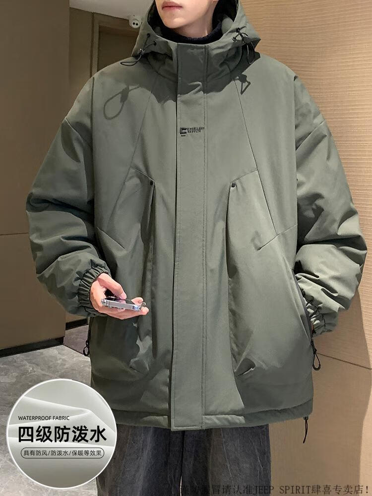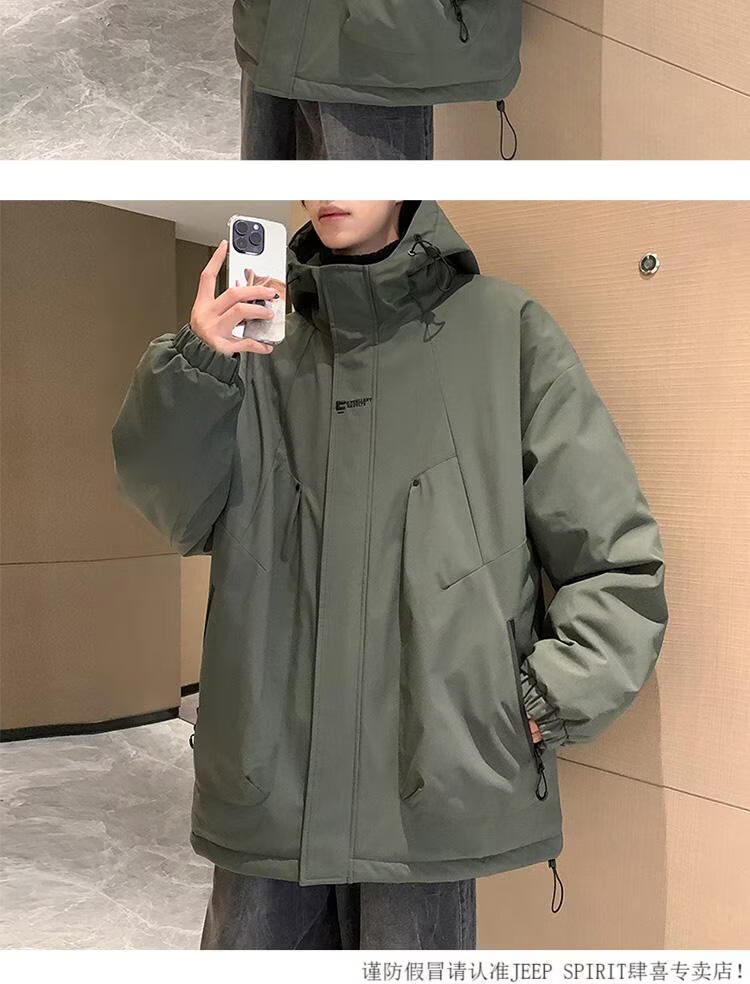JEEP SPIRIT chaqueta cálida acolchada de invierno con capucha para hombre, ropa de trabajo holgada y moderna, chaqueta cortavientos para hombre, estilo acolchado verde oscuro S
