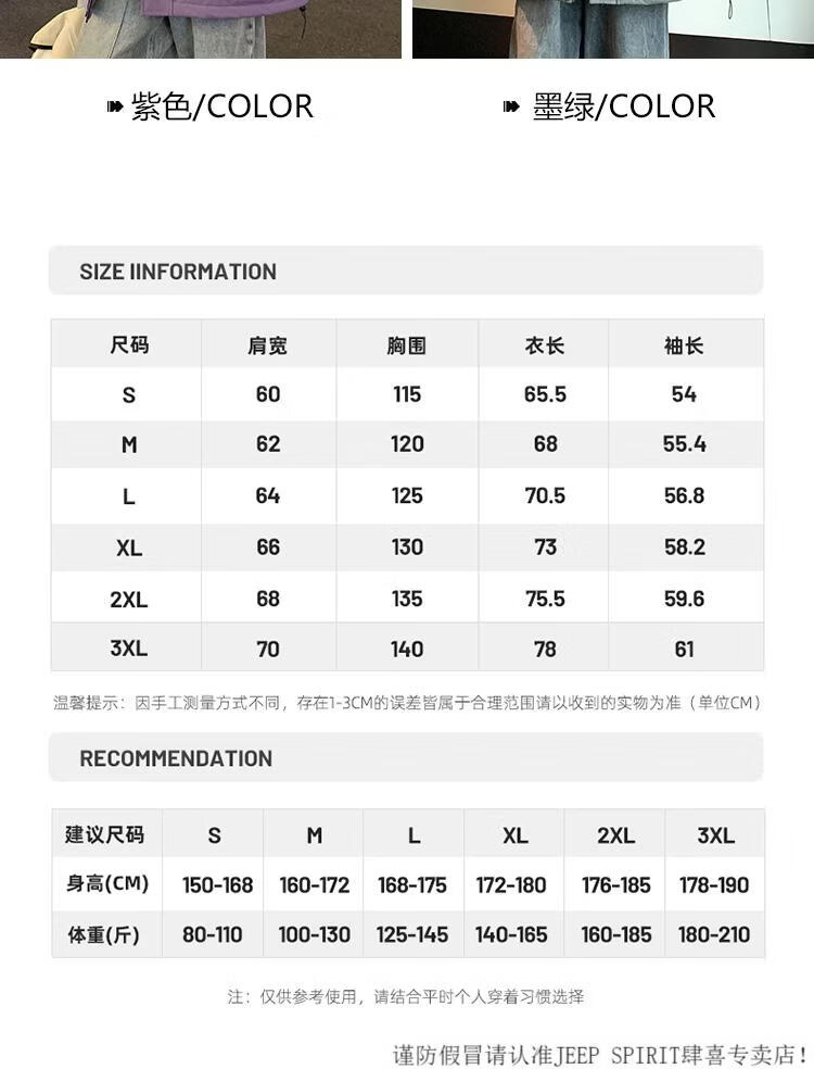 China (cm) 165 / 88-90 170 / 96-98 175 / 108-110 180 / 118-122 185 / 126-130
