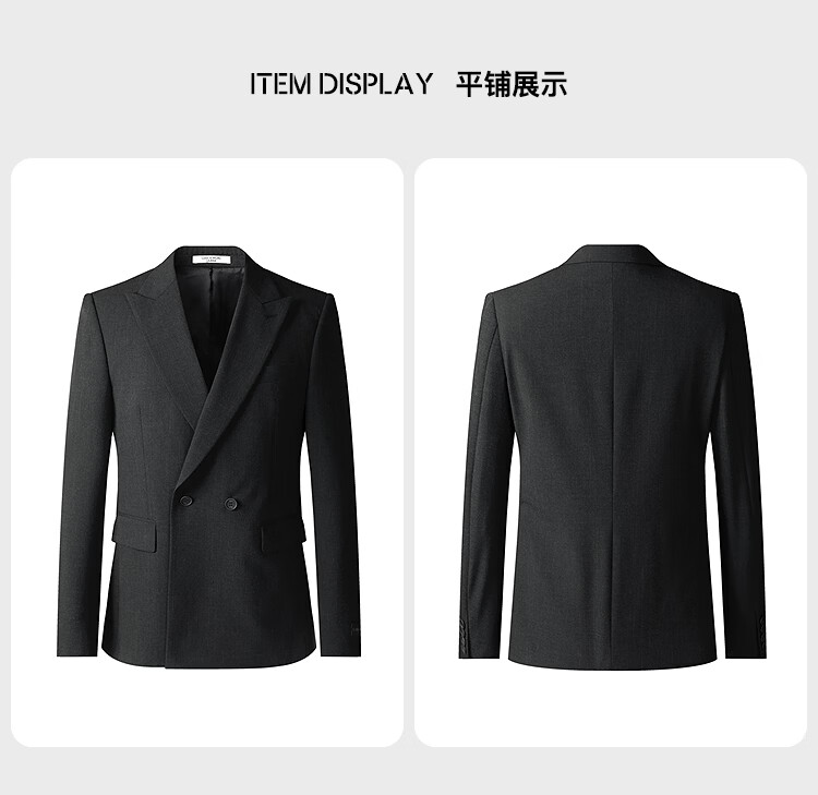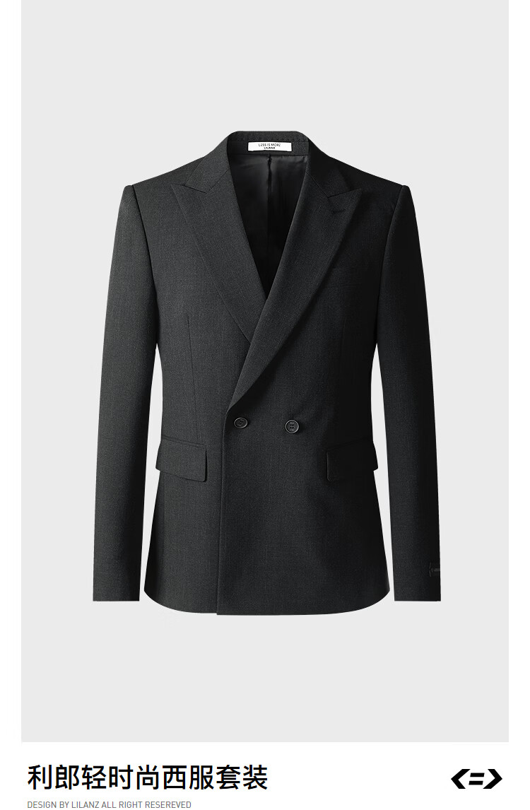 Lilang Youth Business Men's Wear Light and Dark Stripes Suit Men's Double-Breasted Peaked Collar Anti-Wrinkle Suit Two-piece Set Gray Coffee (1YA) 165A