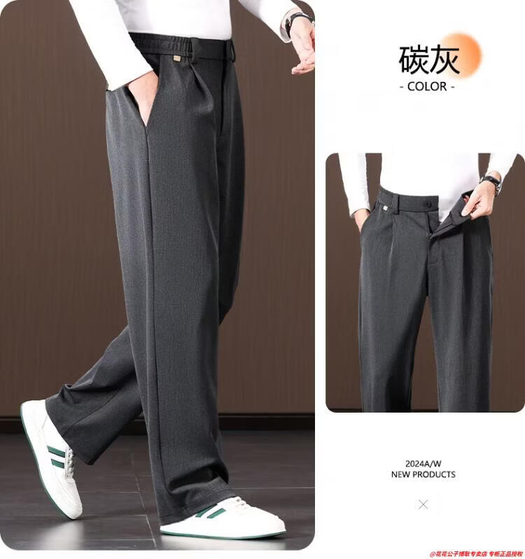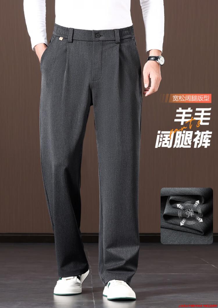 Шерстяные повседневные брюки Playboy, мужские осень и зима 2025, новые свободные прямые широкие брюки, зимние брюки для папы среднего и пожилого возраста, карбоновые серые весенне-осенние M (рекомендуемый вес 110-130 Джин Джин равен 0,5 кг)