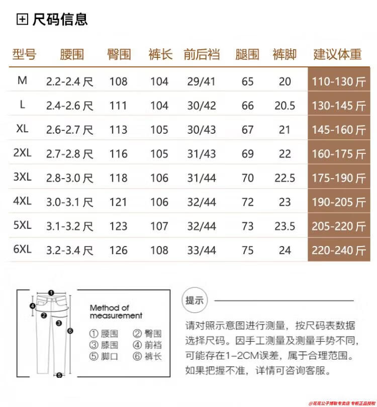 Outseam (cm) 99 cm 101.5 cm 104 cm 106.5 cm 109 cm