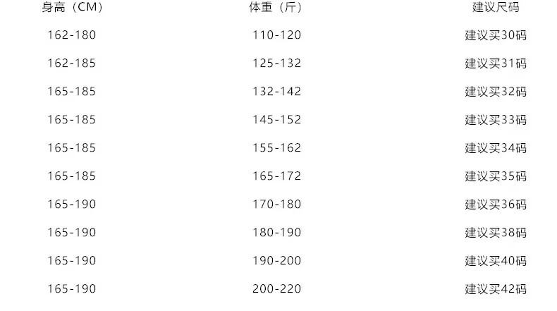 USA(inch) 28-30 30-32 32-34 34-38 38-42