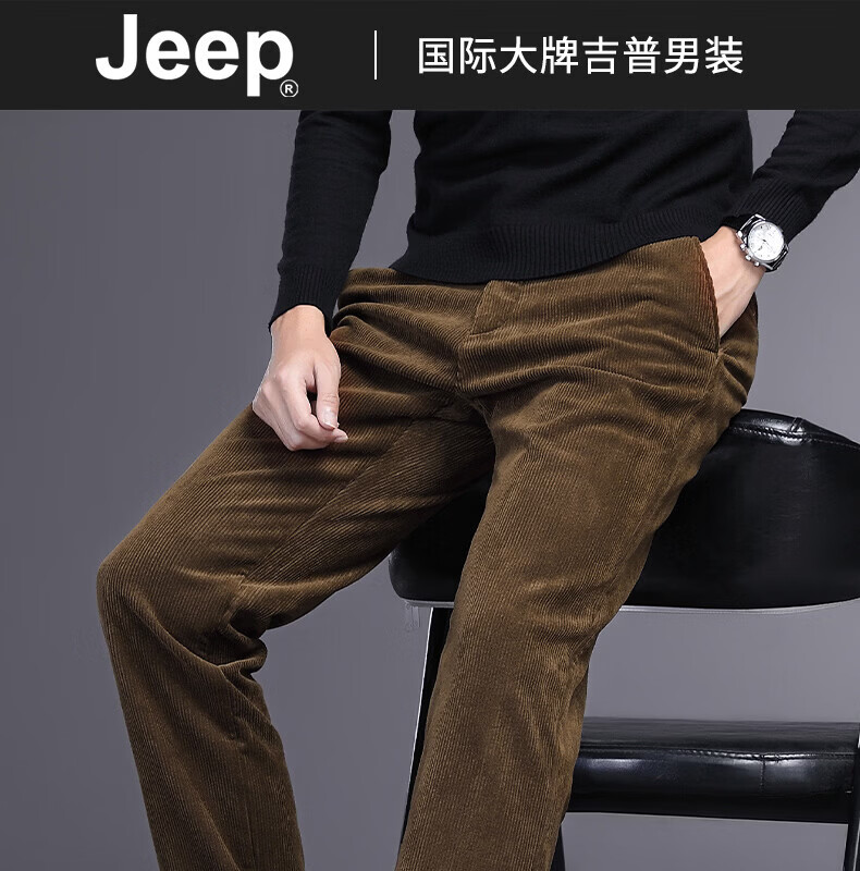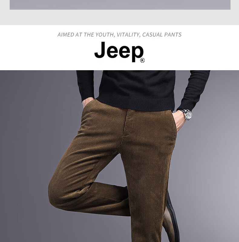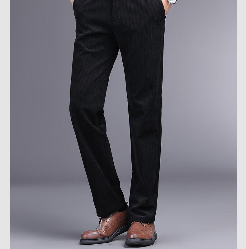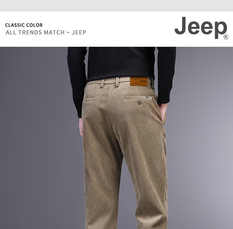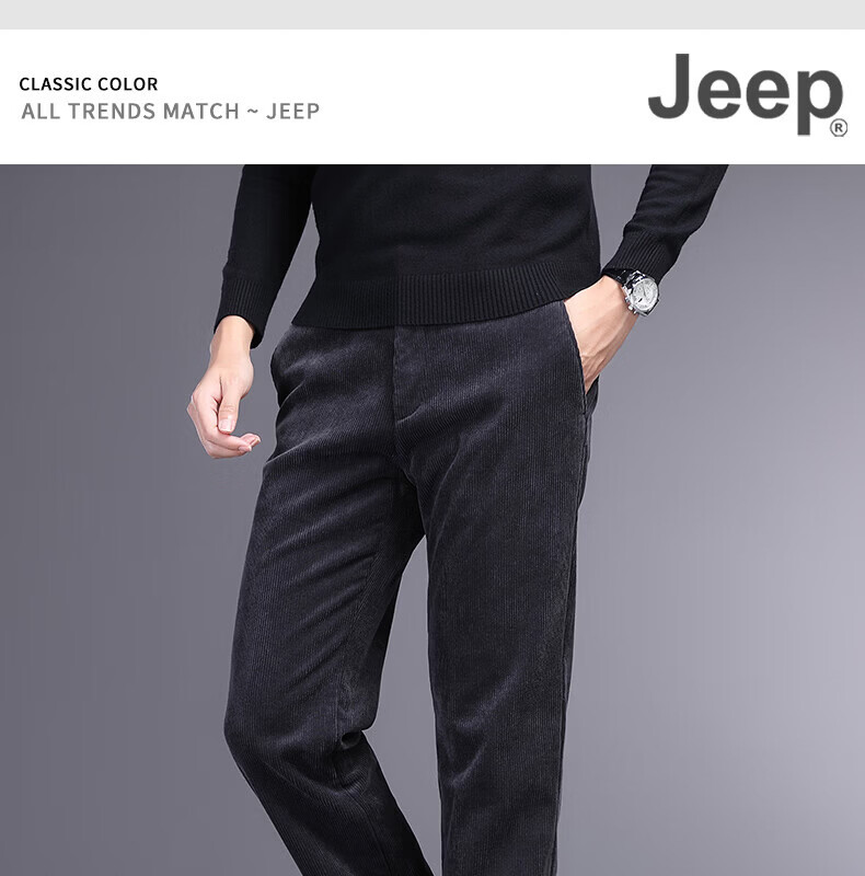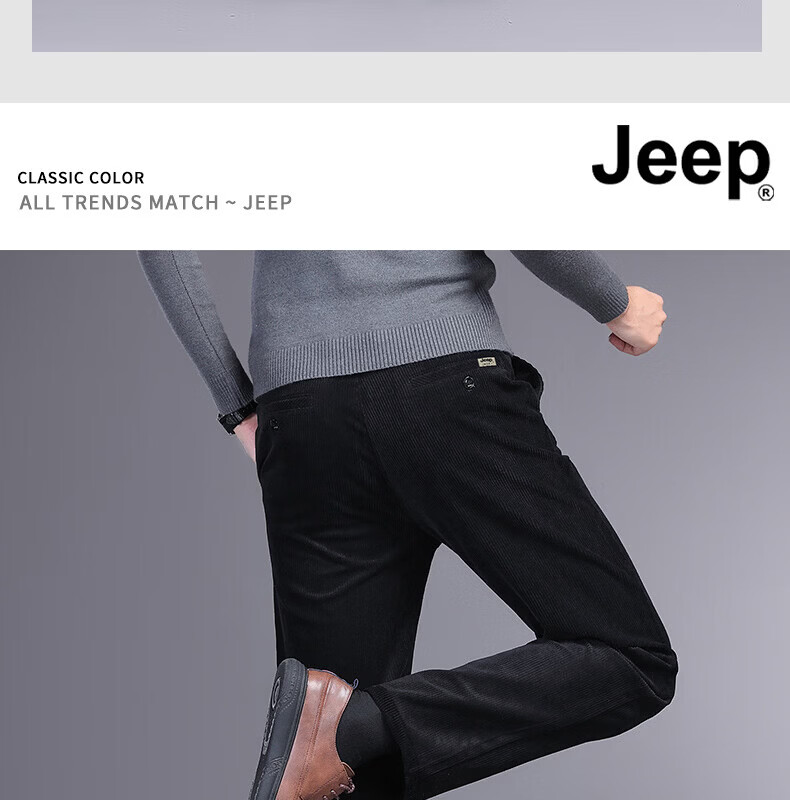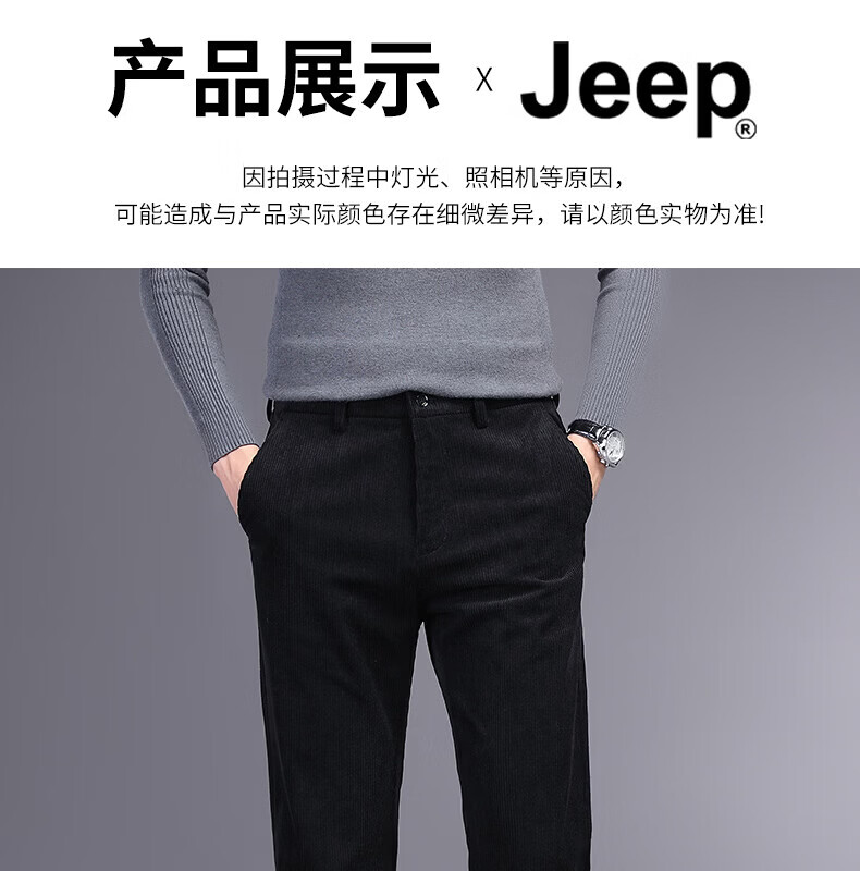 JEEP Pantalones casuales de pana genuinos americanos de alta gama, pantalones de negocios sueltos, rectos y sin hierro para hombres de otoño e invierno, mostrador regular negro, mismo estilo 31