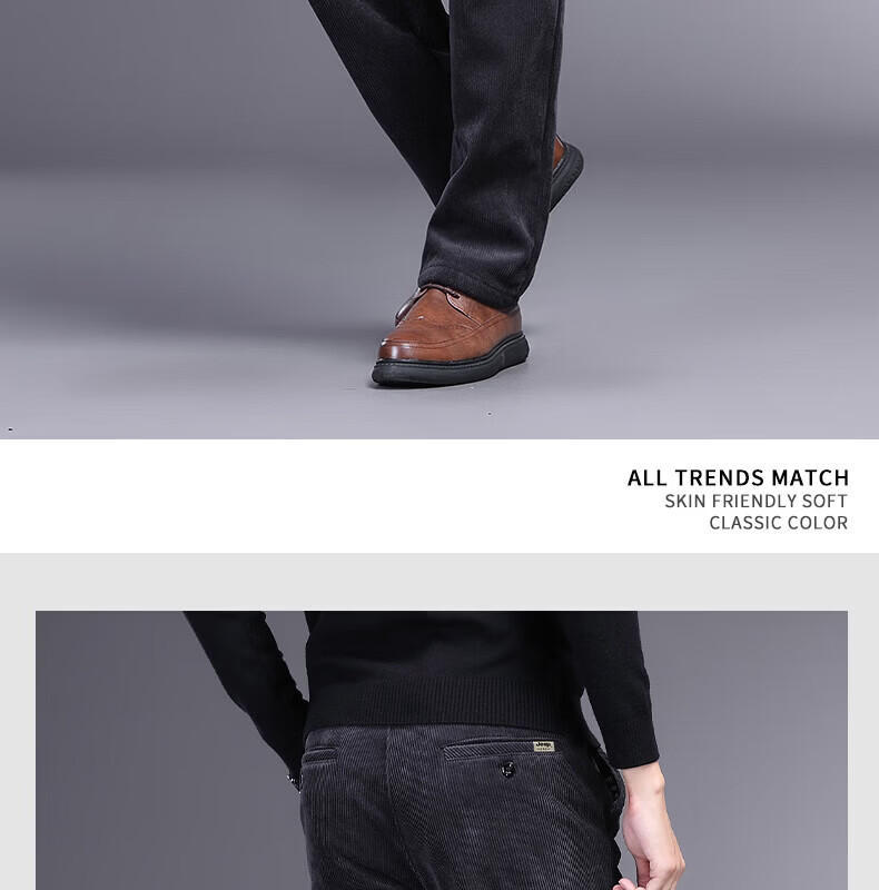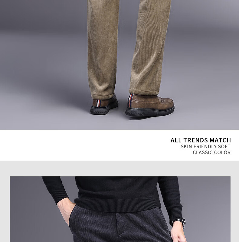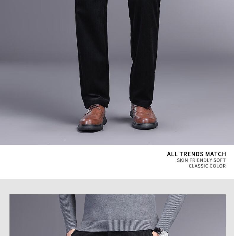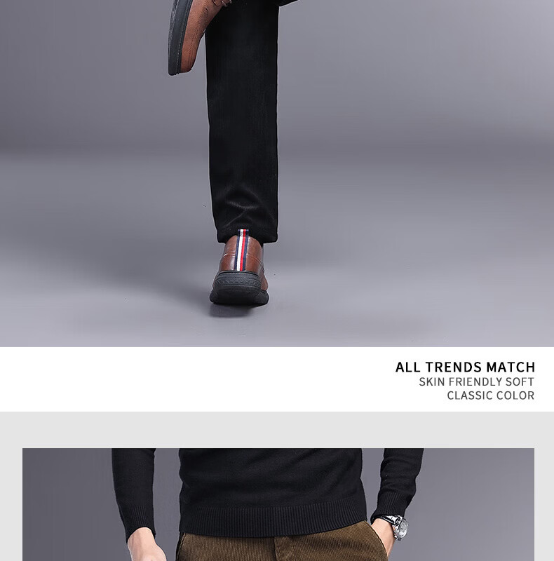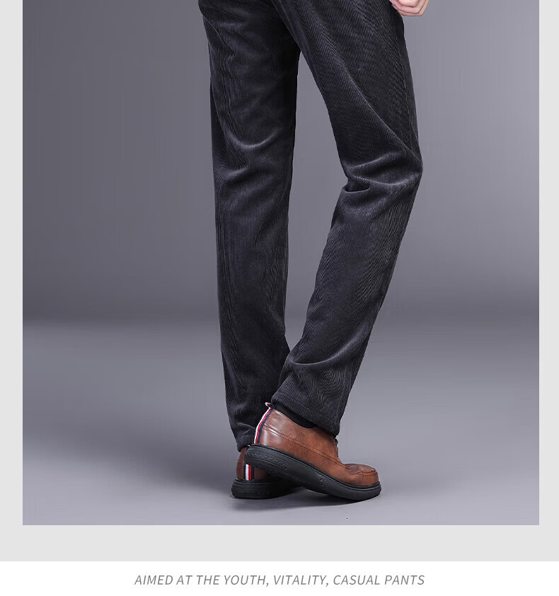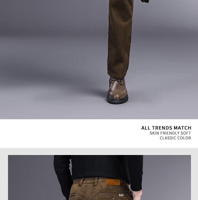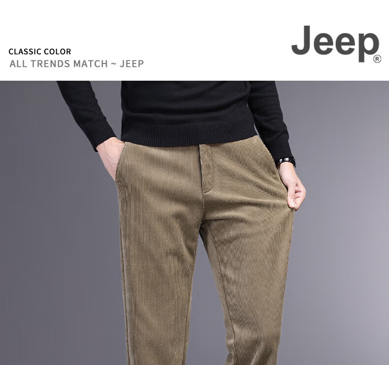 JEEP Pantalones casuales de pana genuinos americanos de alta gama, pantalones de negocios sueltos, rectos y sin hierro para hombres de otoño e invierno, mostrador regular negro, mismo estilo 31