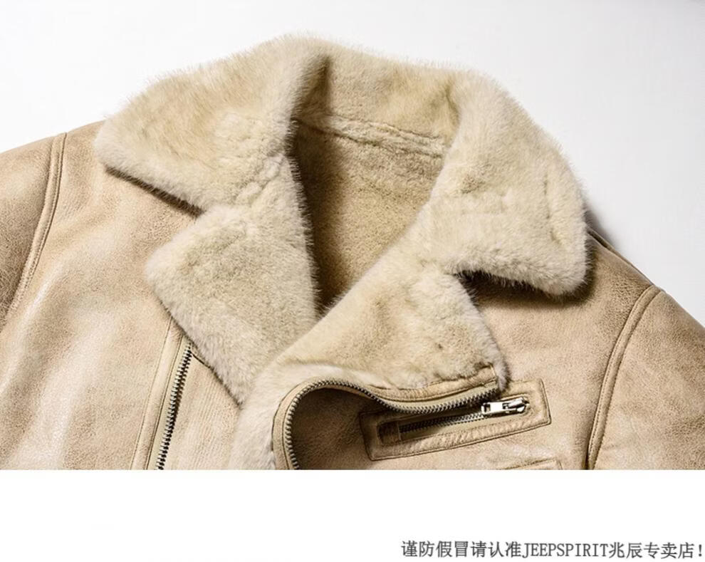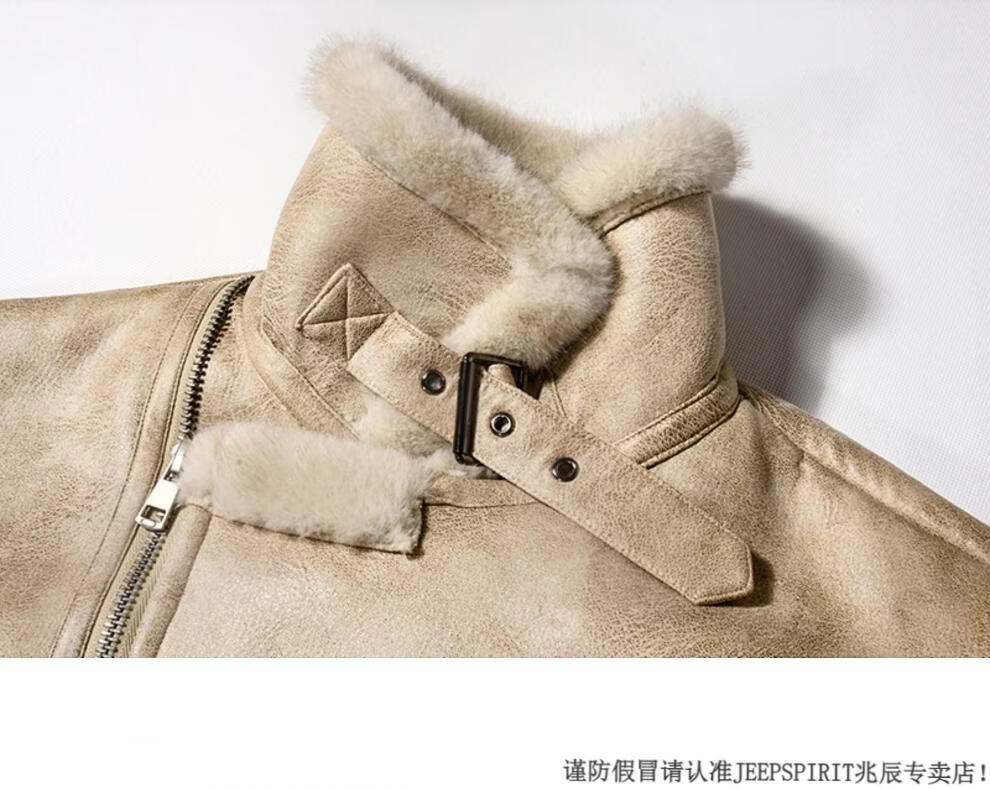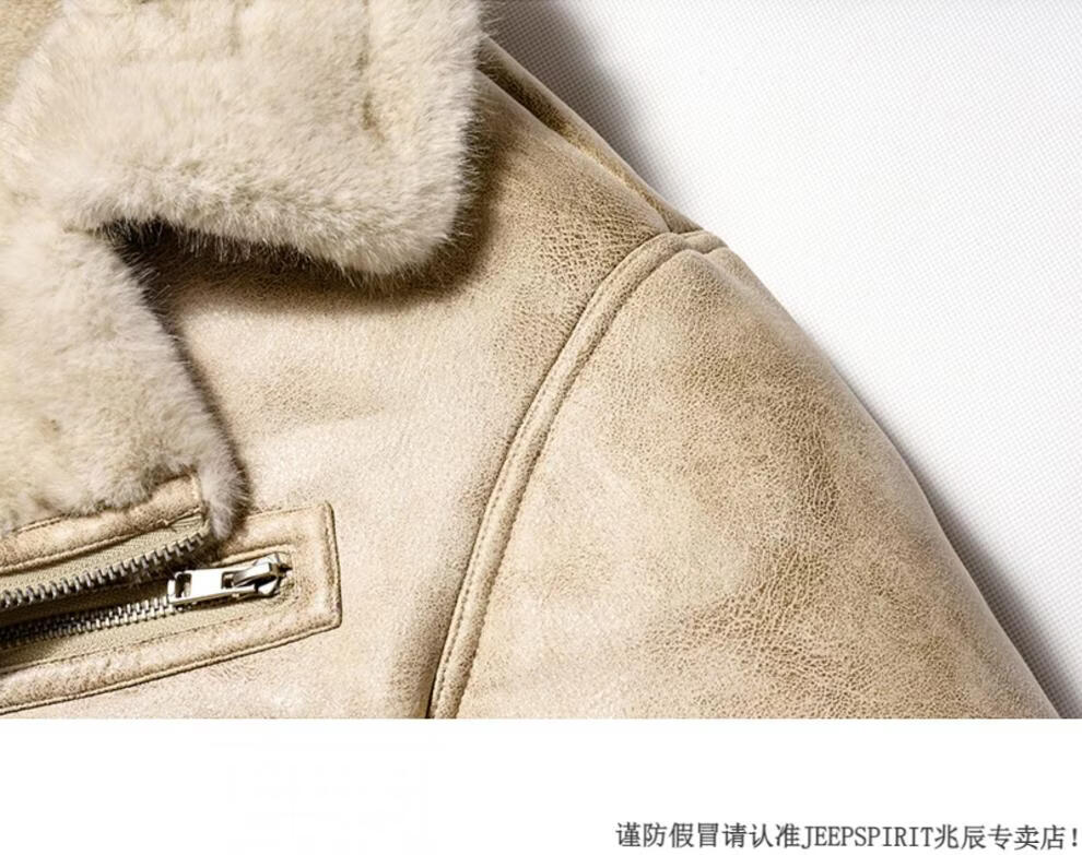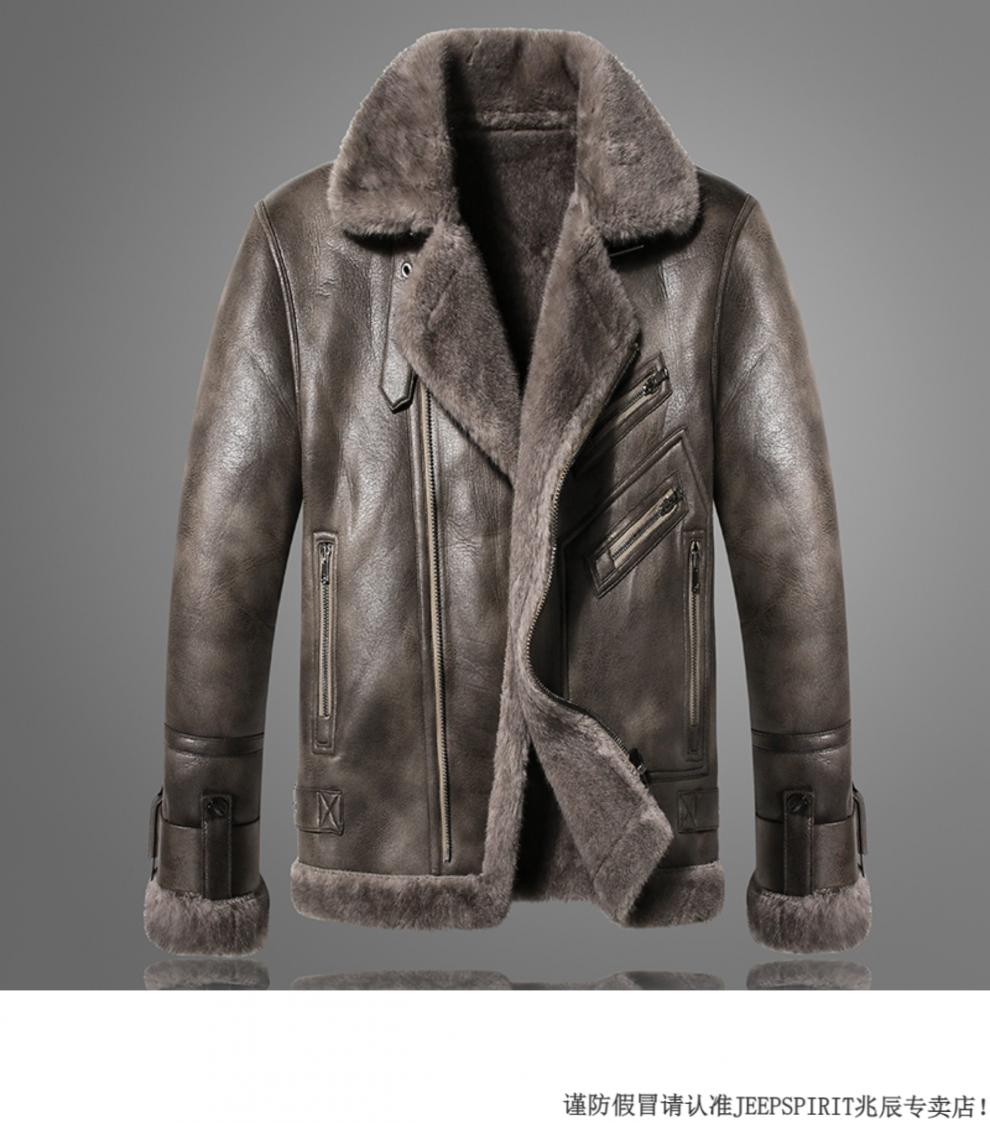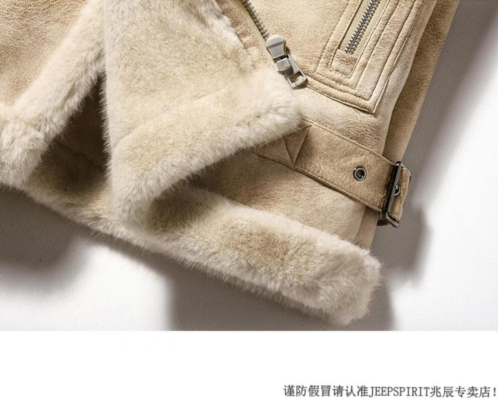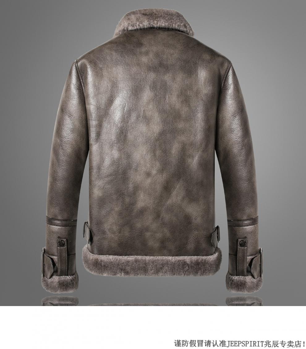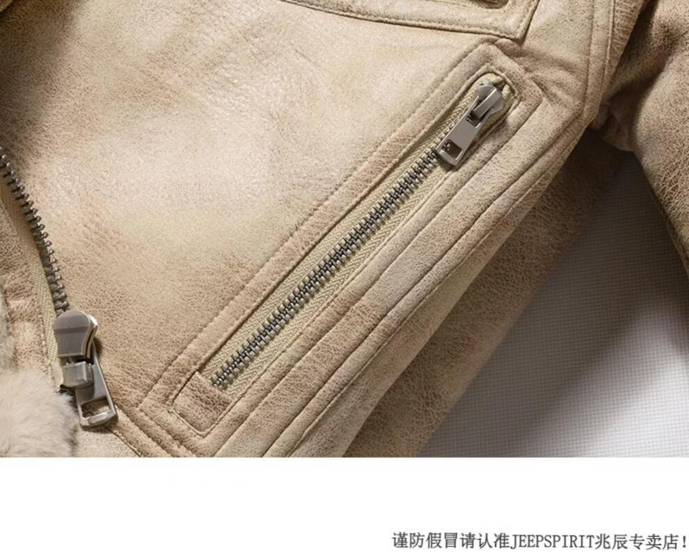 JEEP SPIRIT Estación europea de piel todo en uno para hombre invierno nueva chaqueta de moto de cuero engrosado de terciopelo chaqueta de lana de cordero gris 2XL