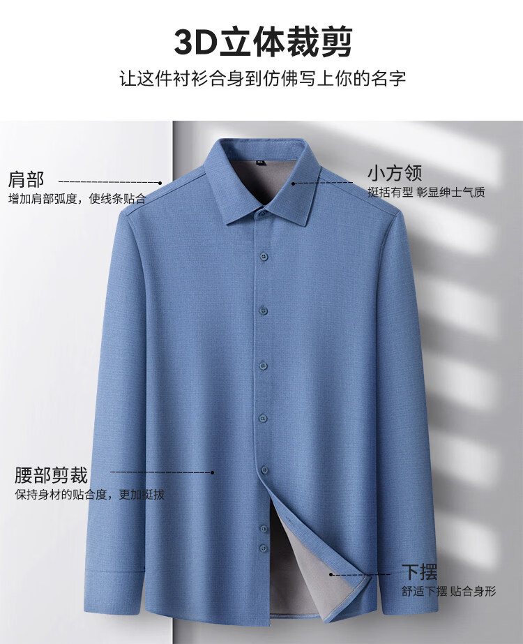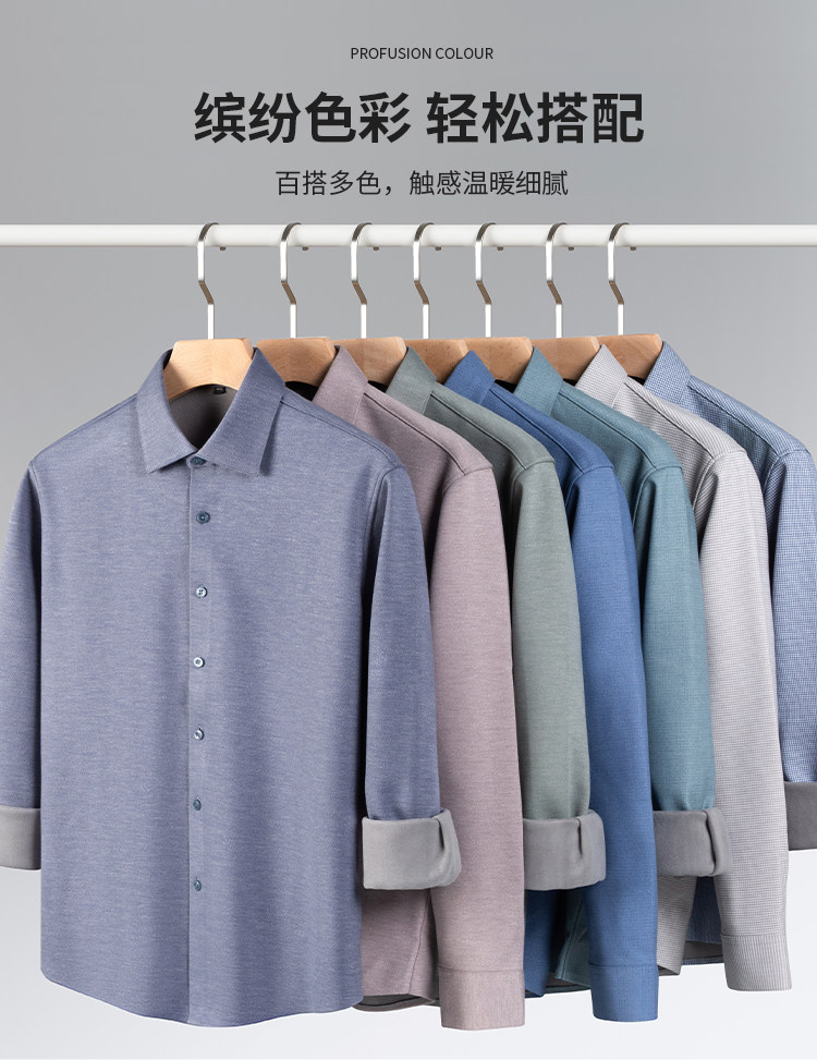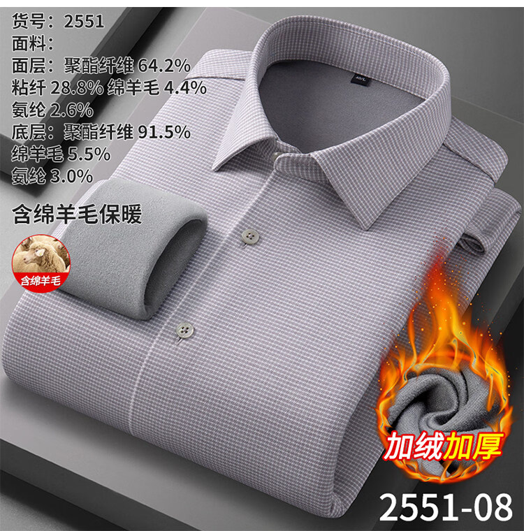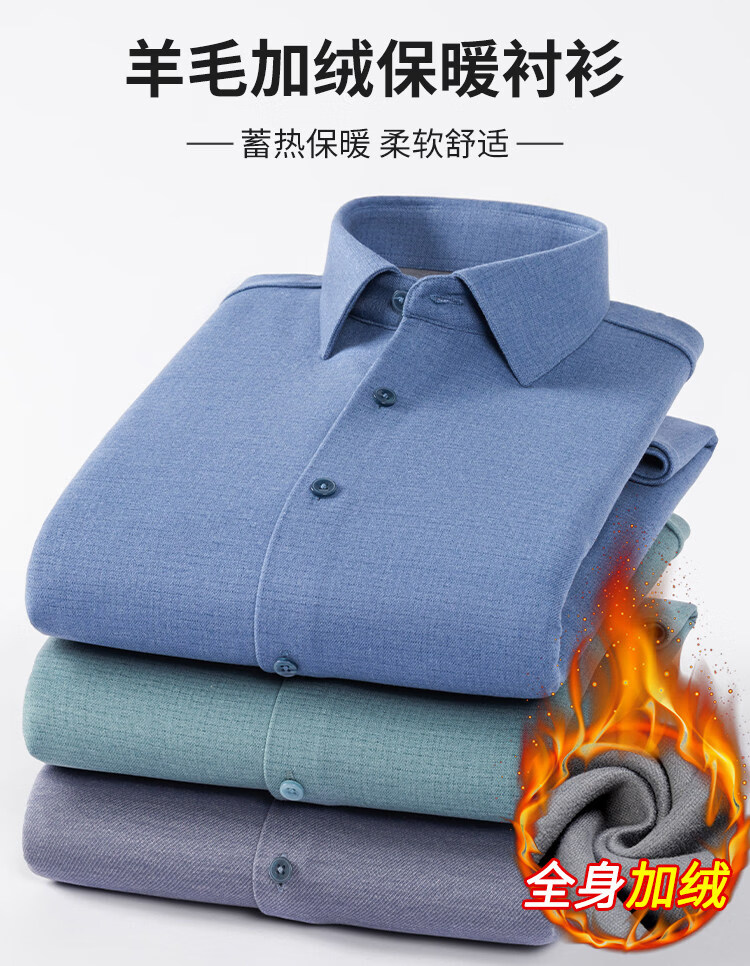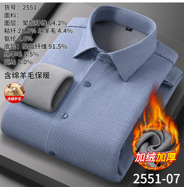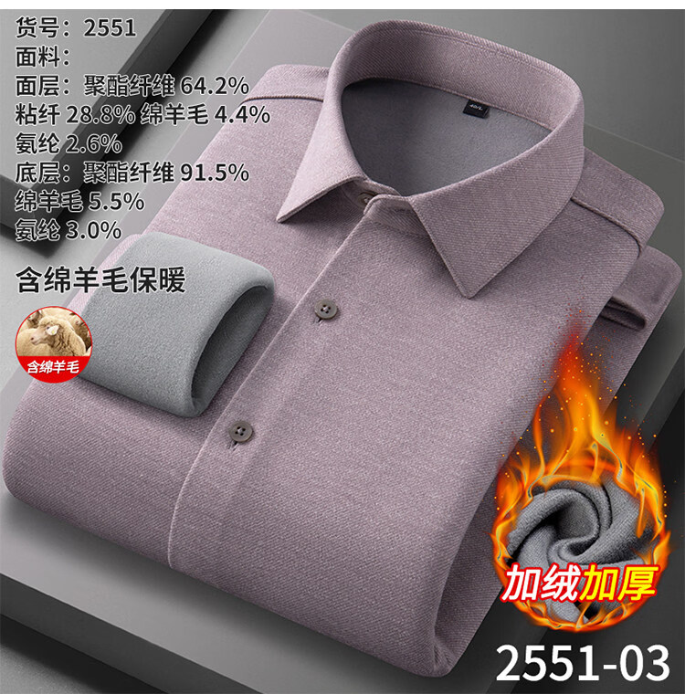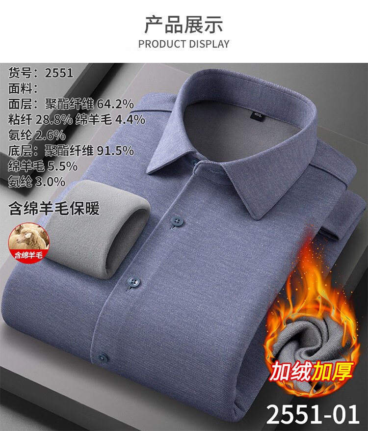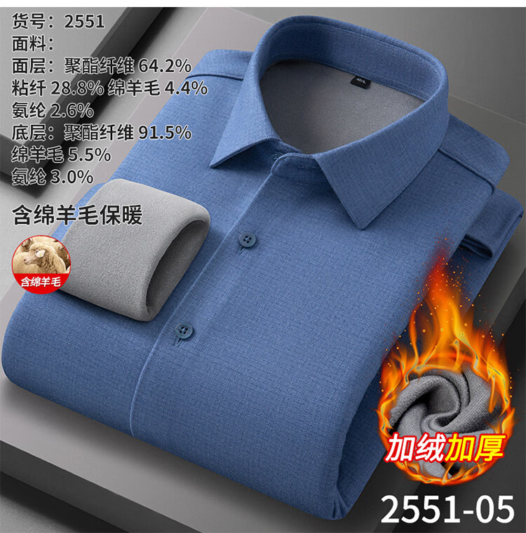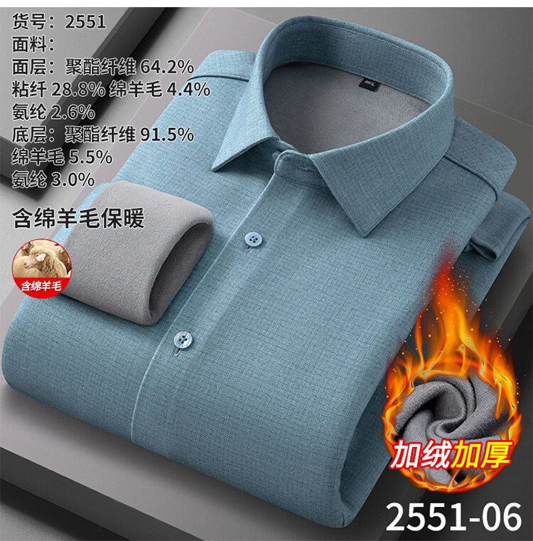 ROMON camisa cepillada cálida de terciopelo para hombre camisa de lana lavable a máquina de manga larga de invierno engrosada sin planchar 2551-01 azul neblina 39