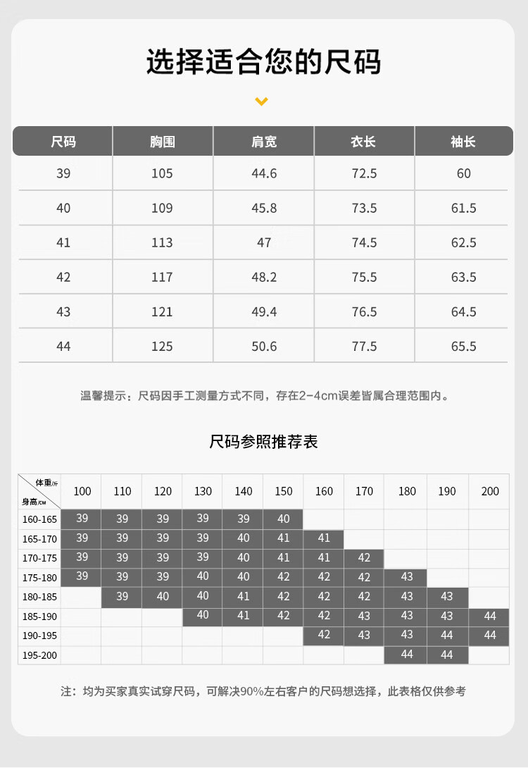 Size (cm) 42 44 46 48 50