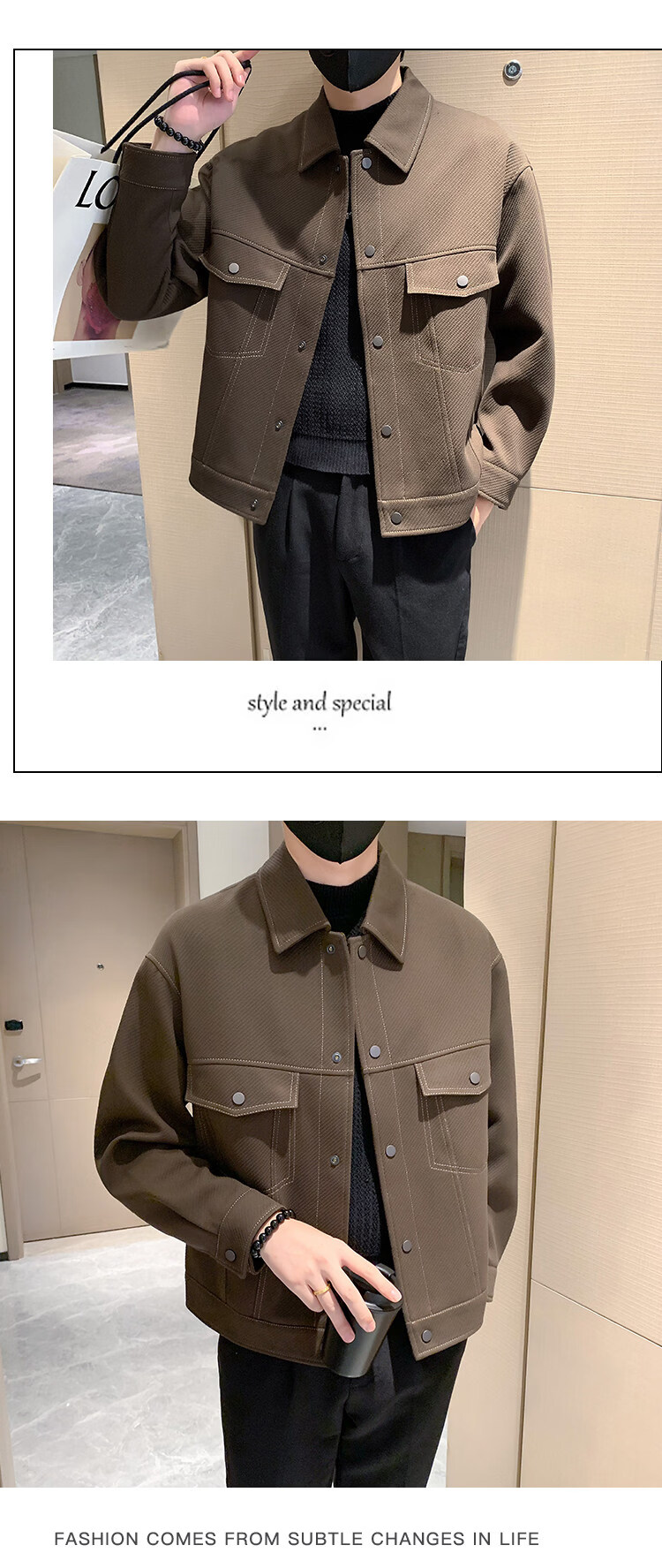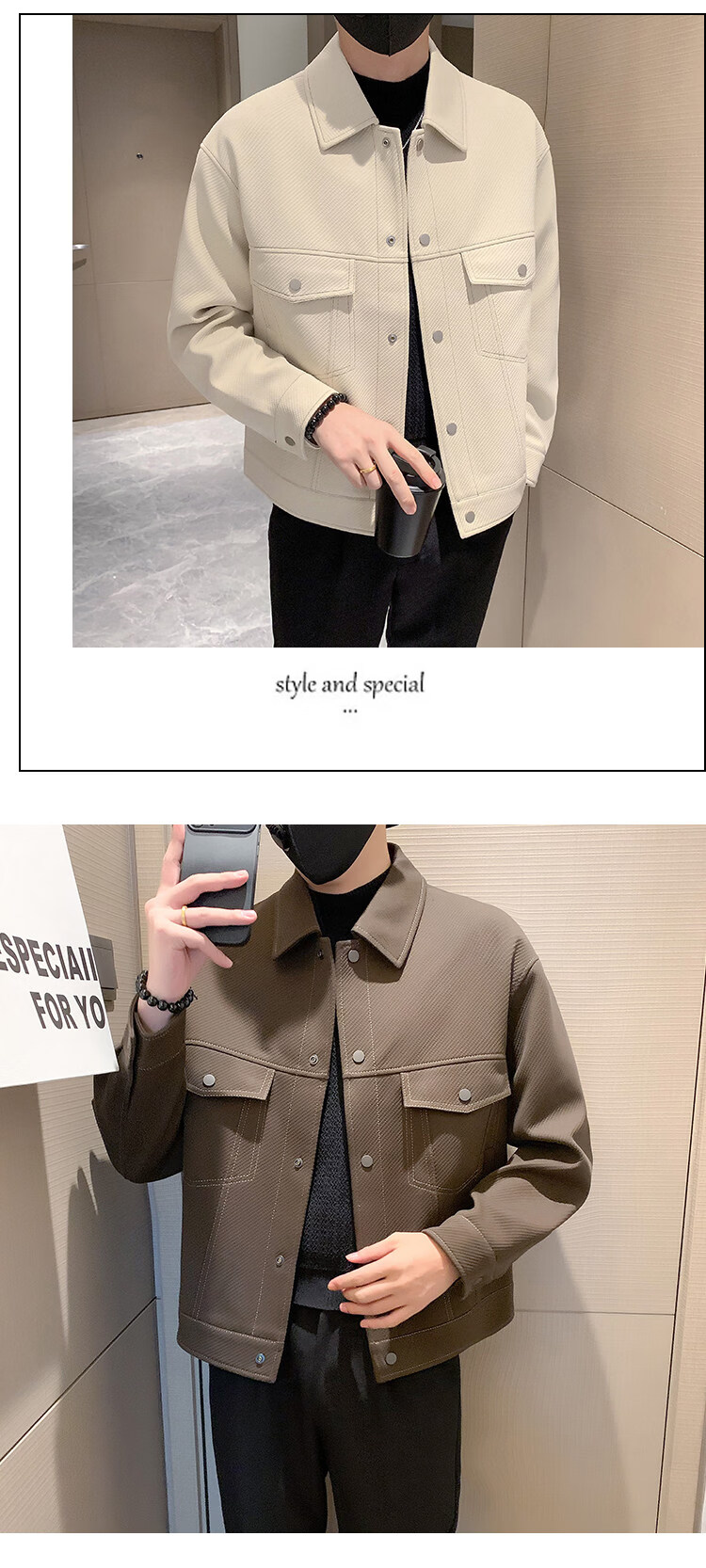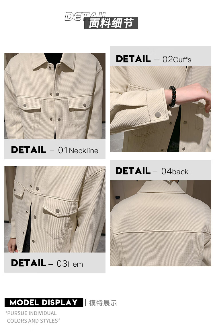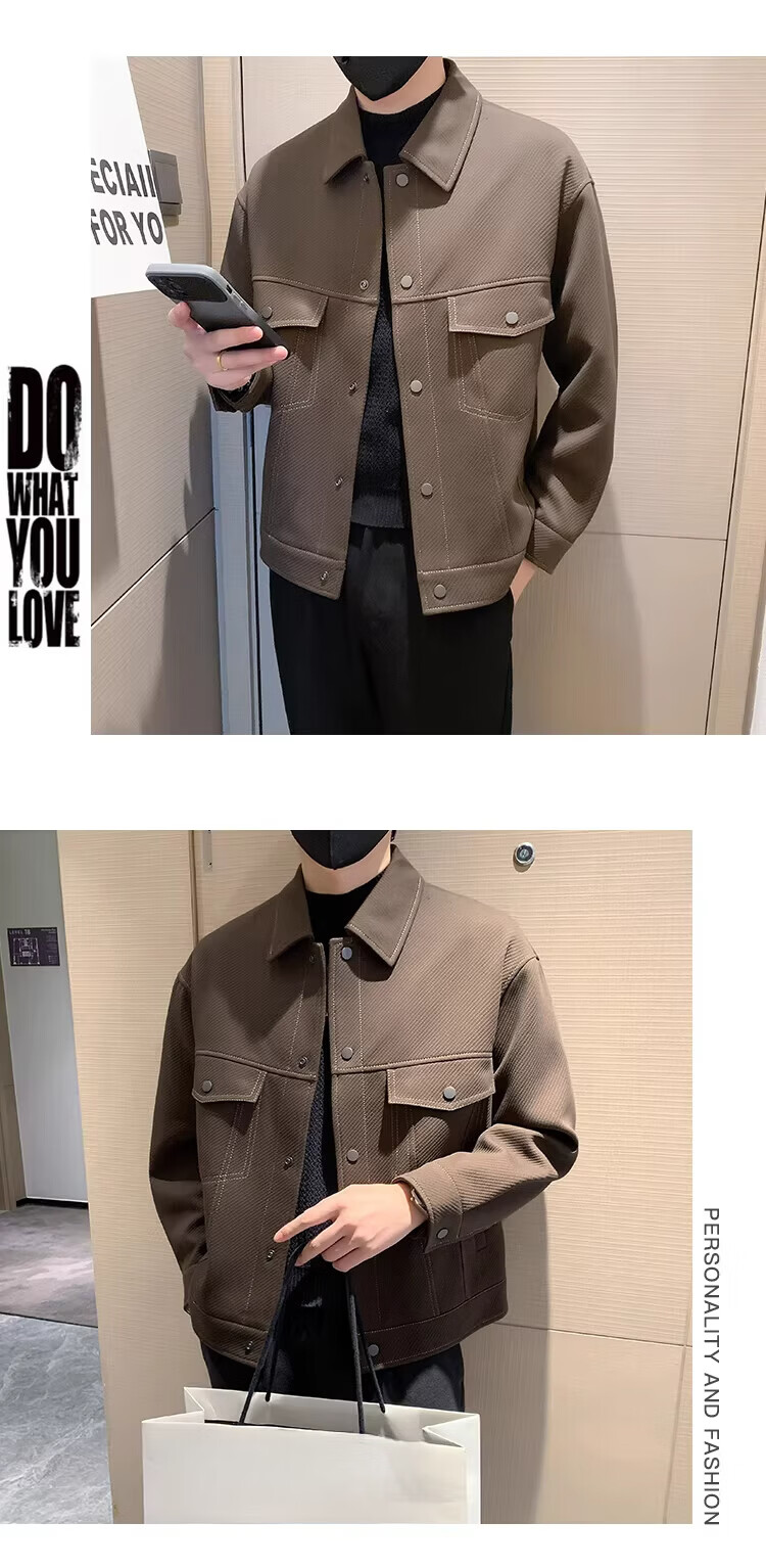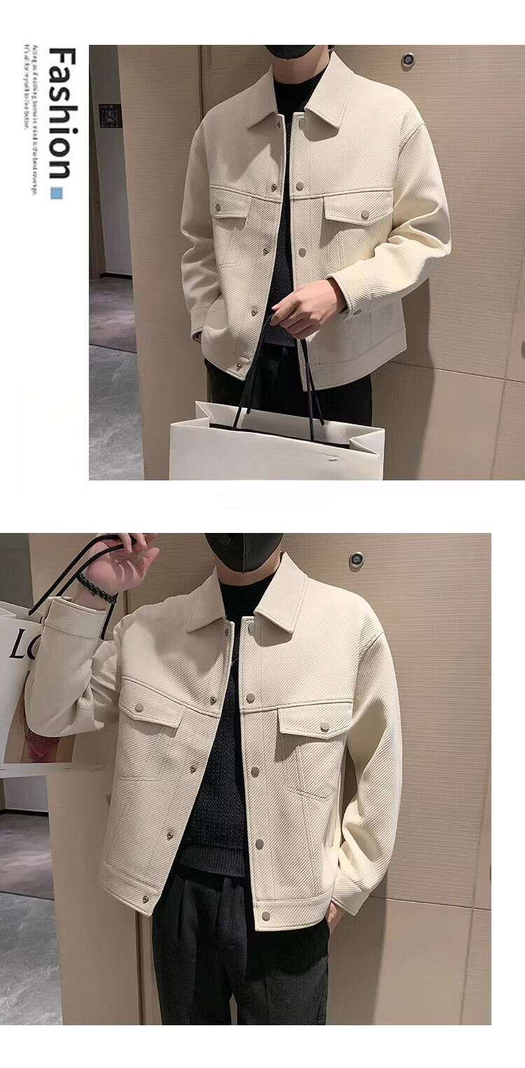 啄木鸟(TUCANO)男士夹克外套秋冬季加棉加厚休闲廓形潮流斜纹明线短款翻领工装 杏色 常规 2XL (160-170斤)