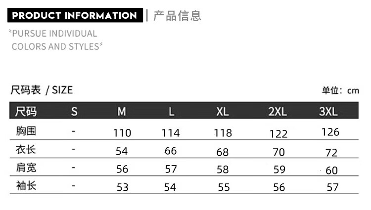 China (cm) 165 / 88-90 170 / 96-98 175 / 108-110 180 / 118-122 185 / 126-130
