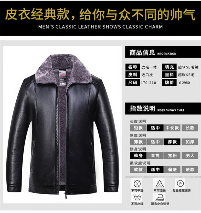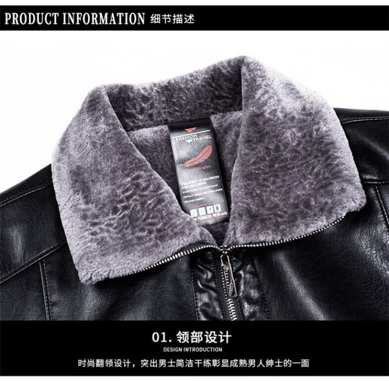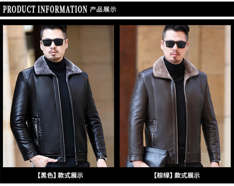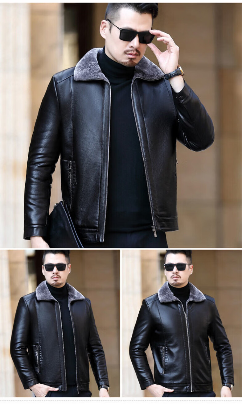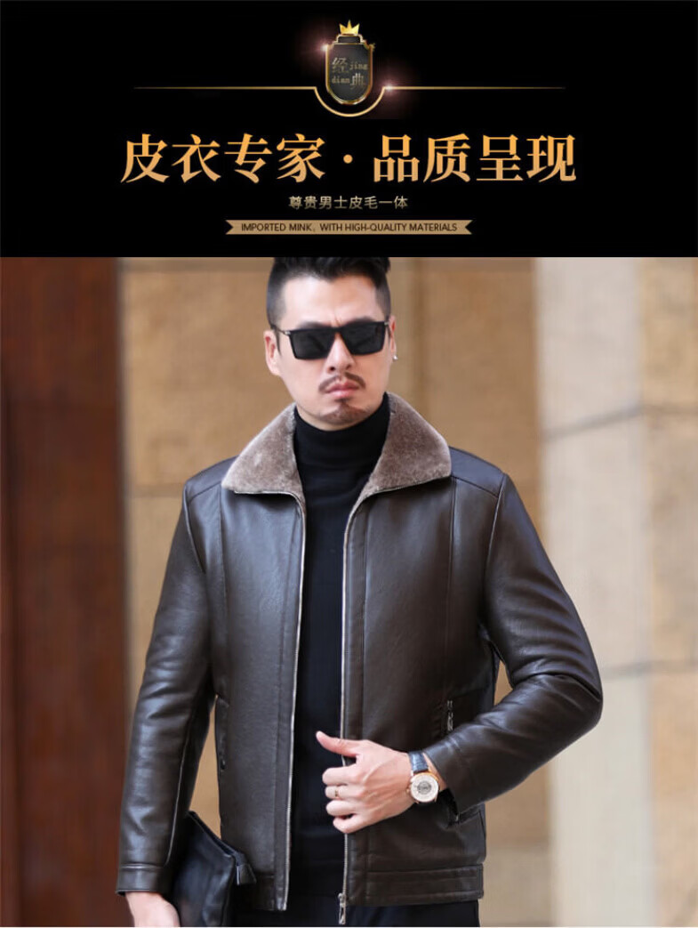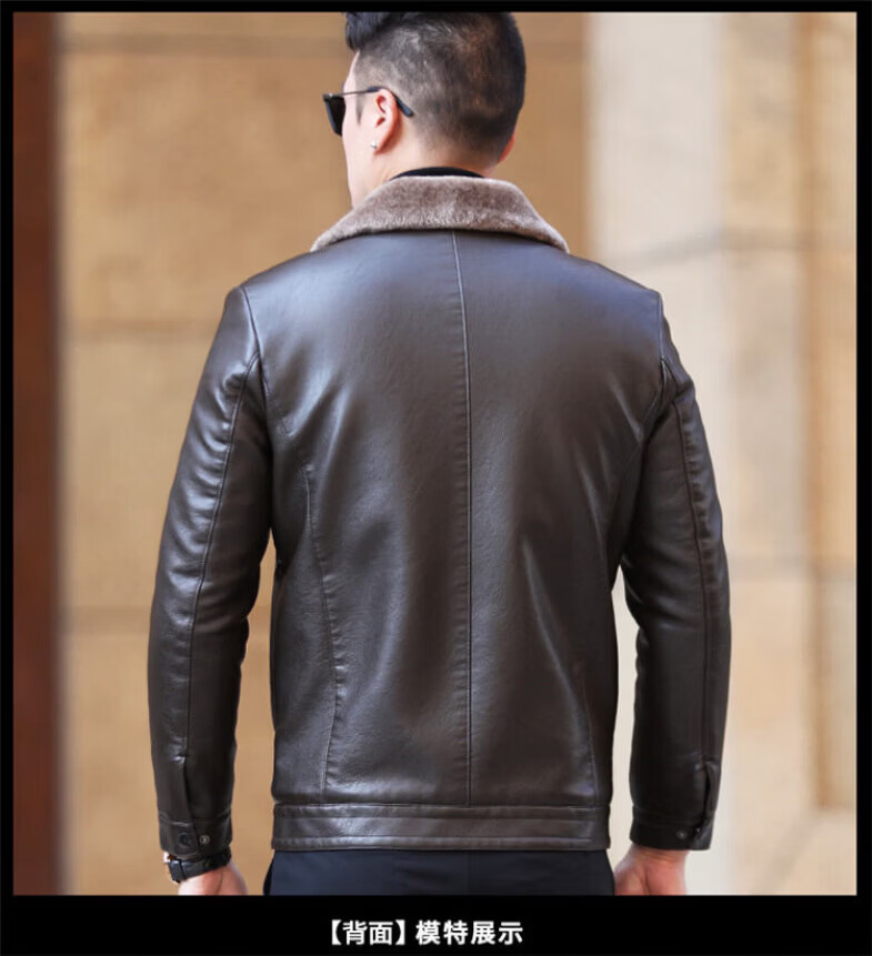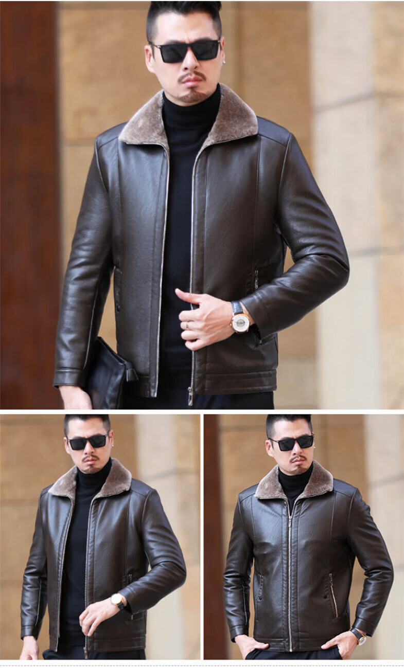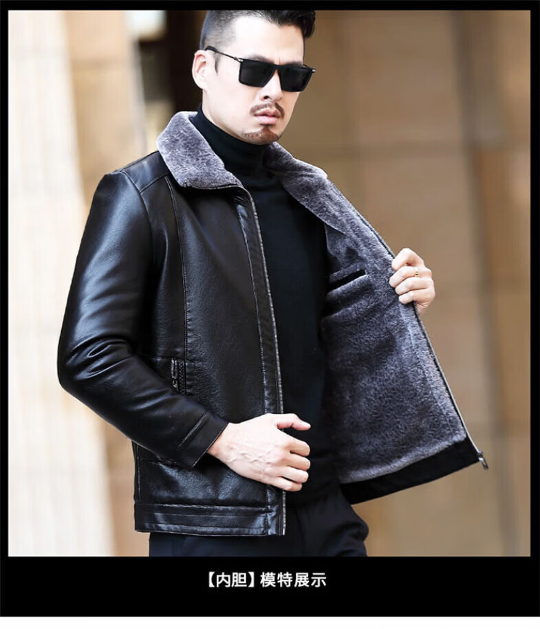 JEEP SPIRIT皮衣新款2025男士冬翻领加绒皮夹克百搭外套皮毛一体 绿色 M 170/84A