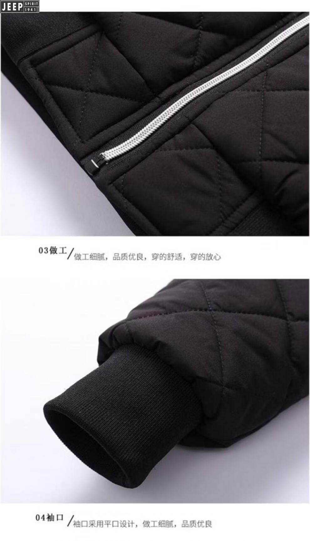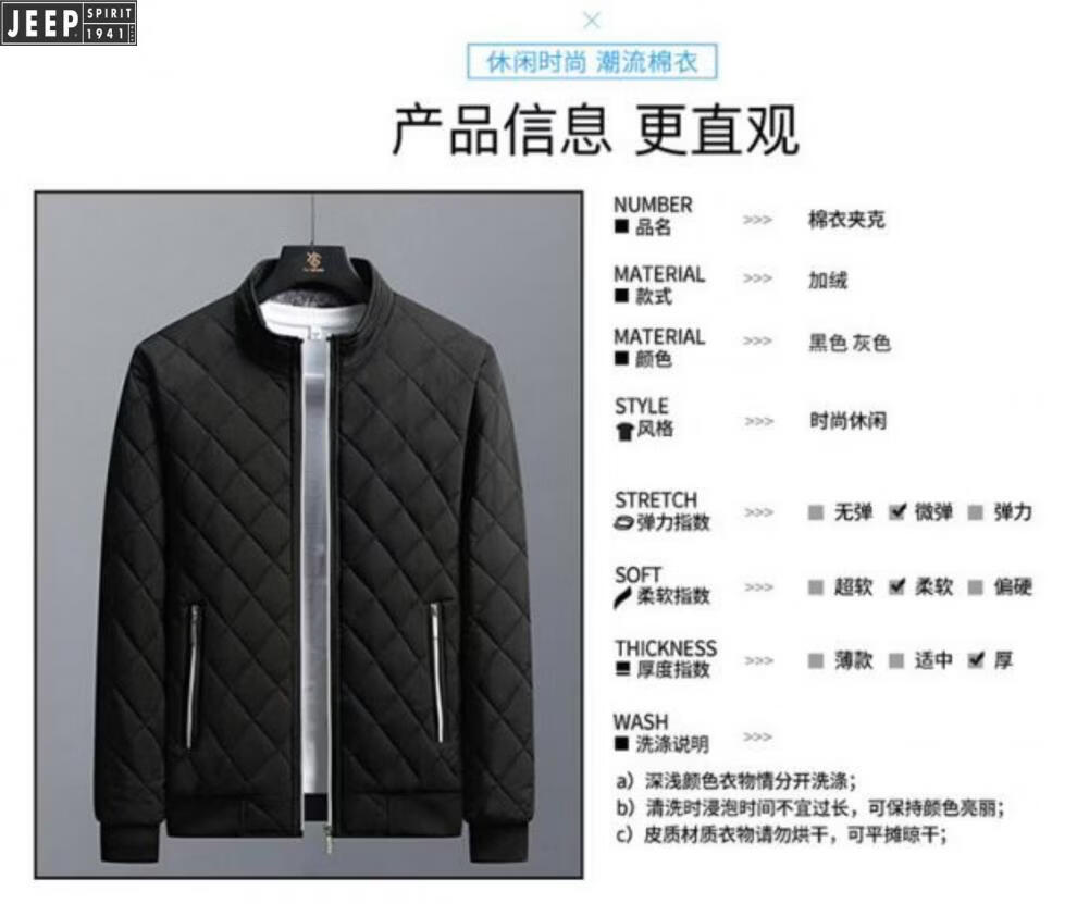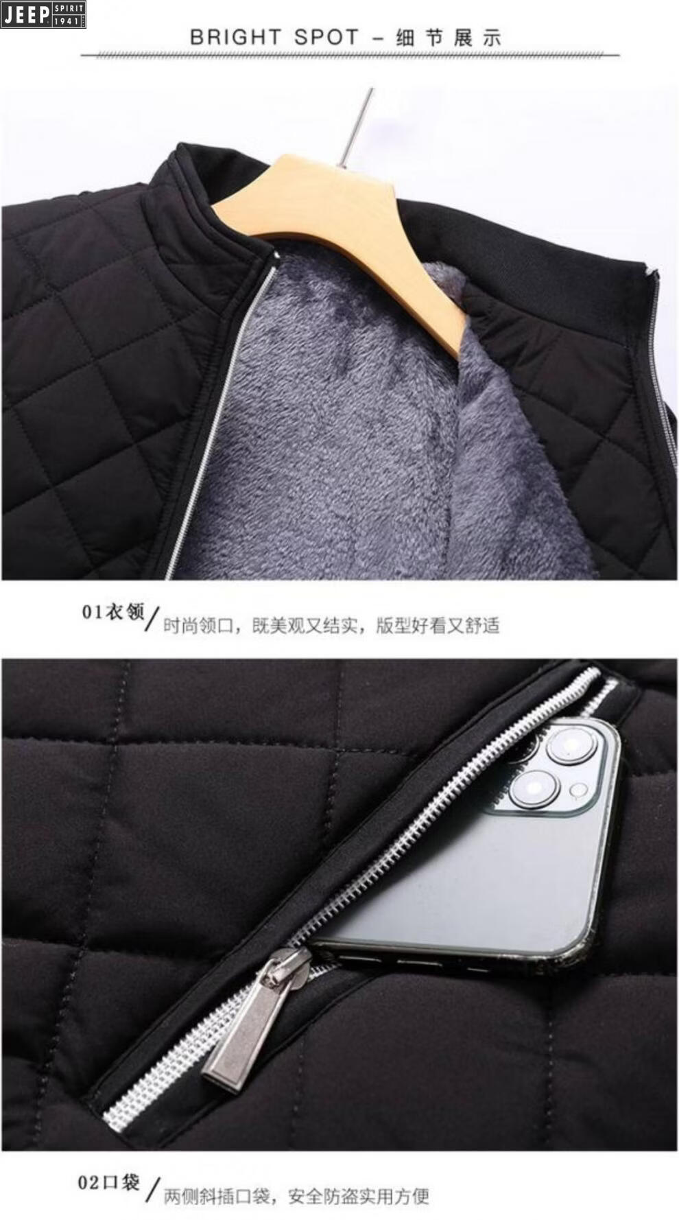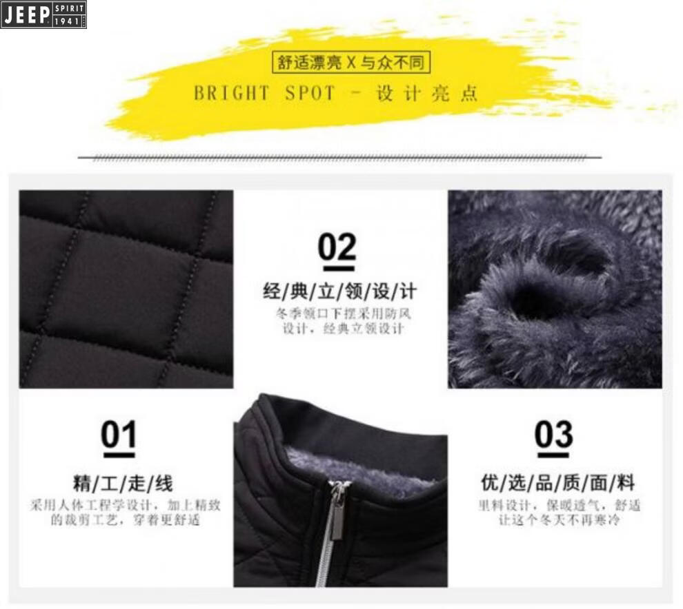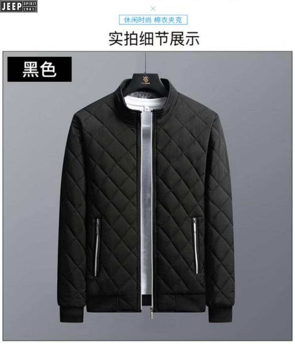 JEEP Jeep cotton thickened jacket men's winter new velvet jacket men's stand-up collar warm windproof casual top black 2188 stand-up collar 2XL 140Jin Jin equal to less than 0.5 kg