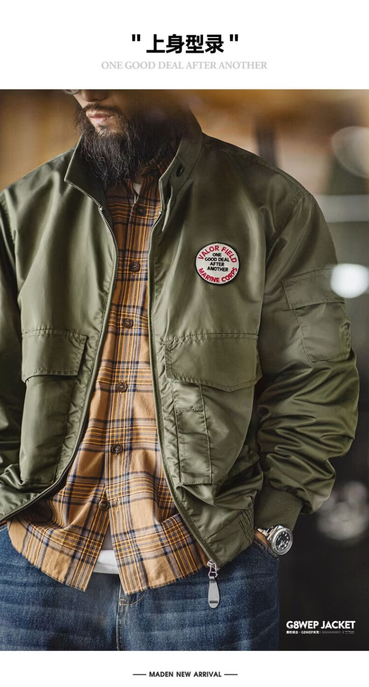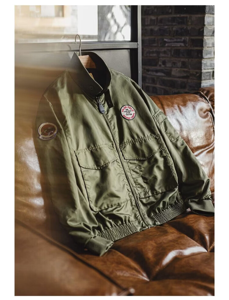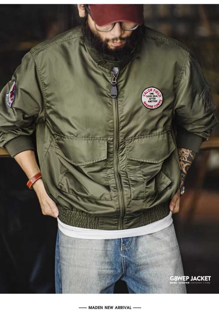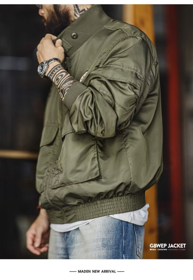 Madden Workwear American G8WEP Black Panther Assault Jacket Nylon Short Stand Collar Simple Thin Casual Jacket Men's Spring Military Green Bomber Jacket/Men's Jacket 2025 New/Top Men's Spring Autumn L