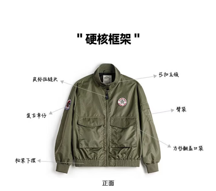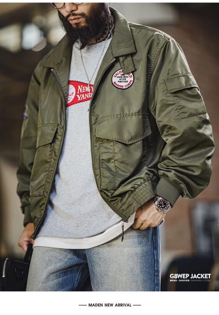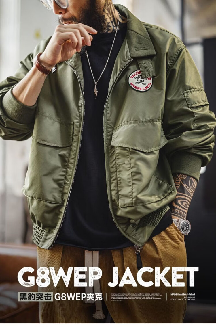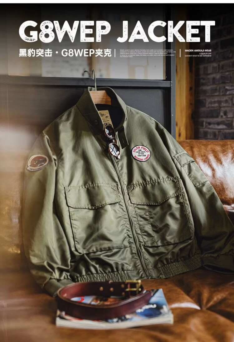 Madden Workwear American G8WEP Black Panther Assault Jacket Nylon Short Stand Collar Simple Thin Casual Jacket Men's Spring Military Green Bomber Jacket/Men's Jacket 2025 New/Top Men's Spring Autumn L