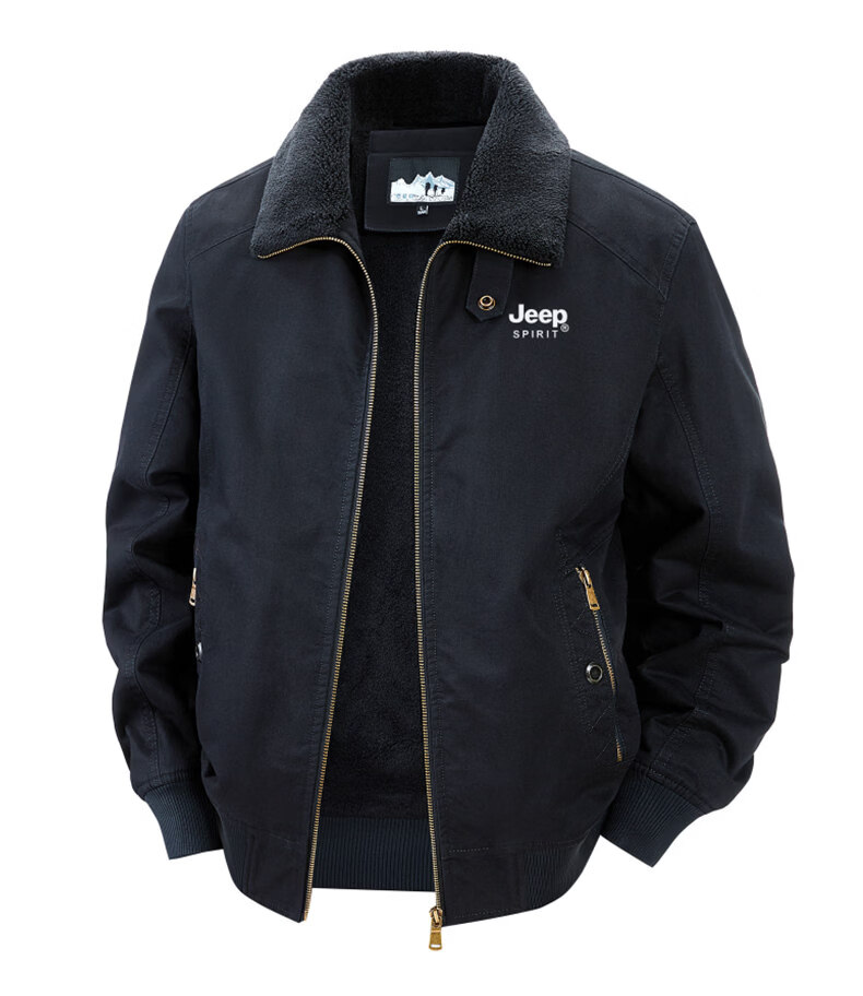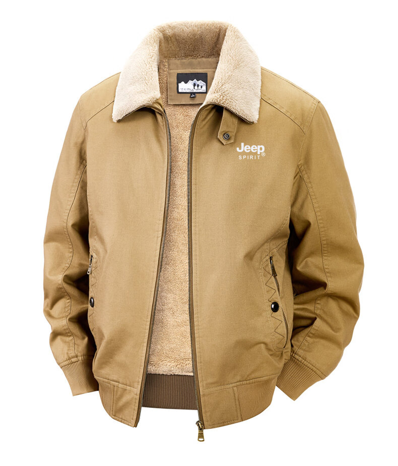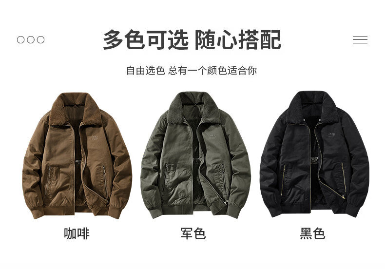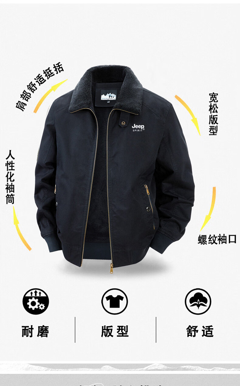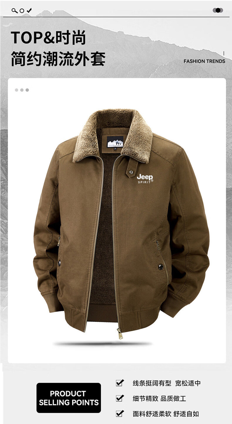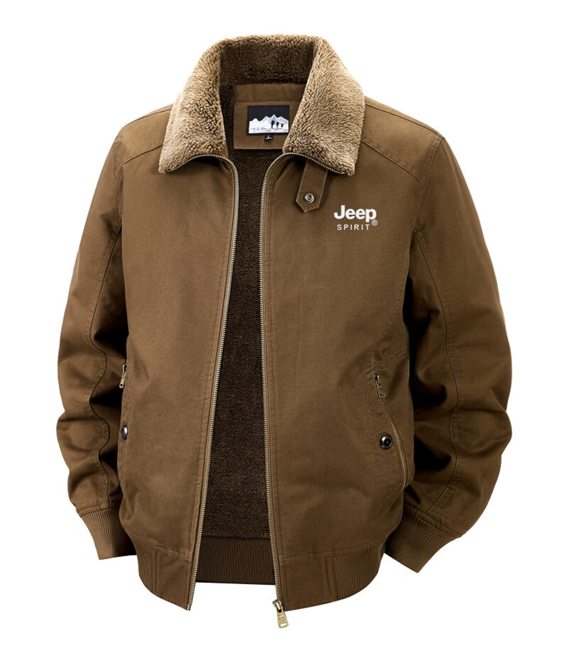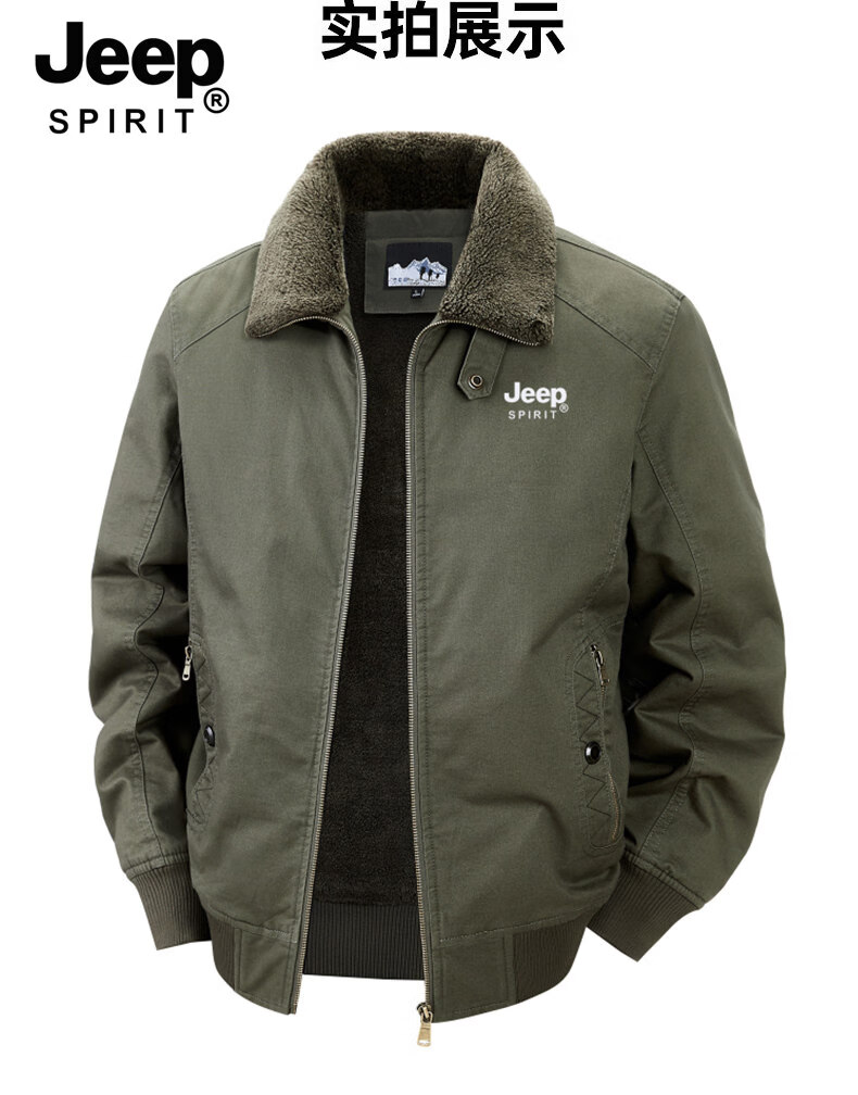 Chaqueta sherpa JEEP SPIRIT para hombre 2025, otoño e invierno, nueva chaqueta de trabajo de algodón cálida con múltiples bolsillos y terciopelo, cuello de piel desmontable de color militar 3XL (recomendado 165-180 Jin Jin equivale a 0,5 kg)