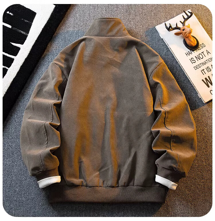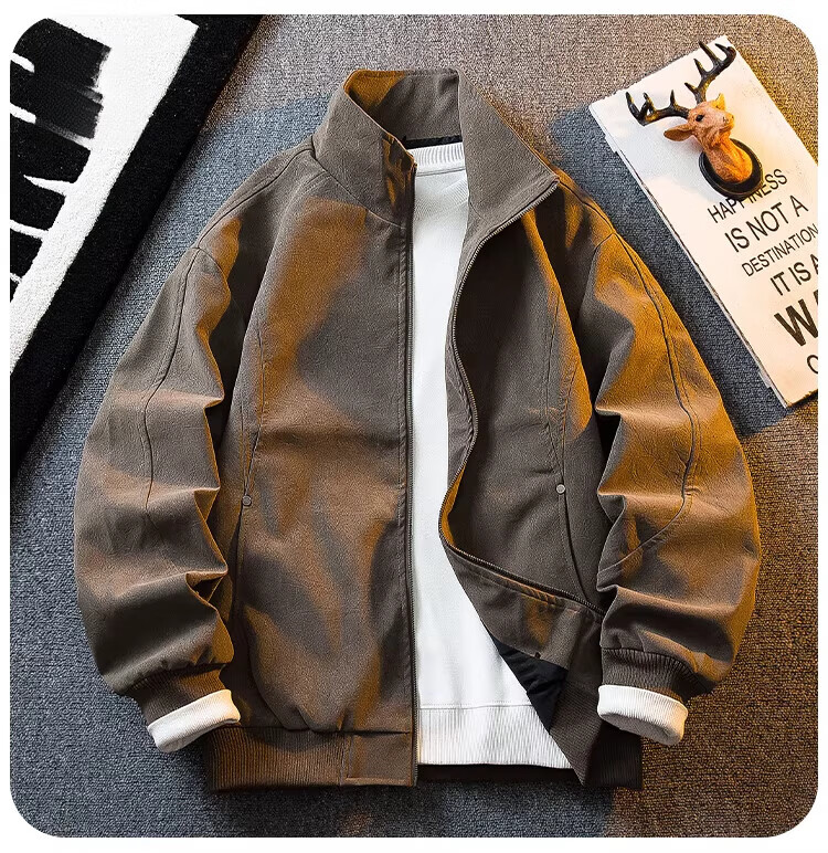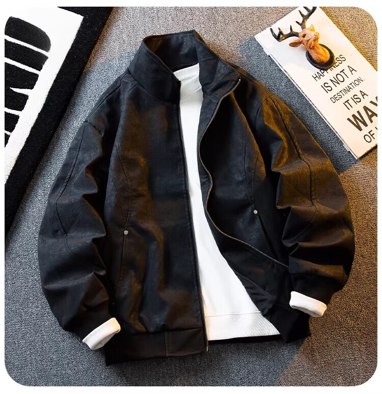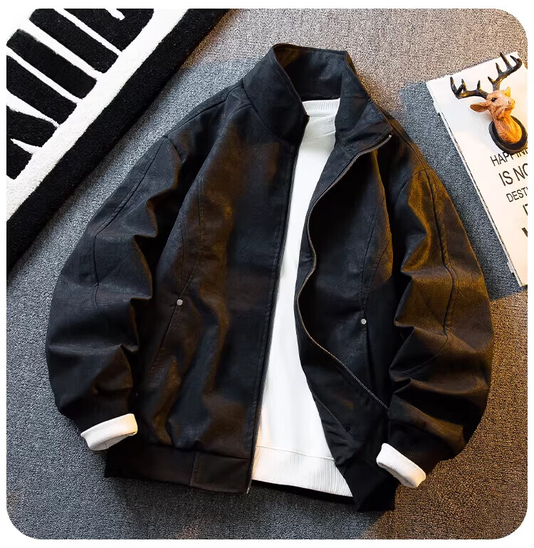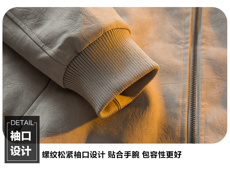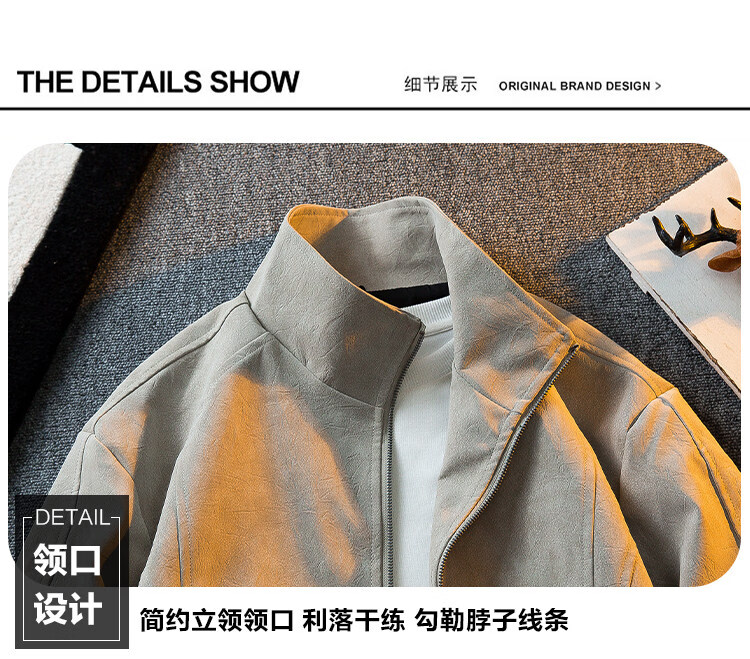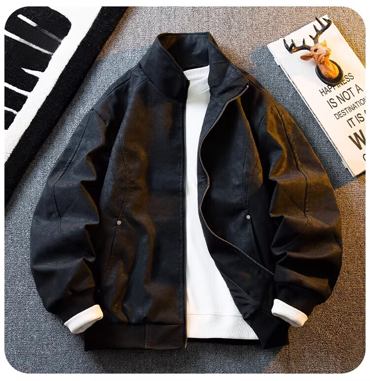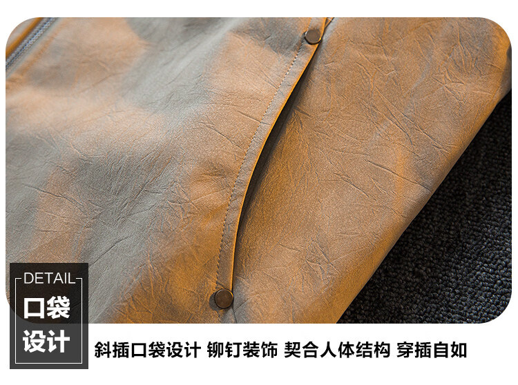 Playboy Retro Distressed Stehkragen Motorrad-Lederjacke Herren American Cleanfit Kurze Wildlederjacke Braun L (126-150 Jin Jin entspricht 0,5 kg)