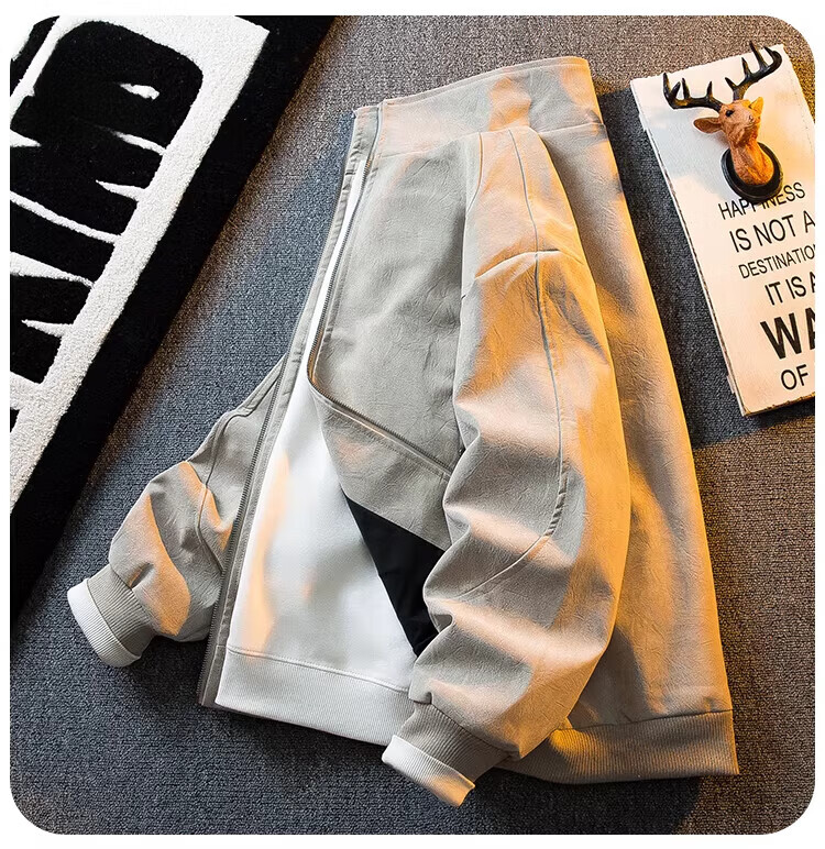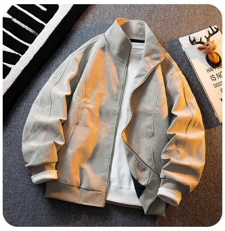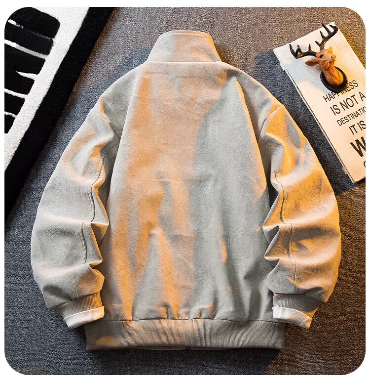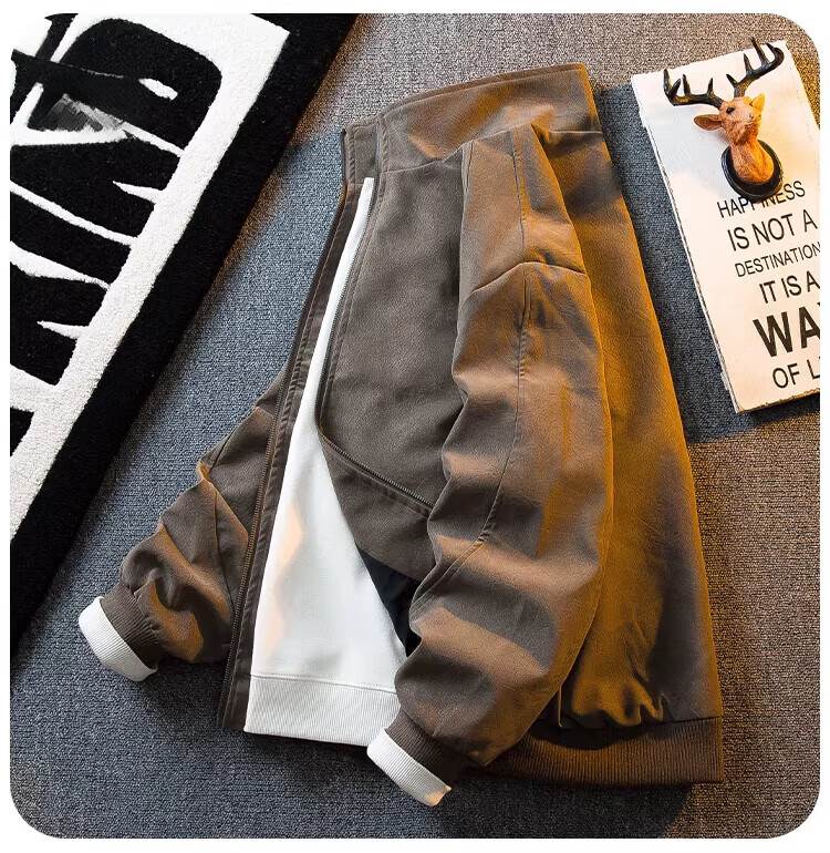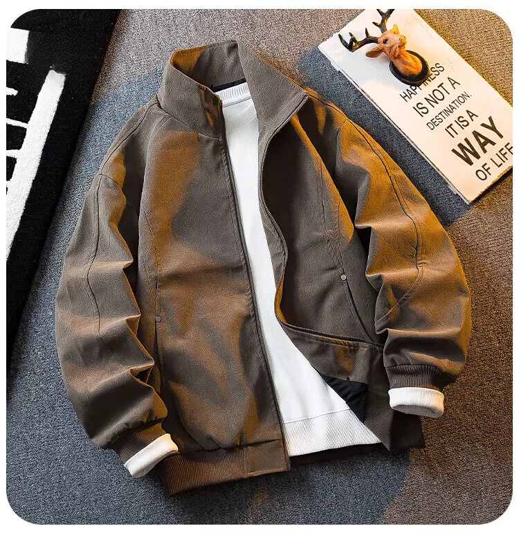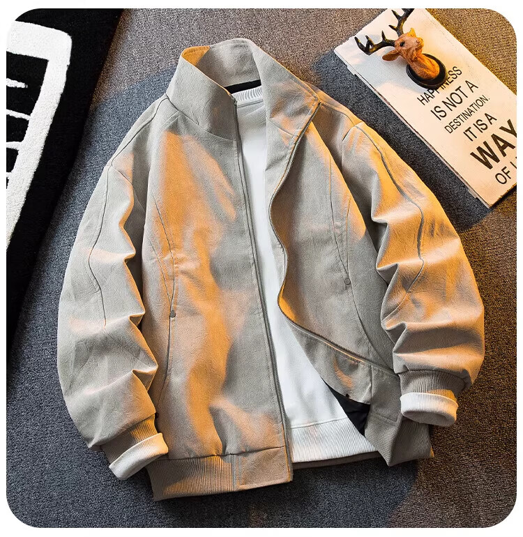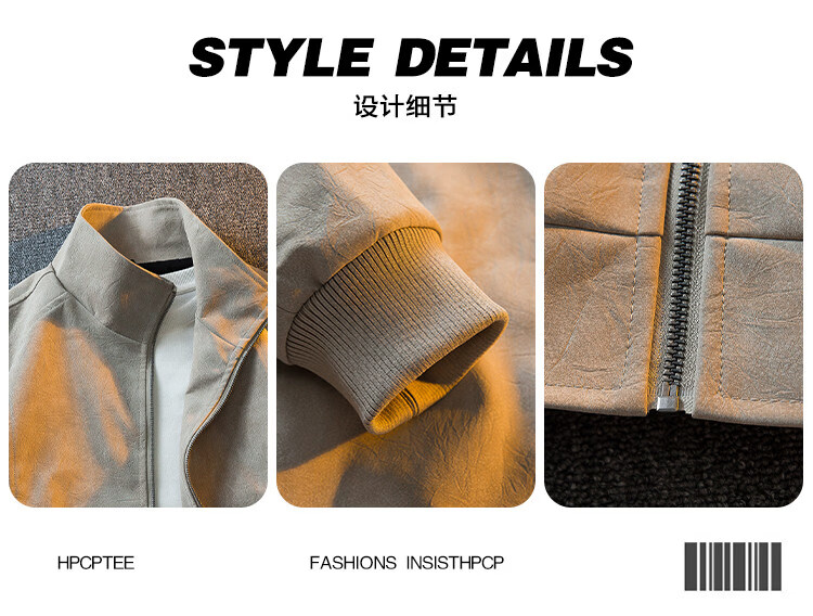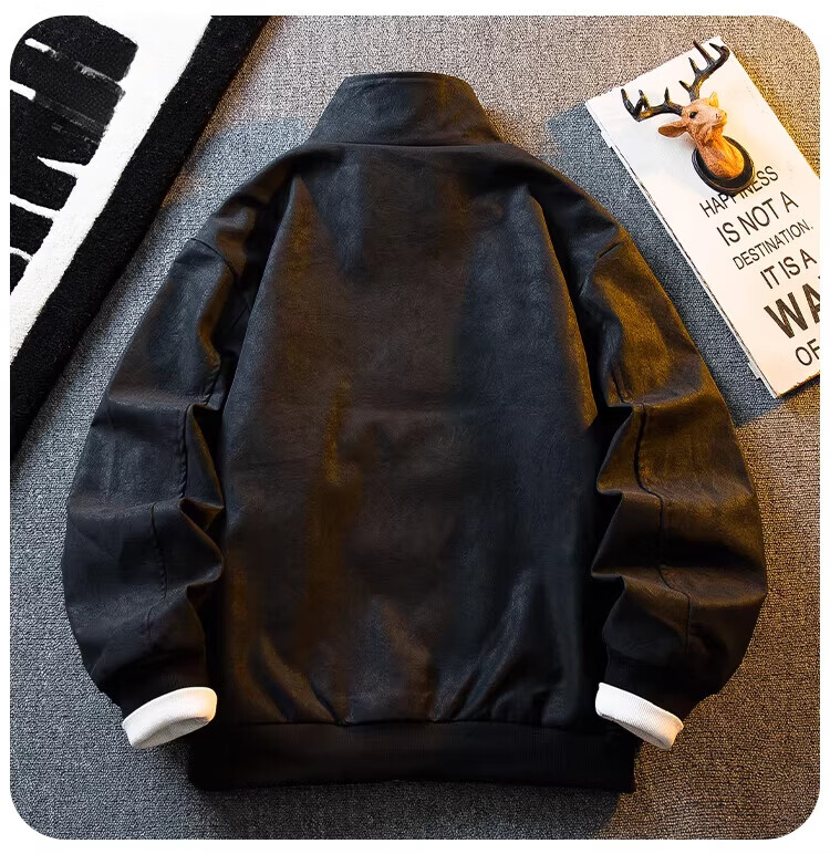 Playboy Retro Distressed Stehkragen Motorrad-Lederjacke Herren American Cleanfit Kurze Wildlederjacke Braun L (126-150 Jin Jin entspricht 0,5 kg)