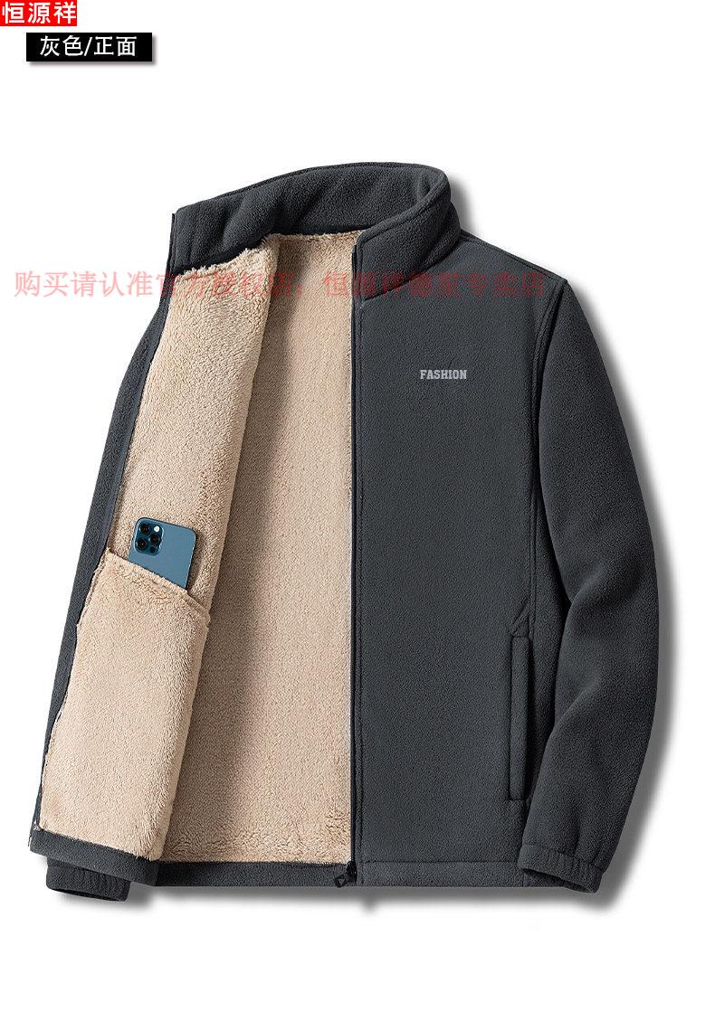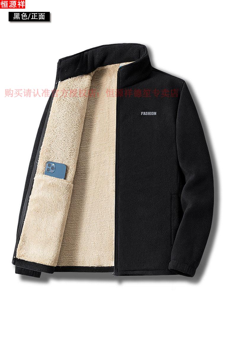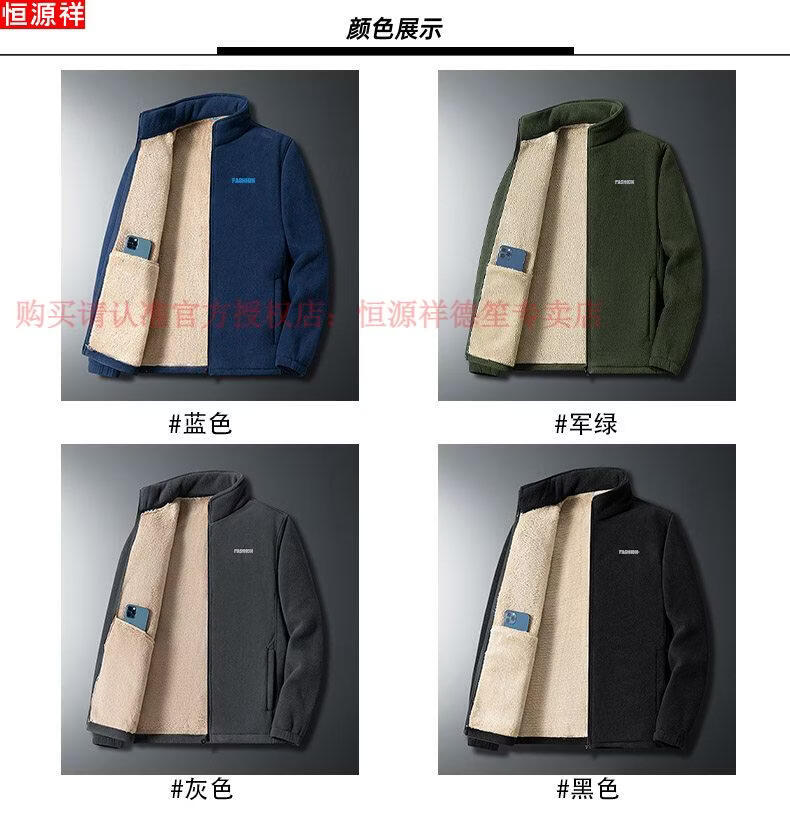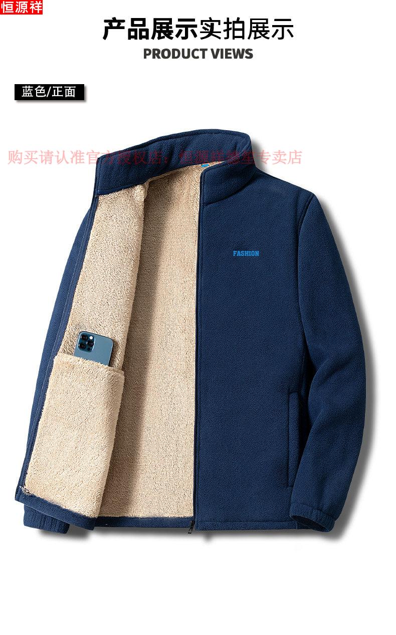 Hengyuanxiang fleece jacket men's autumn and winter casual jacket loose polar lamb fleece middle-aged and elderly dad jacket top blue 6206 style M