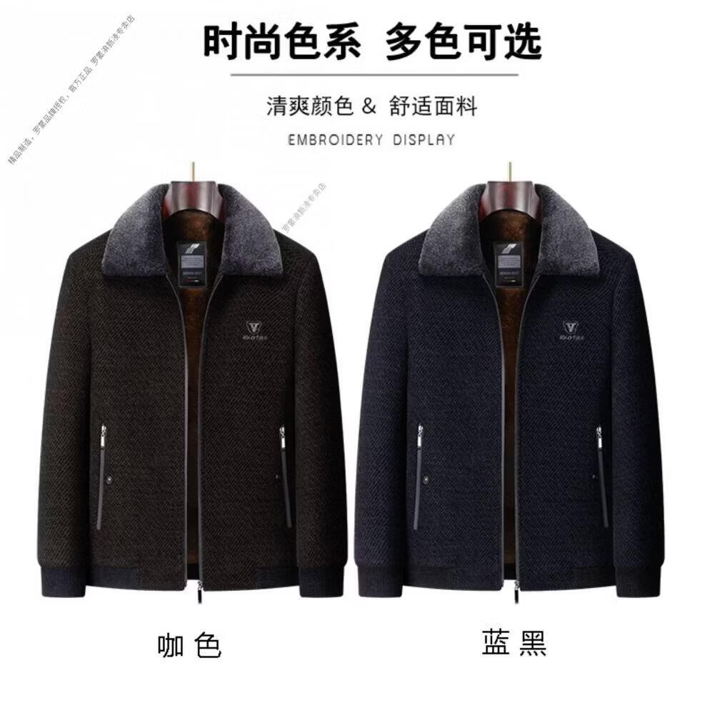 ROMON veste chenille pour hommes d'âge moyen et âgés hiver manteau en coton en laine pour hommes d'âge moyen veste d'hiver en velours de coton épaissi pour papa A006 # velours de style revers bleu noir épaissi M 170 (recommandé 90-115Jin Jin est égal à environ 0,5 kg)