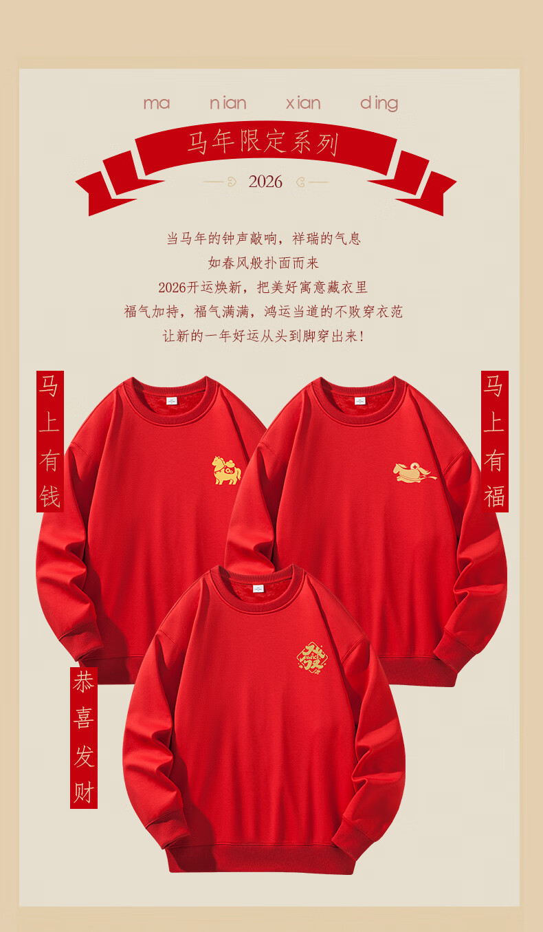 VANCL Nouvel An Chinois Rouge Imprimé Sweat Chinois Rouge-Béni Maintenant L