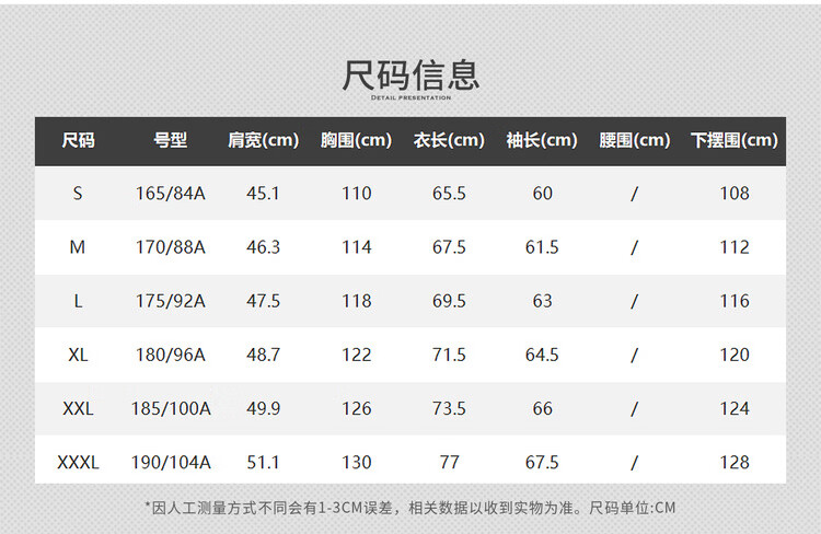 China (cm) 160-165/84-86 165-170 / 88-90 167-172 / 92-96 168-173 / 98-102 170-176 / 106-110