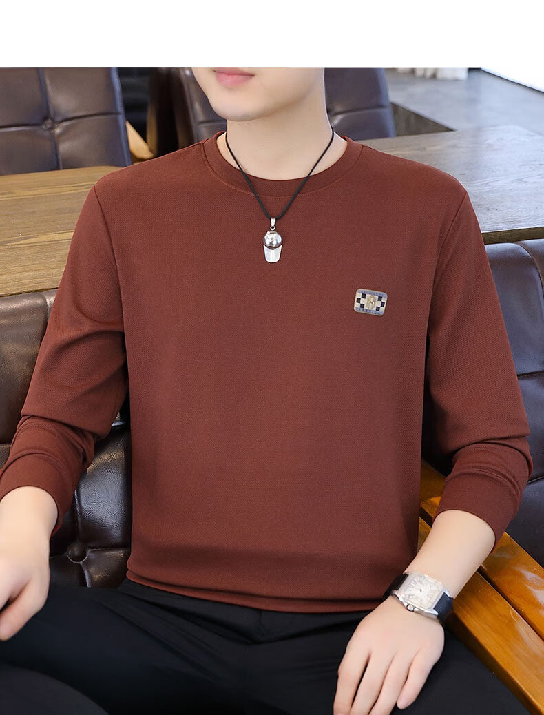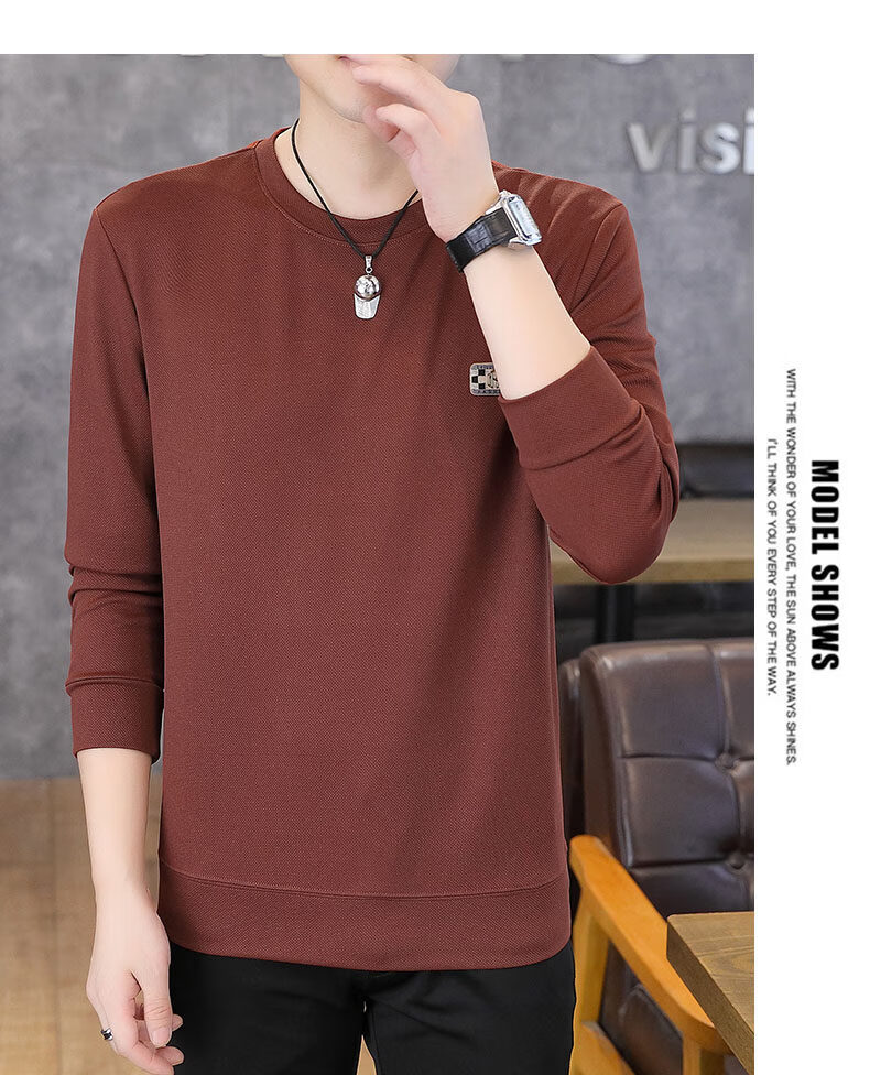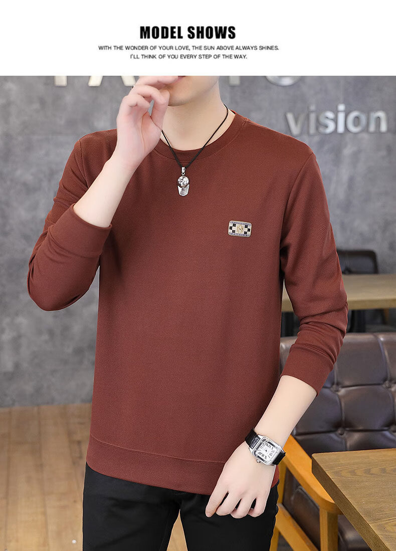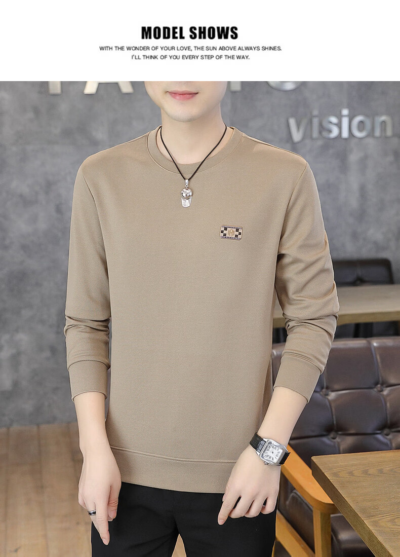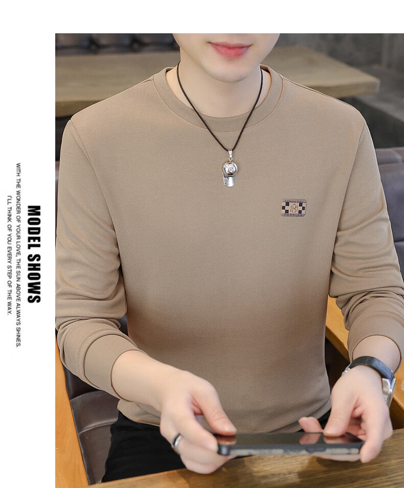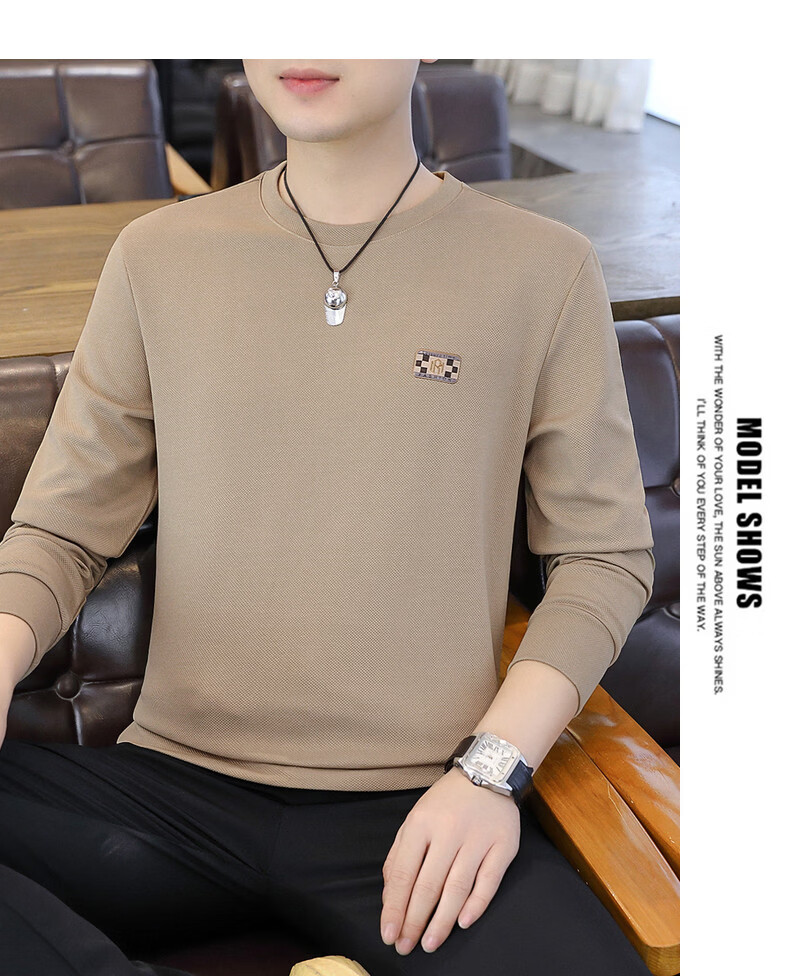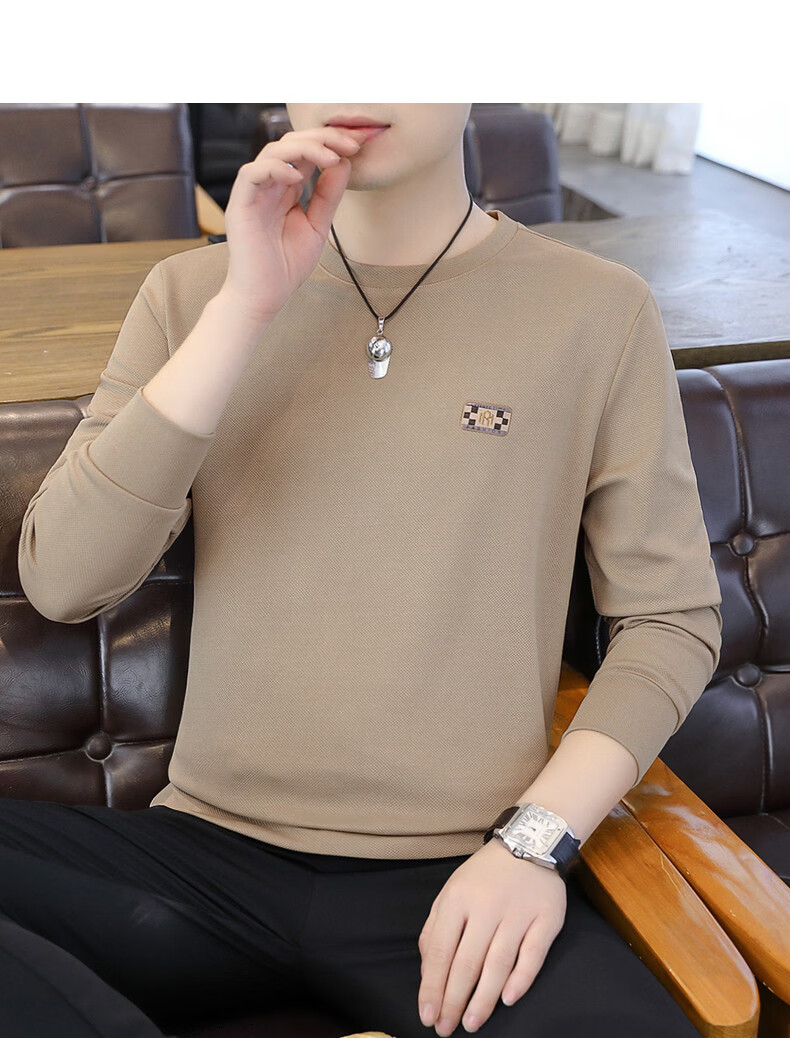 Hengyuanxiang Camiseta gruesa para hombre Jersey informal Primavera y otoño Nueva camiseta de manga larga con cuello redondo Camisa de fondo Moda Versátil Top de primavera y otoño Caqui Delgada L Recomendado 115-130 Jin Jin equivale a 0,5 kg