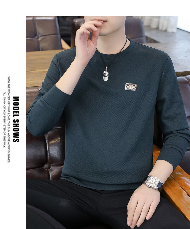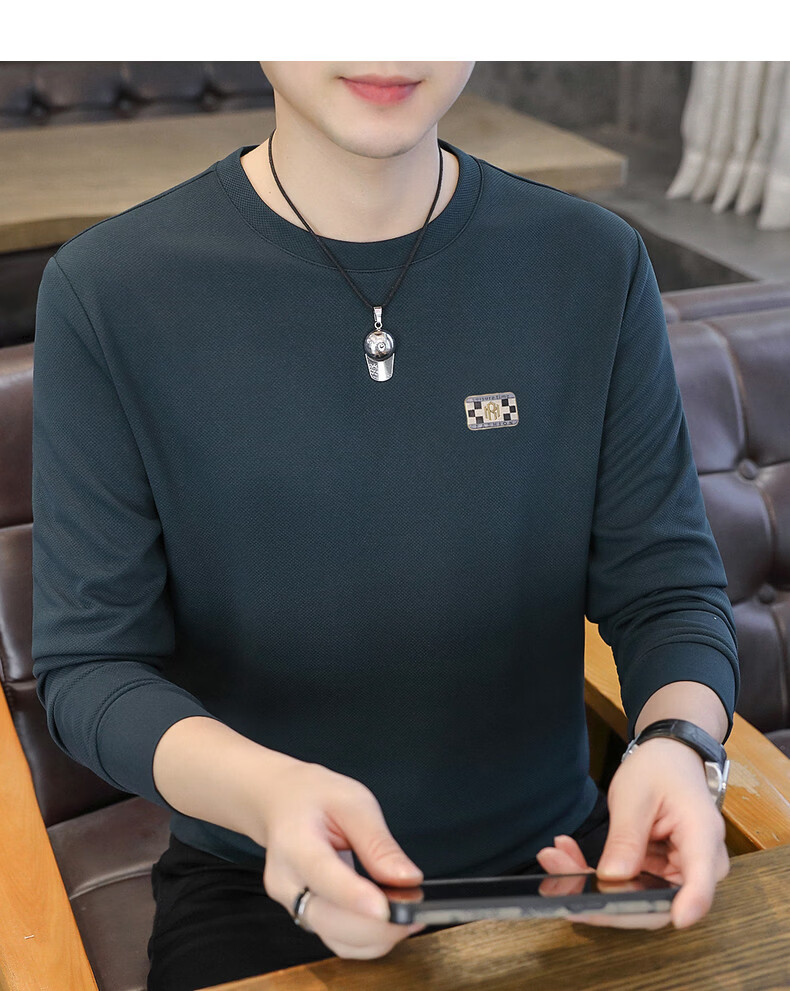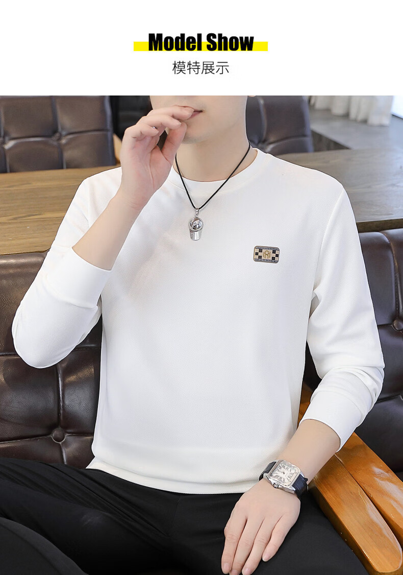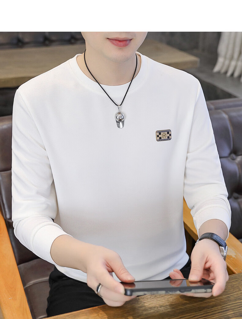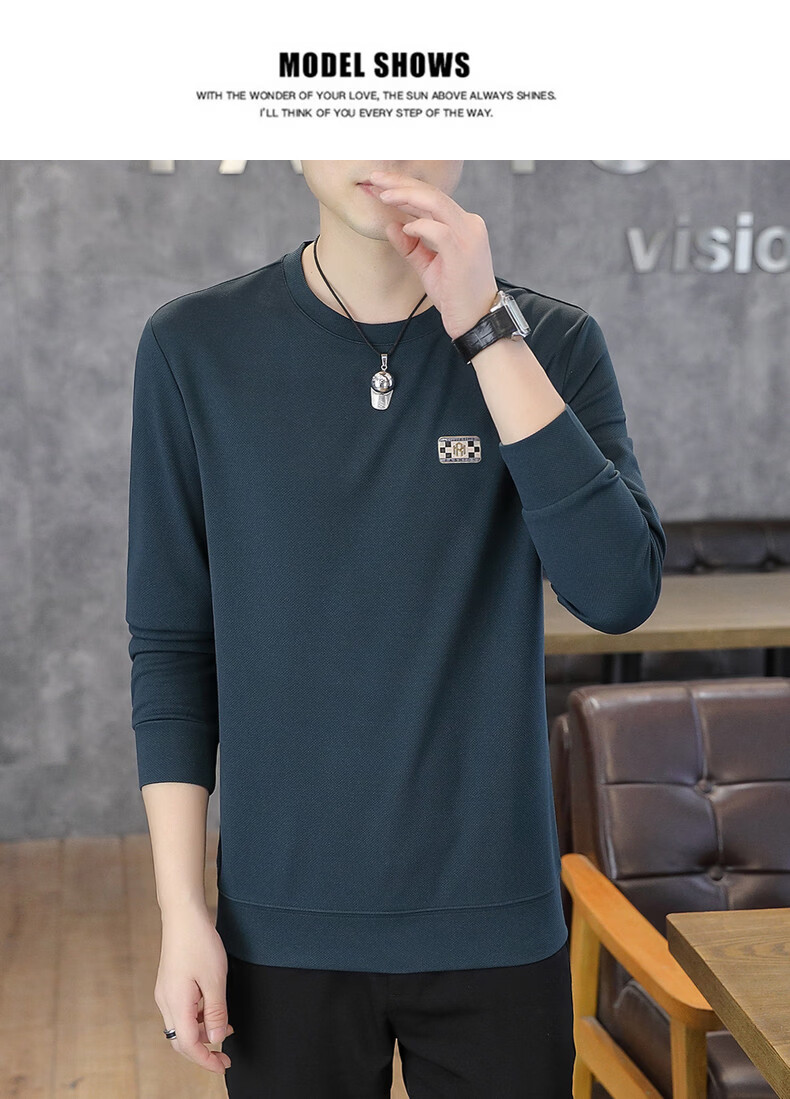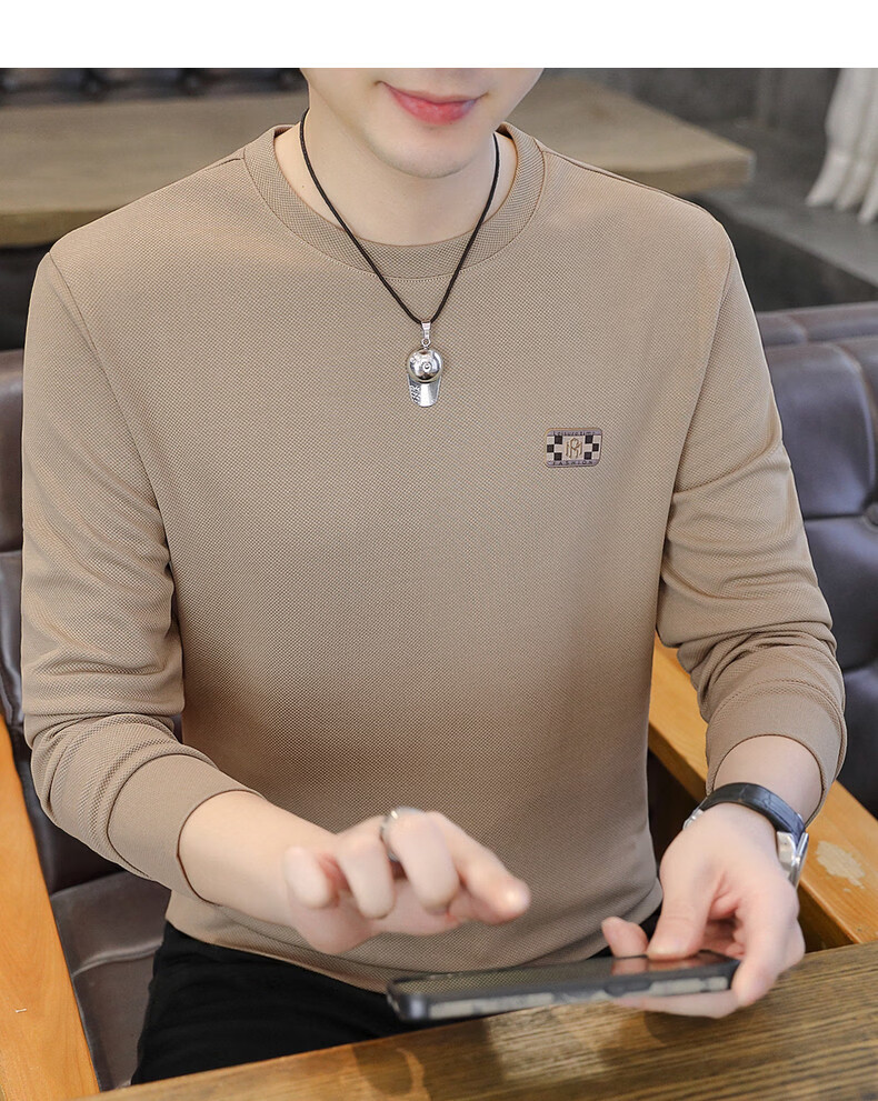 Hengyuanxiang Camiseta gruesa para hombre Jersey informal Primavera y otoño Nueva camiseta de manga larga con cuello redondo Camisa de fondo Moda Versátil Top de primavera y otoño Caqui Delgada L Recomendado 115-130 Jin Jin equivale a 0,5 kg