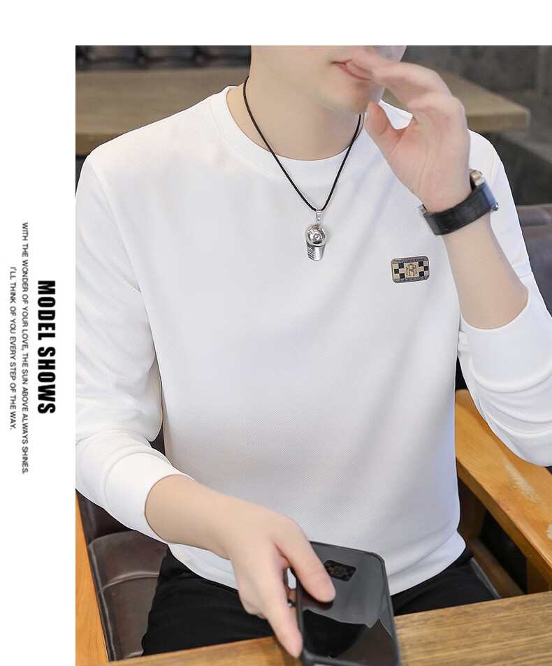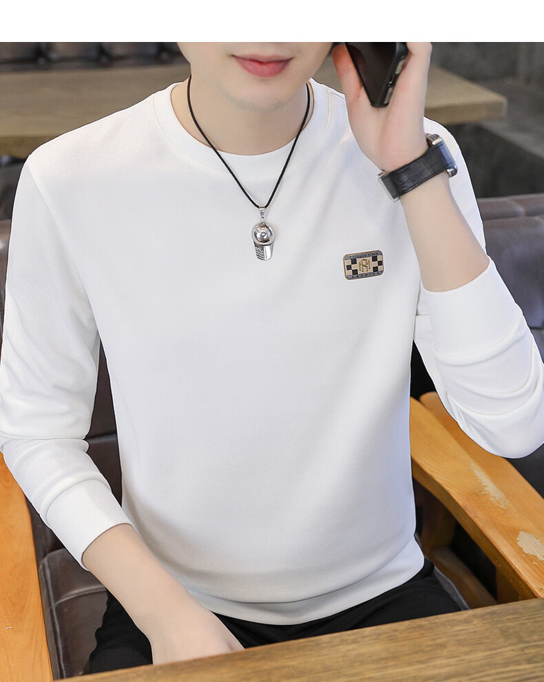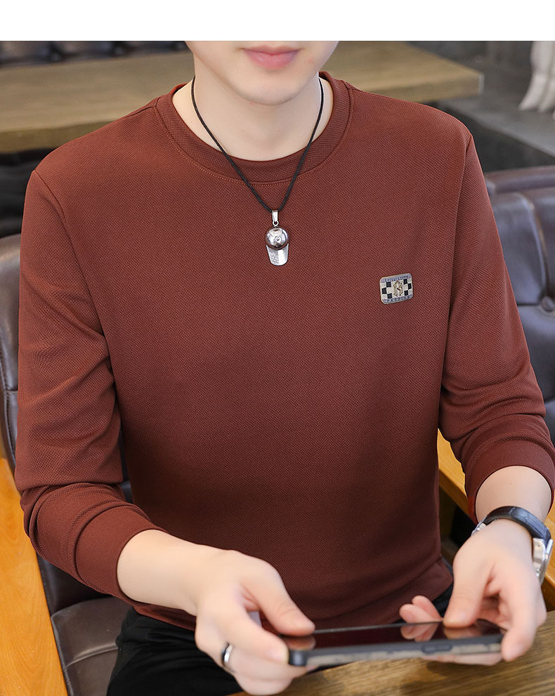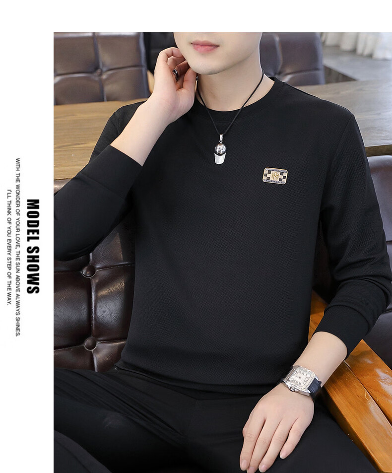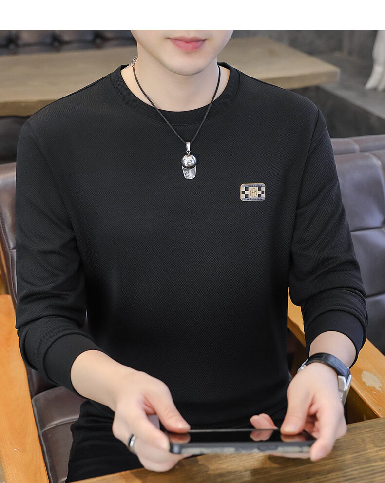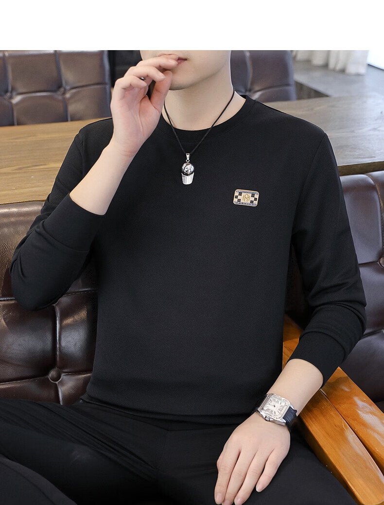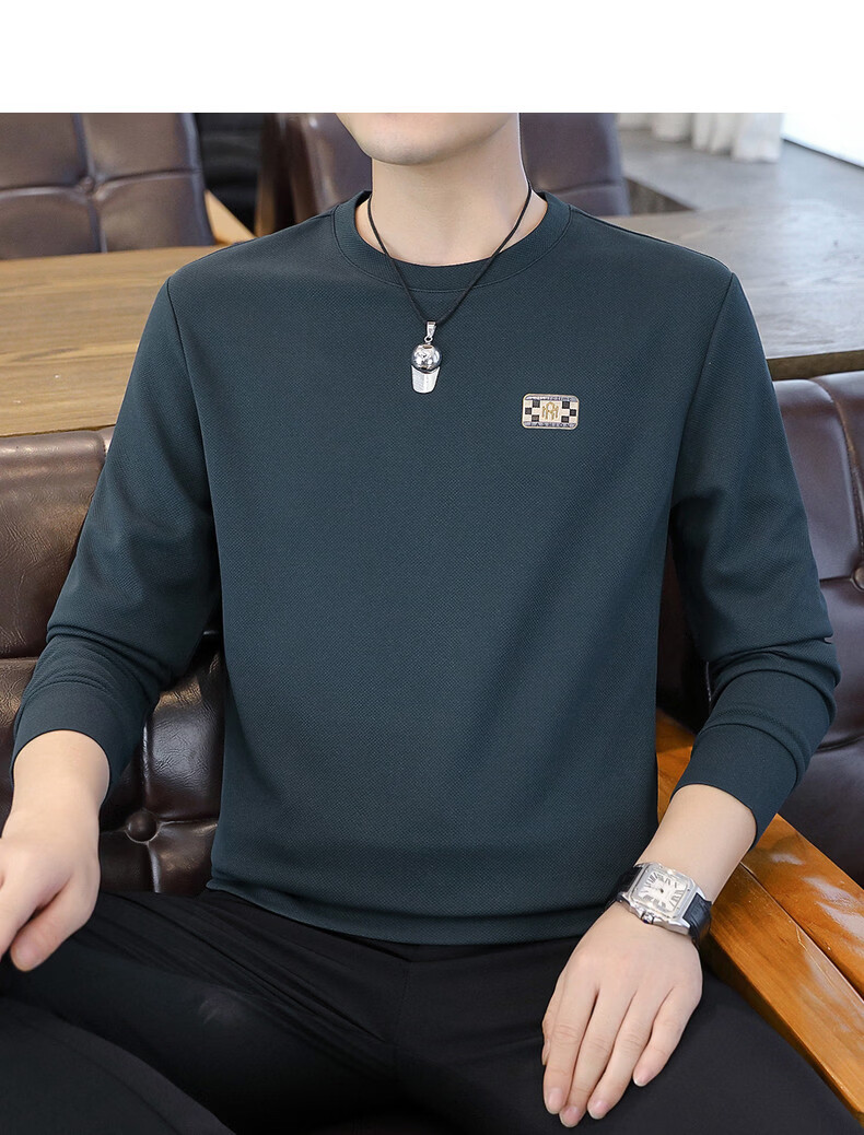 Hengyuanxiang Camiseta gruesa para hombre Jersey informal Primavera y otoño Nueva camiseta de manga larga con cuello redondo Camisa de fondo Moda Versátil Top de primavera y otoño Caqui Delgada L Recomendado 115-130 Jin Jin equivale a 0,5 kg