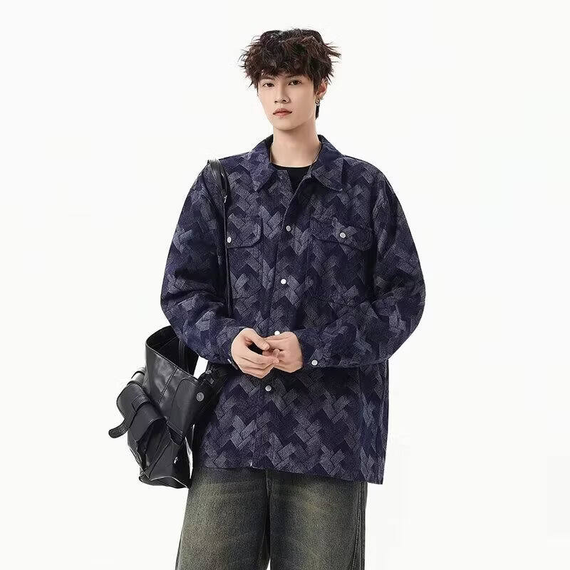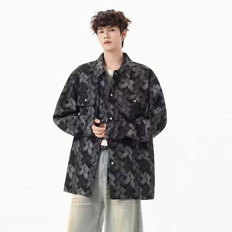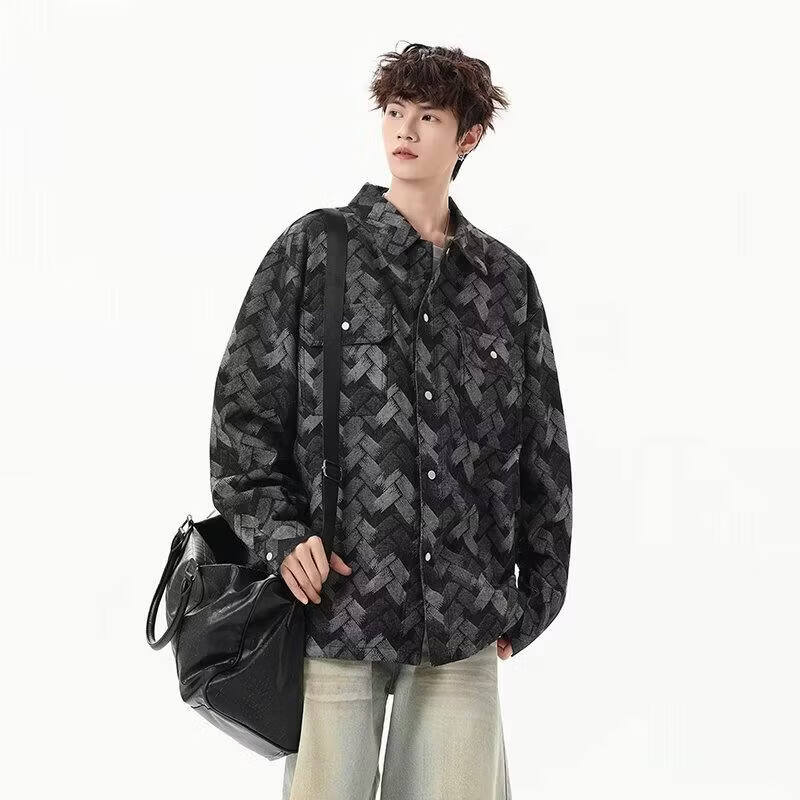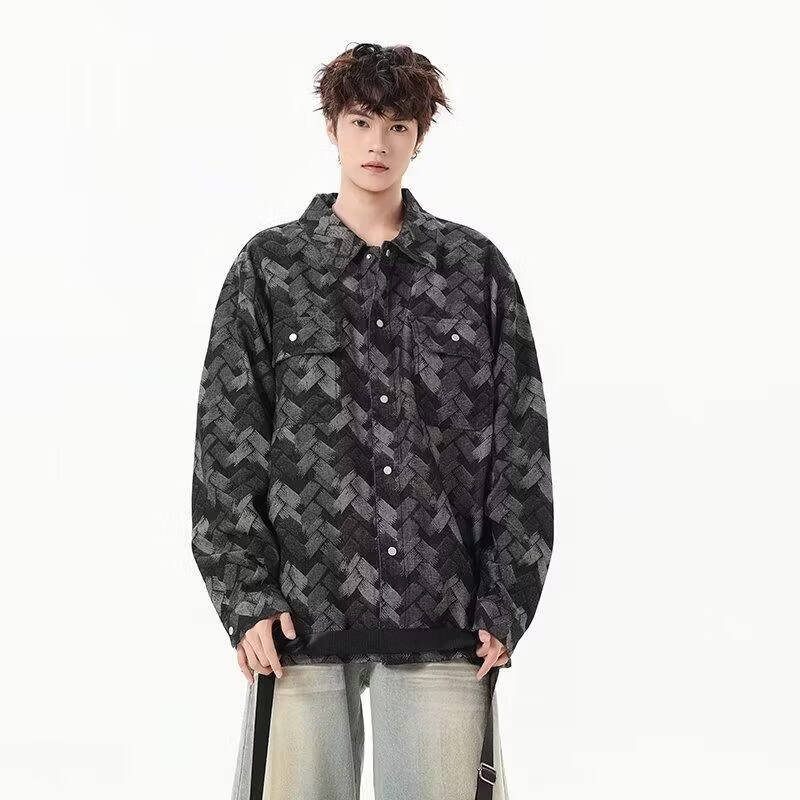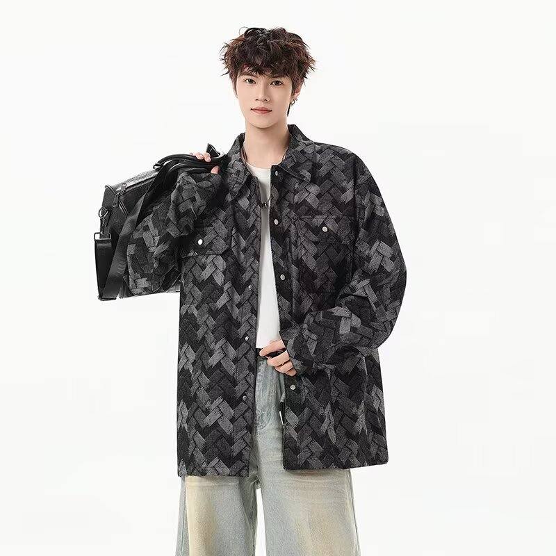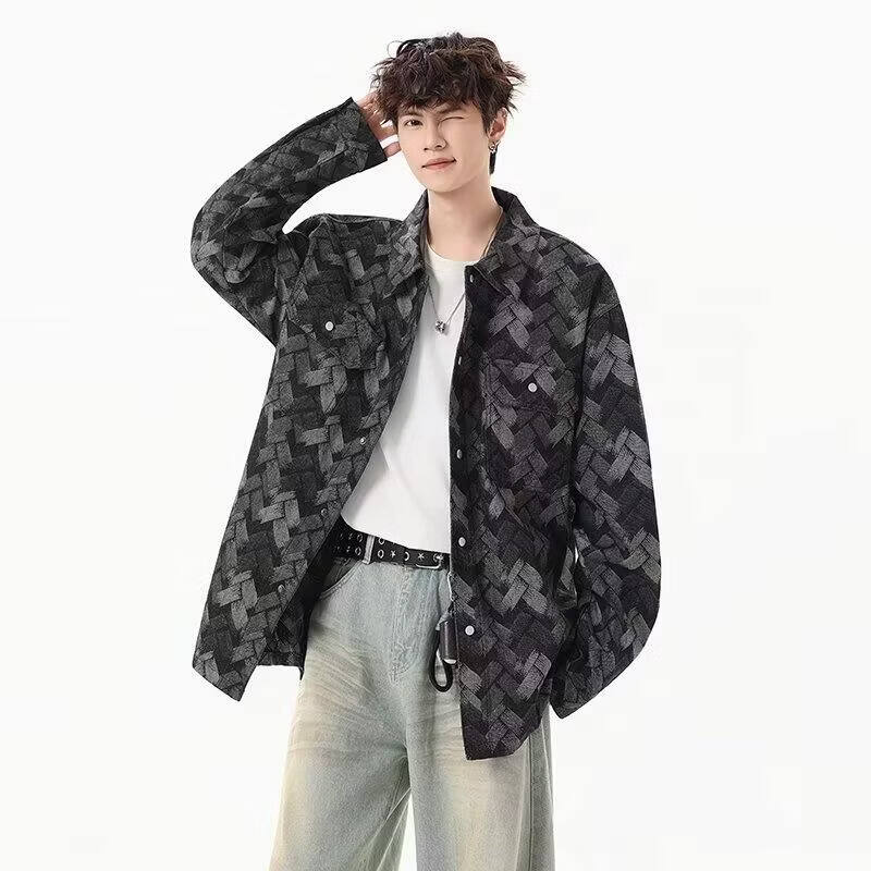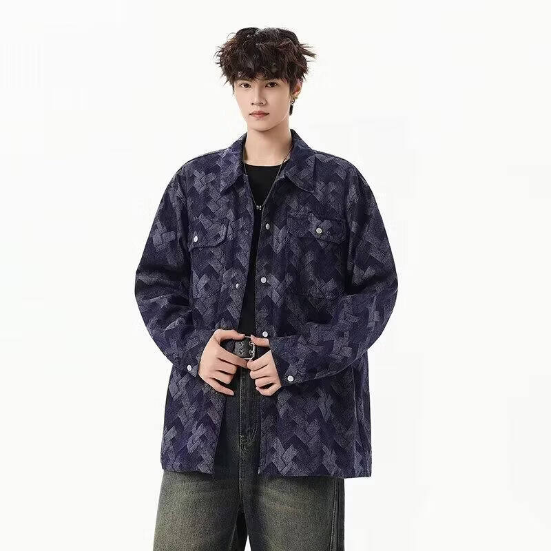 啄木鸟(TUCANO)做旧美式水洗提花满印牛仔外套男生痞帅宽松复古工装夹克春秋新款 黑色 M