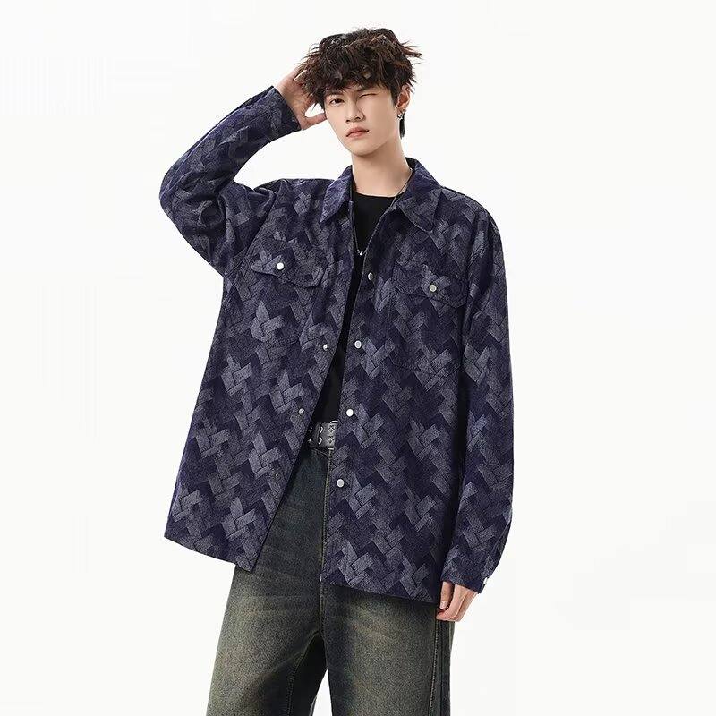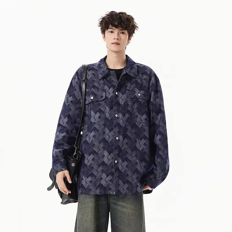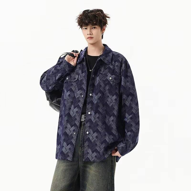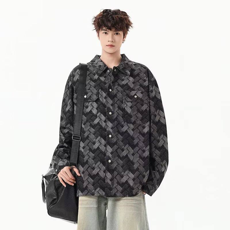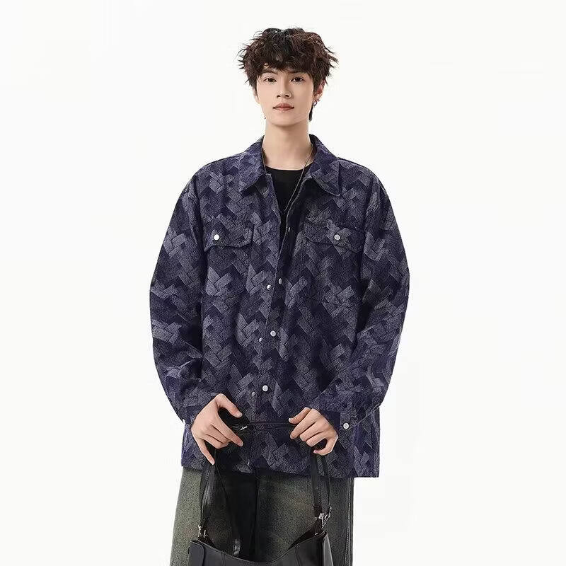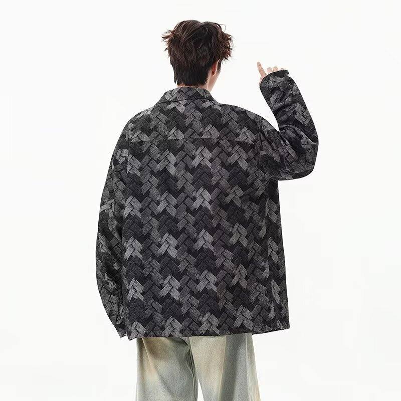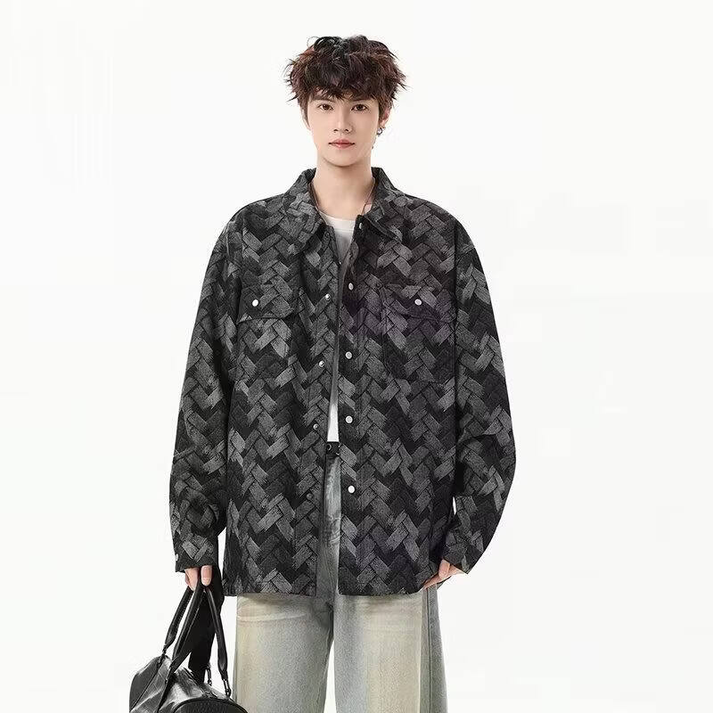 啄木鸟(TUCANO)做旧美式水洗提花满印牛仔外套男生痞帅宽松复古工装夹克春秋新款 黑色 M