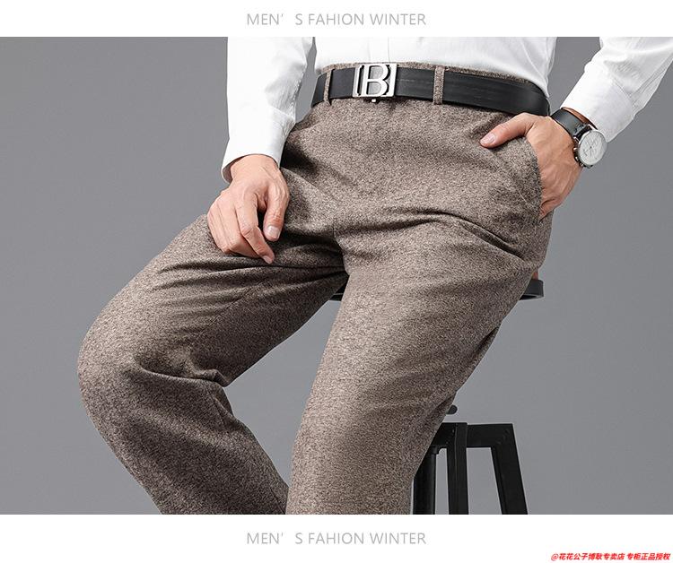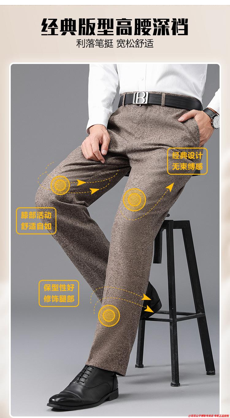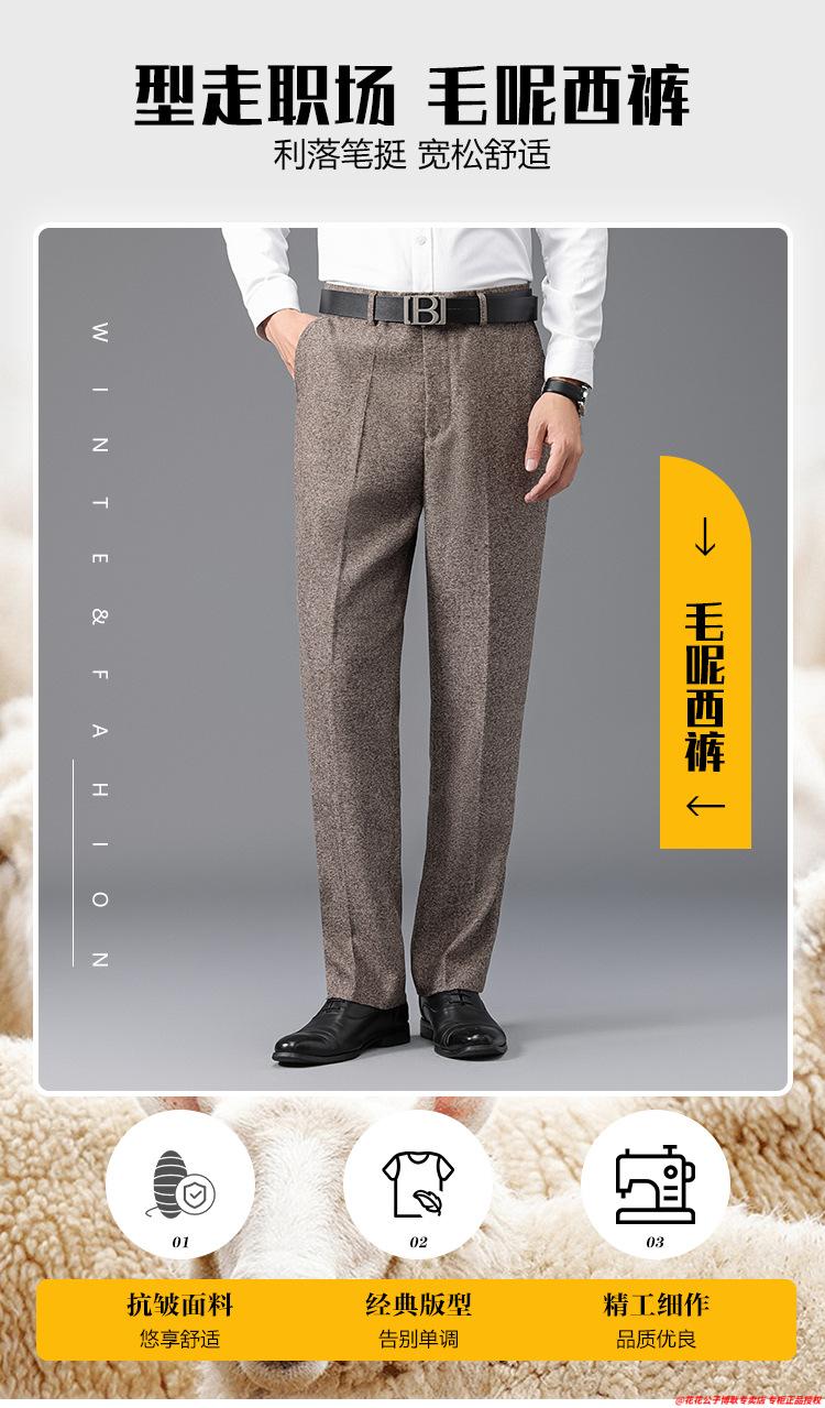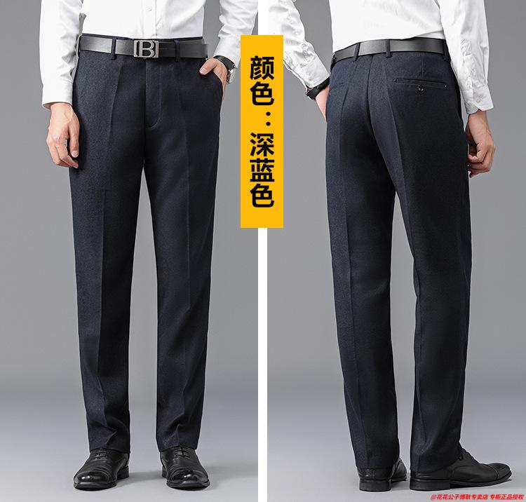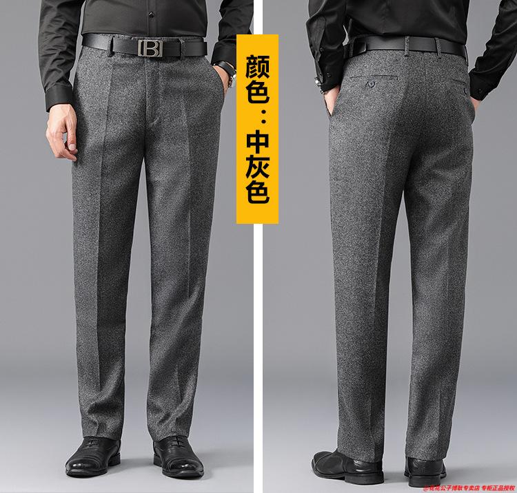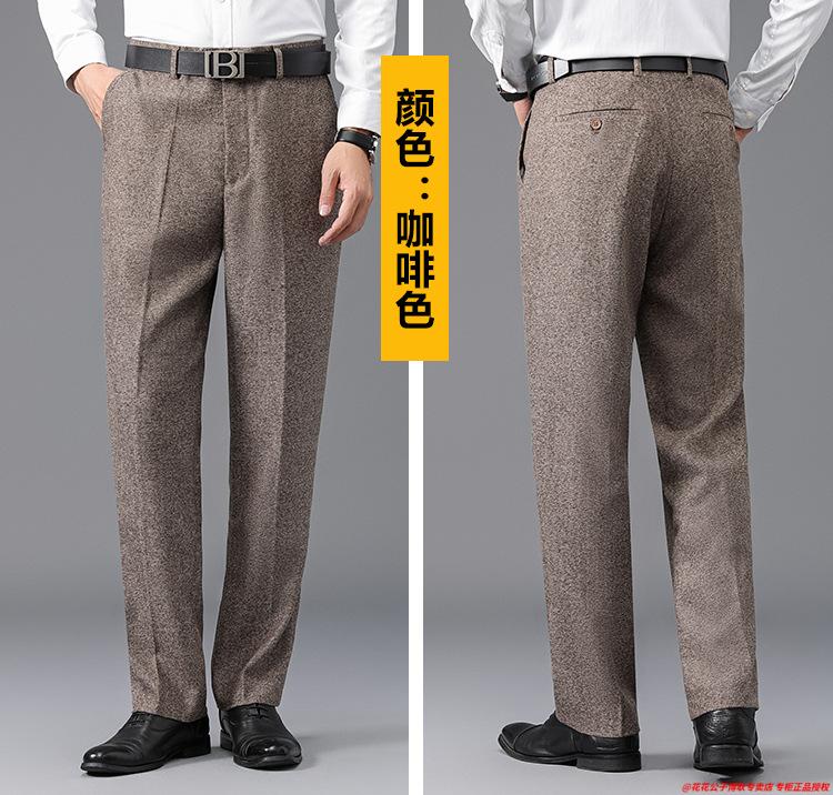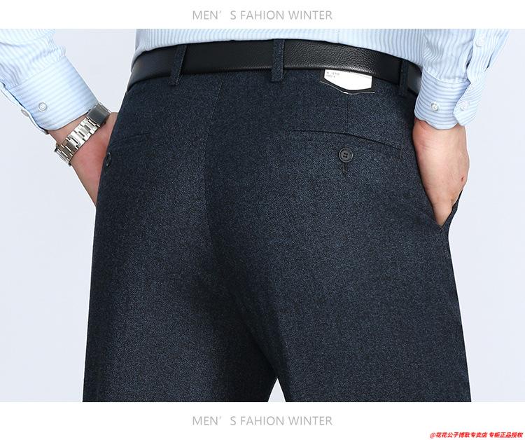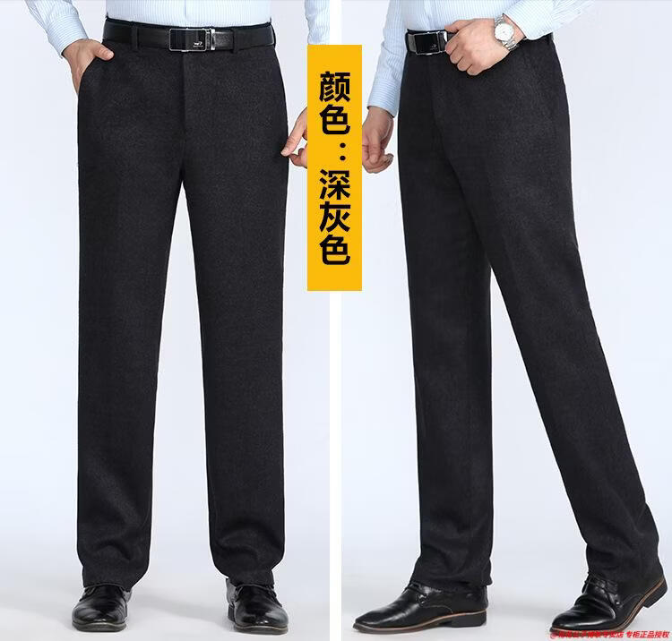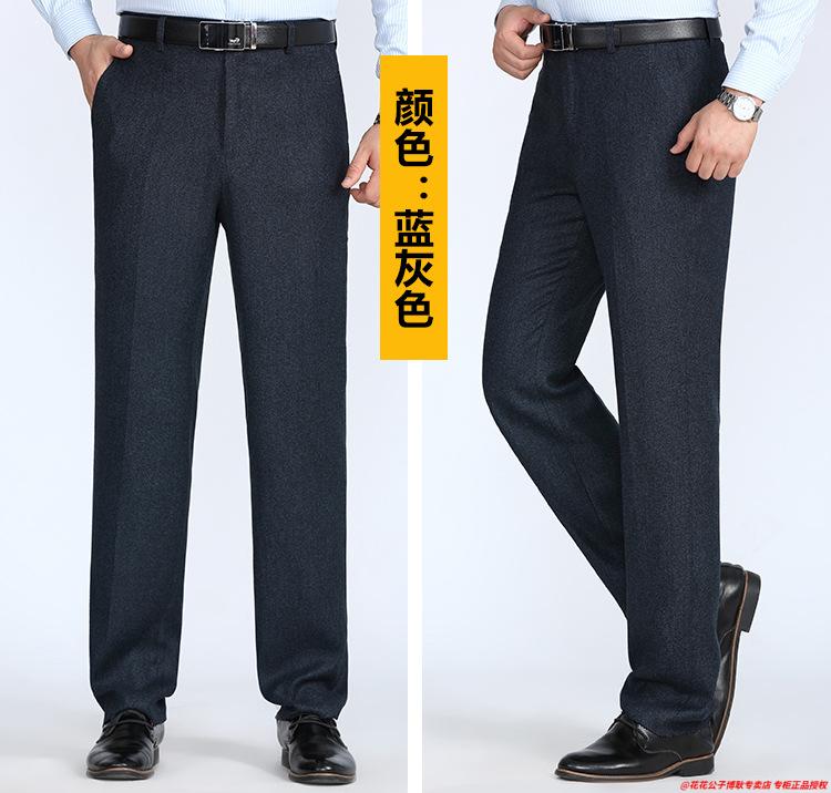 花花公子加厚羊毛绒西裤男中老年宽松秋冬款羊毛呢商务正装西服裤爸爸裤子 688-12深灰色毛呢西裤 29 (2尺2腰围)