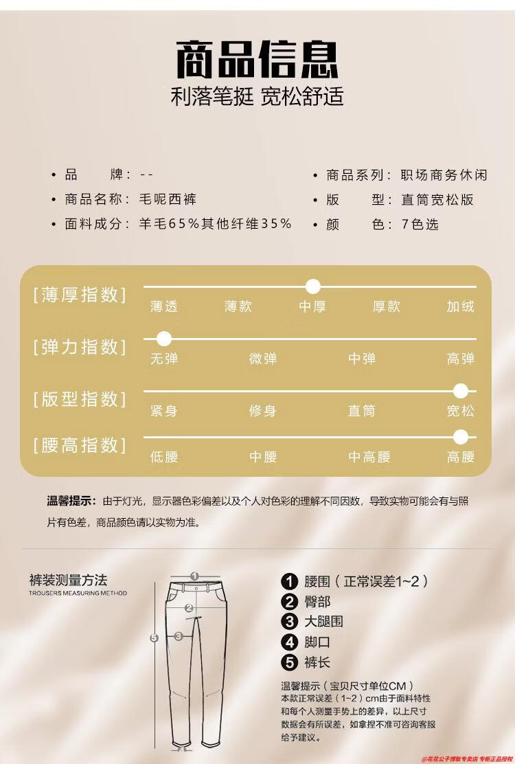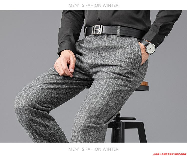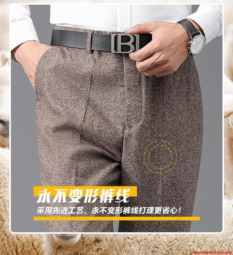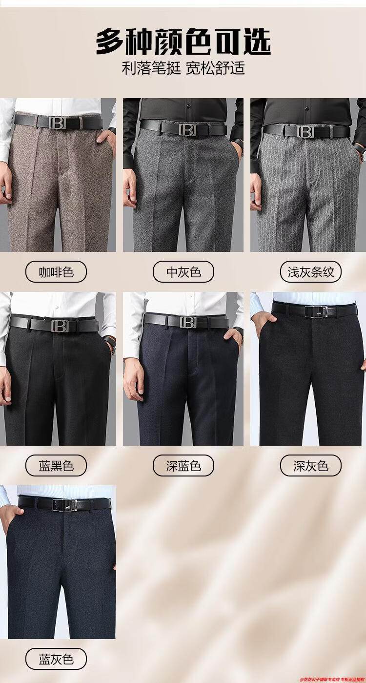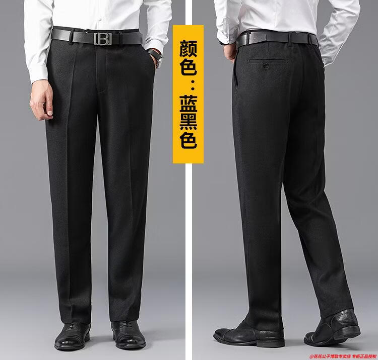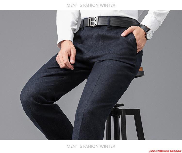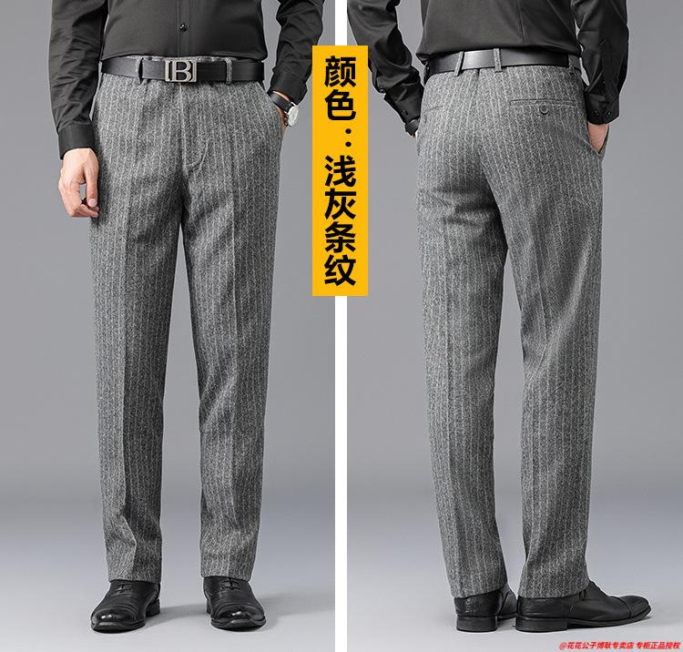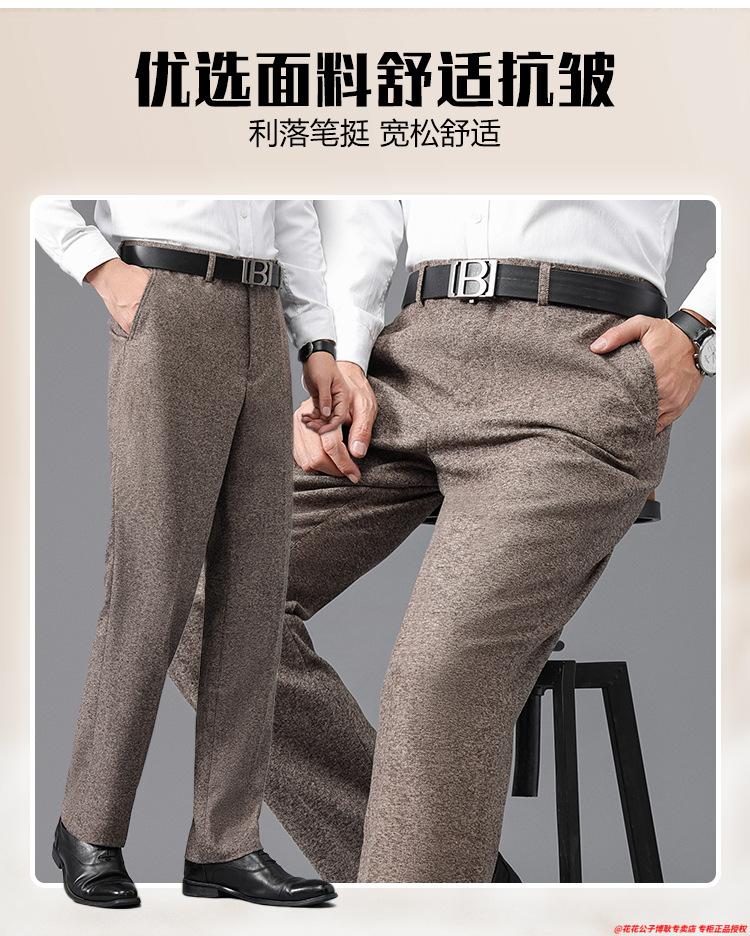 花花公子加厚羊毛绒西裤男中老年宽松秋冬款羊毛呢商务正装西服裤爸爸裤子 688-12深灰色毛呢西裤 29 (2尺2腰围)