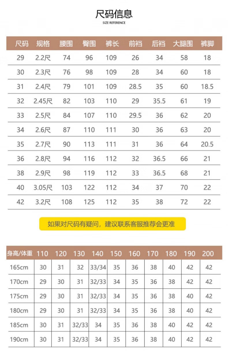Outseam (cm) 99 cm 101.5 cm 104 cm 106.5 cm 109 cm